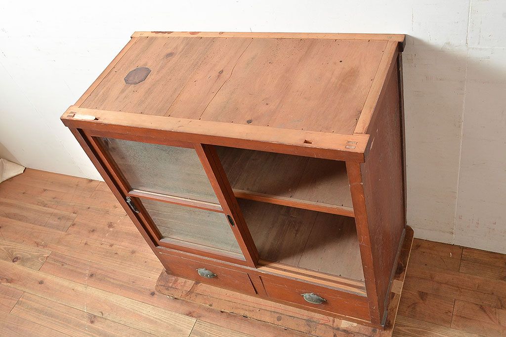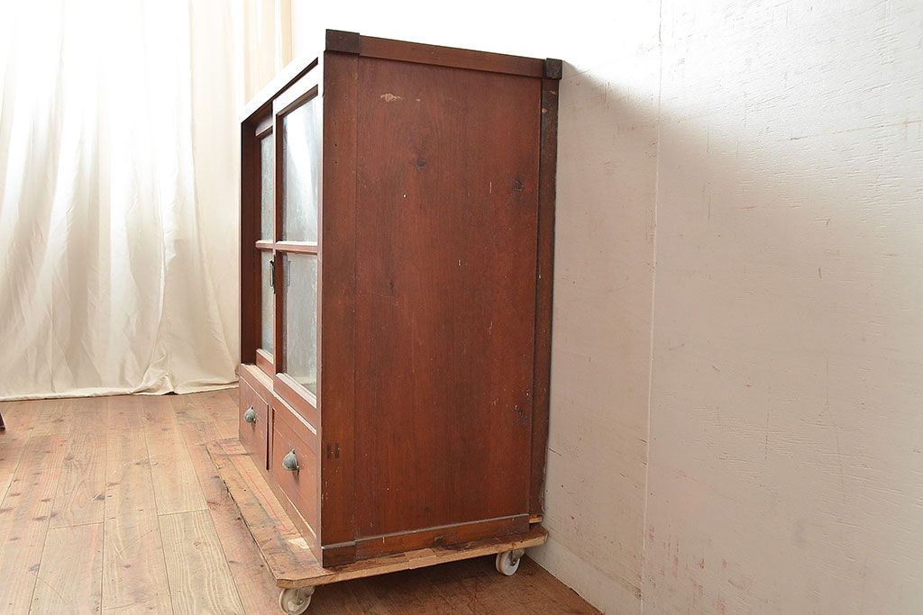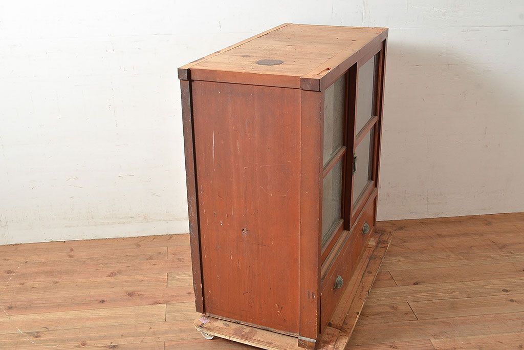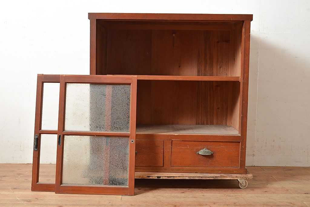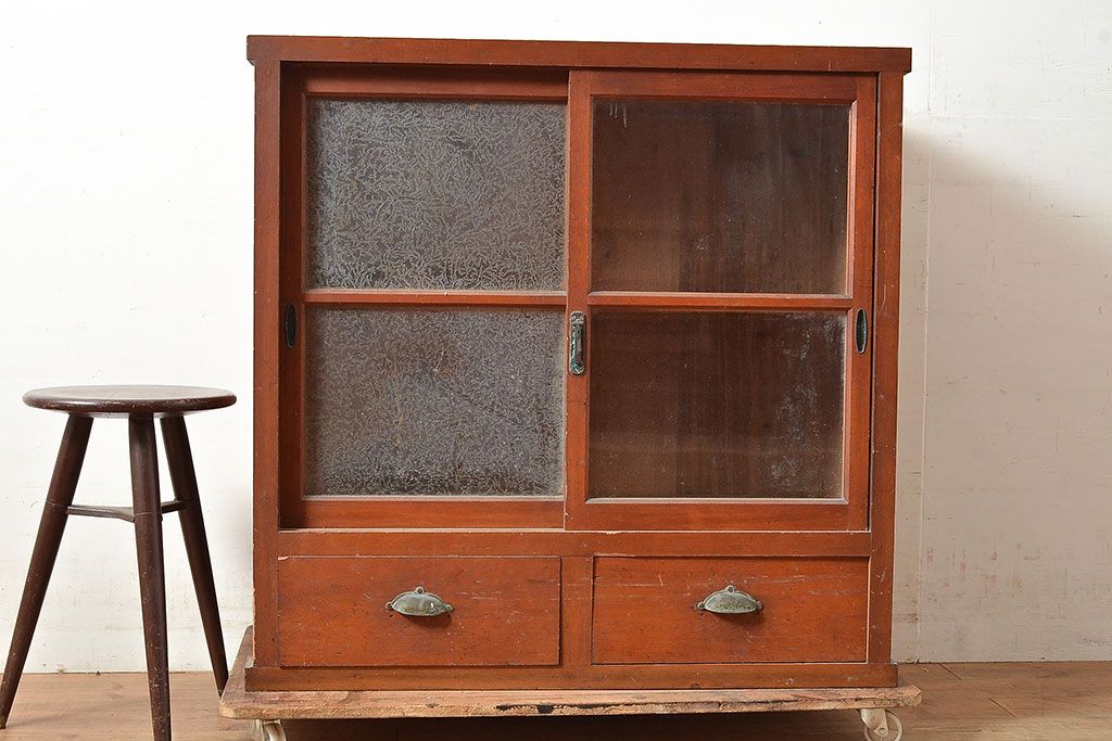 和製アンティーク 前面ヒノキ材 ノスタルジックな空間を高める戸棚(収納棚、キャビネット、食器棚、サイドボード)(R-047594)