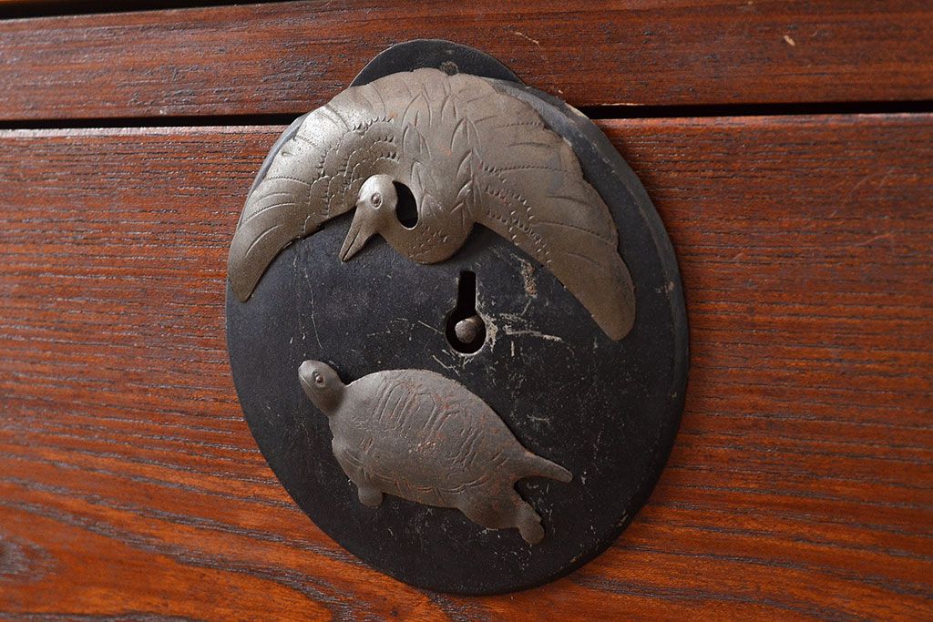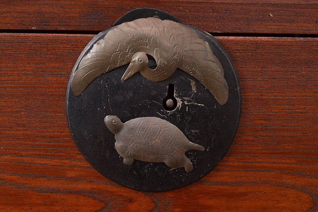 縁起の良い鶴亀金具が味わい深い