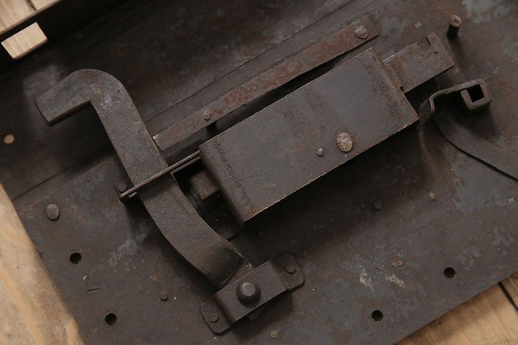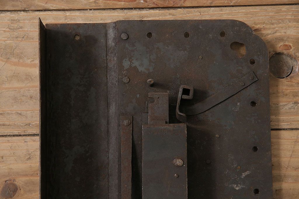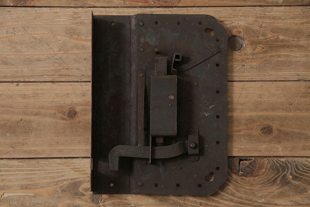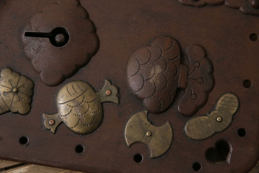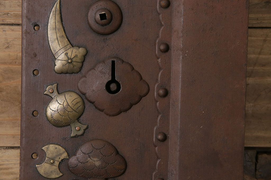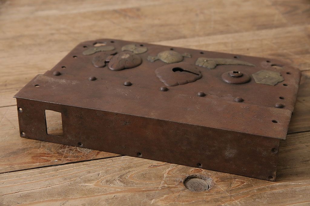 アンティーク雑貨 鉄・真鍮製 縁起物の意匠がぱっと目を引く蔵戸の錠前金具(ディスプレイ雑貨、蔵戸パーツ)(R-047491)