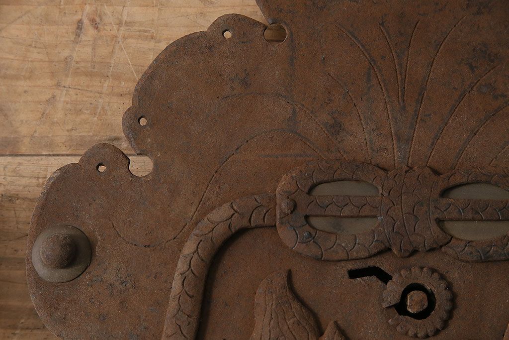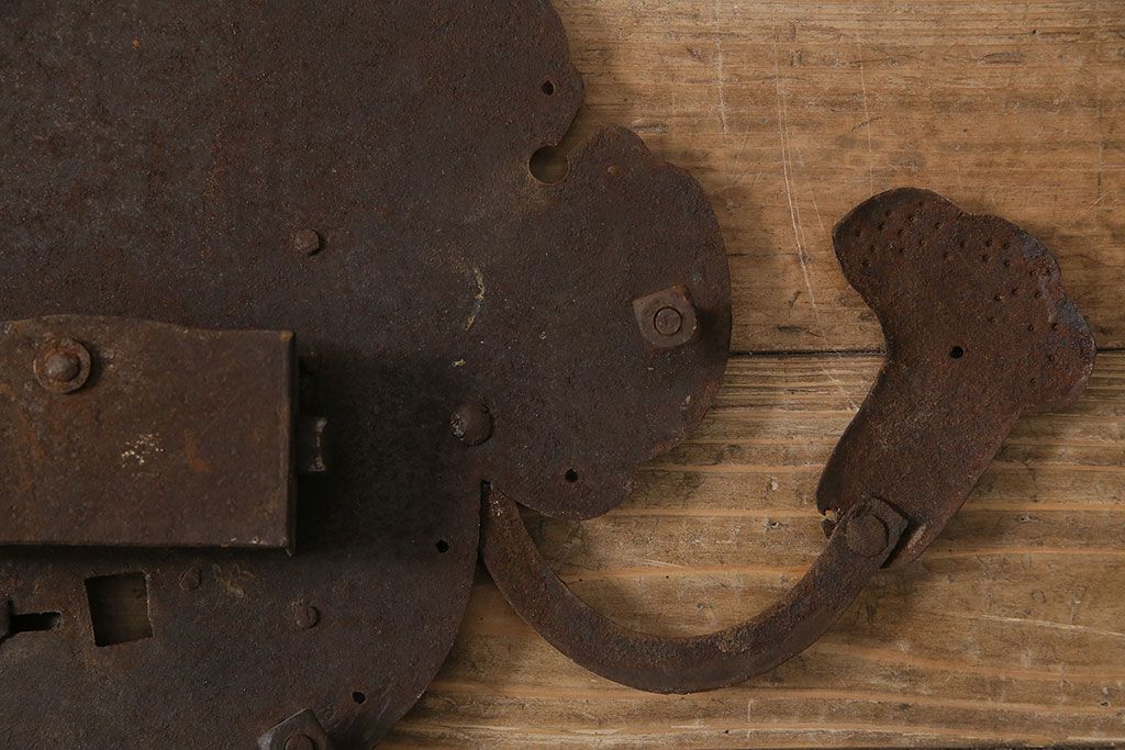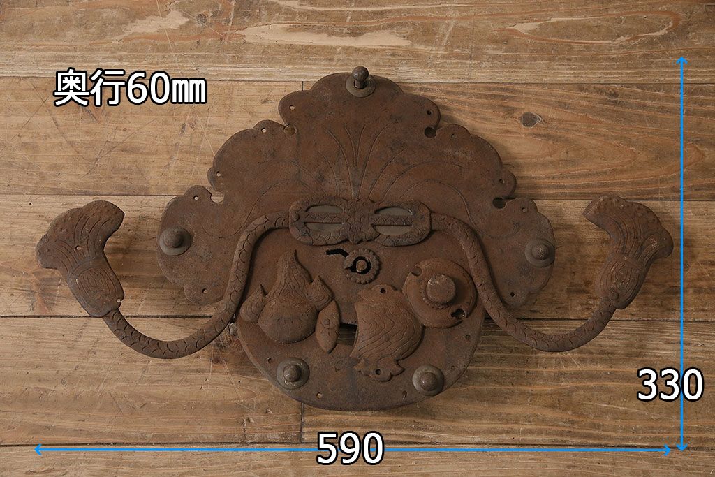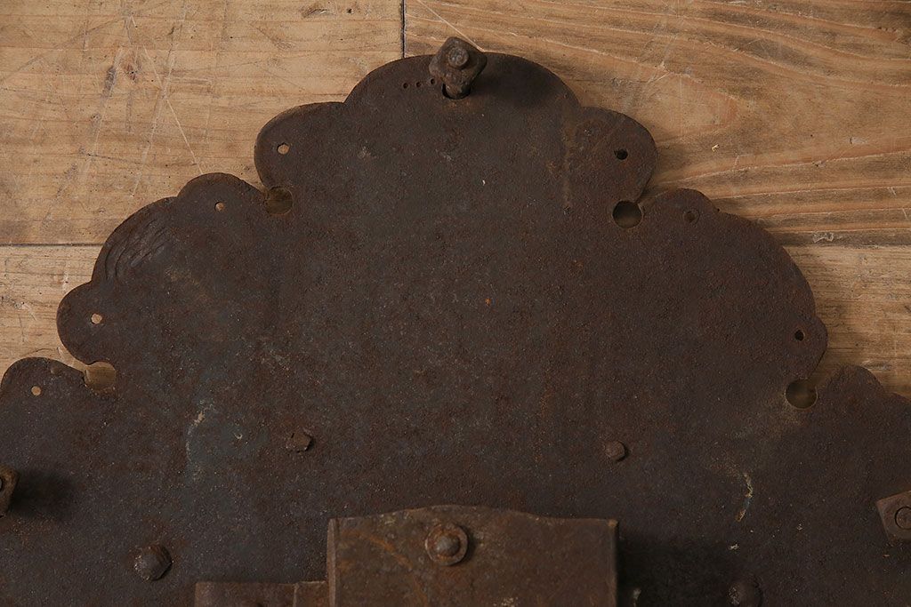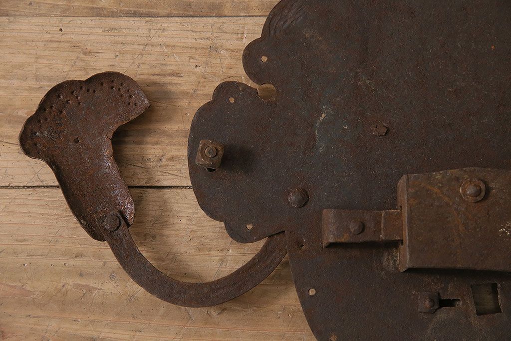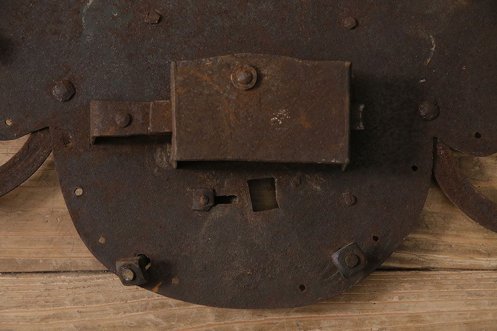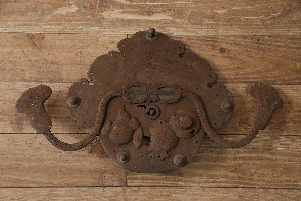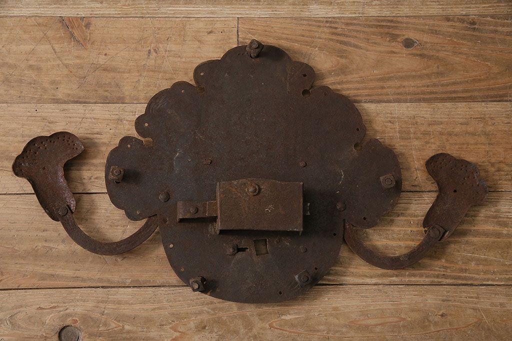 アンティーク雑貨 巾着モチーフの金具が目を引く蔵戸の錠前金具(ディスプレイ雑貨、蔵戸パーツ)(R-047493)