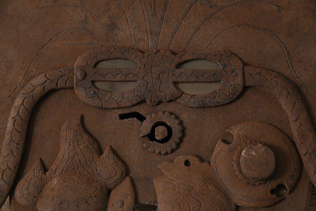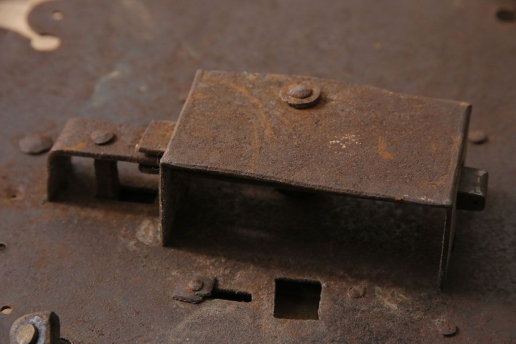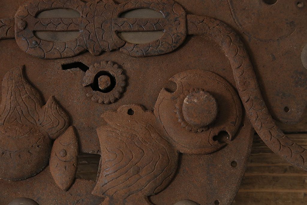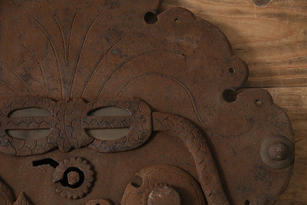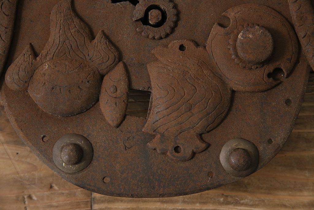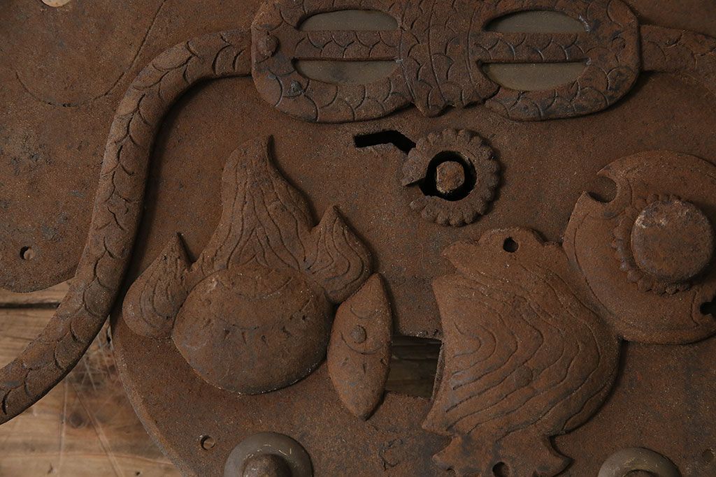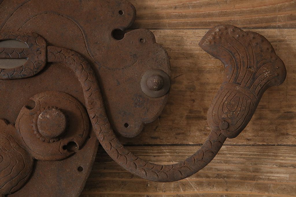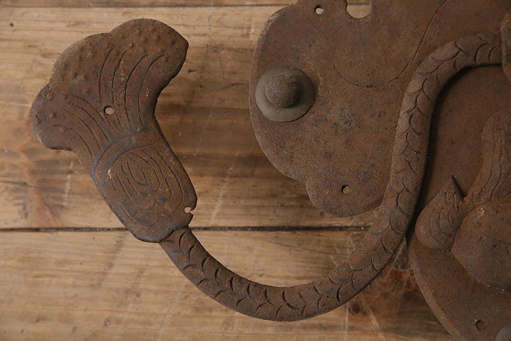 アンティーク雑貨 巾着モチーフの金具が目を引く蔵戸の錠前金具(ディスプレイ雑貨、蔵戸パーツ)(R-047493)