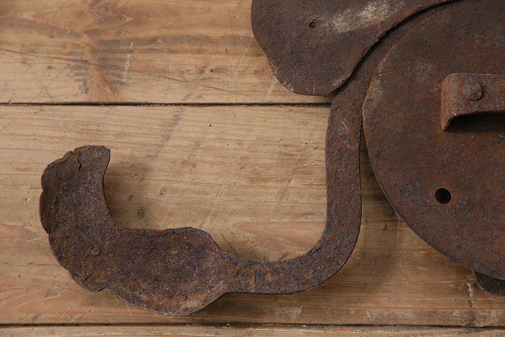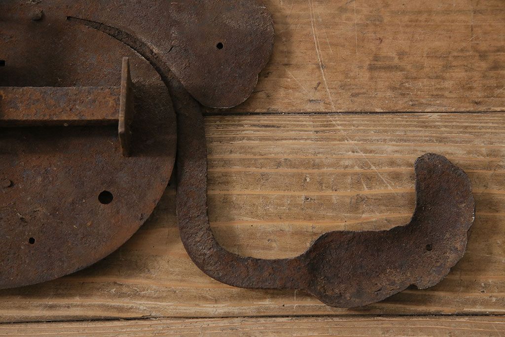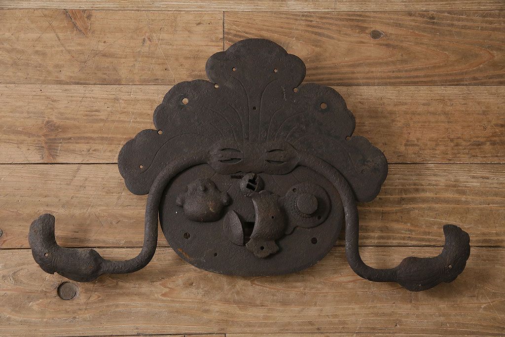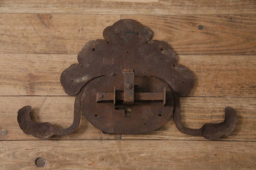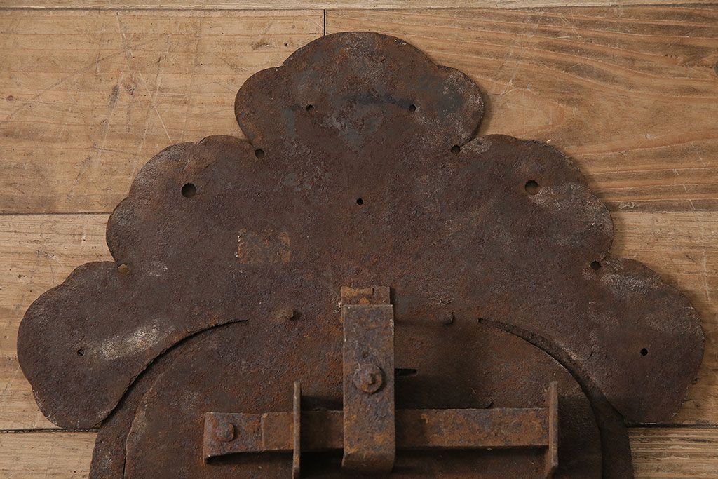アンティーク雑貨 巾着モチーフが趣溢れる蔵戸の錠前金具(ディスプレイ雑貨、蔵戸パーツ)(R-047494)