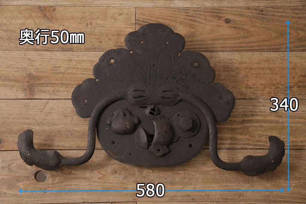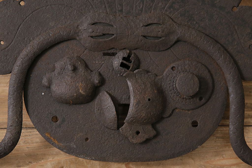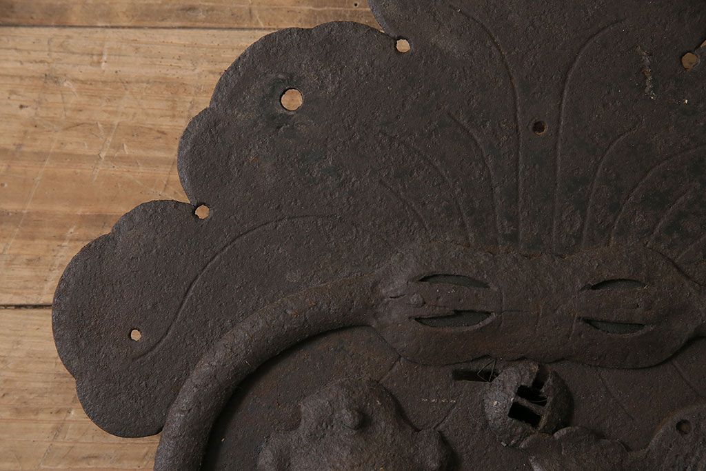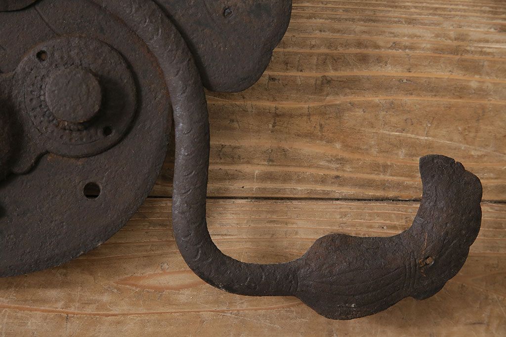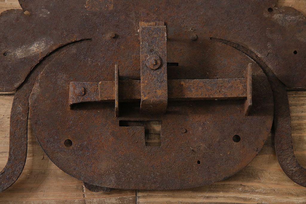 アンティーク雑貨 巾着モチーフが趣溢れる蔵戸の錠前金具(ディスプレイ雑貨、蔵戸パーツ)(R-047494)