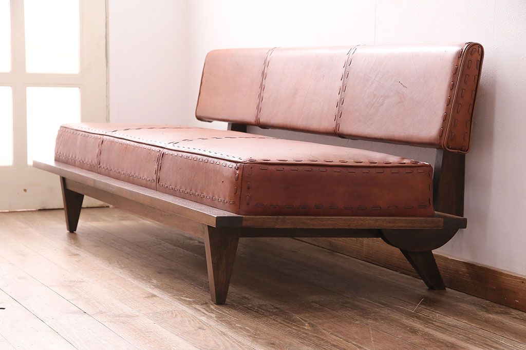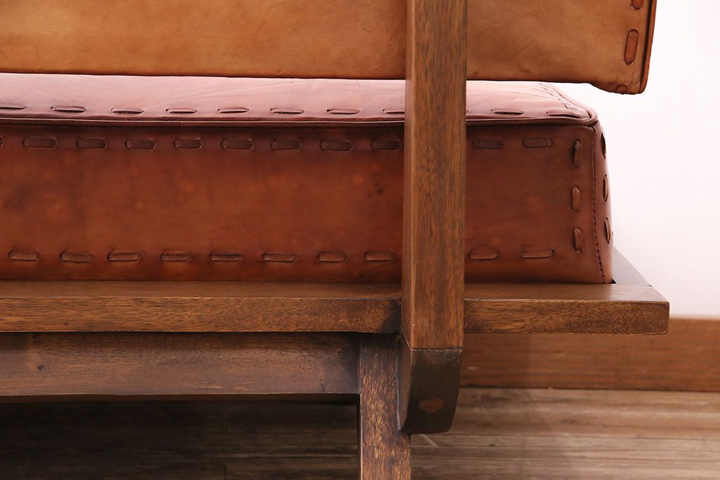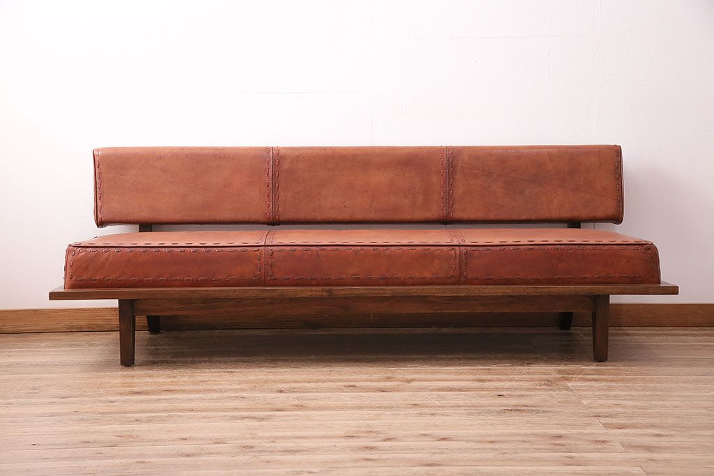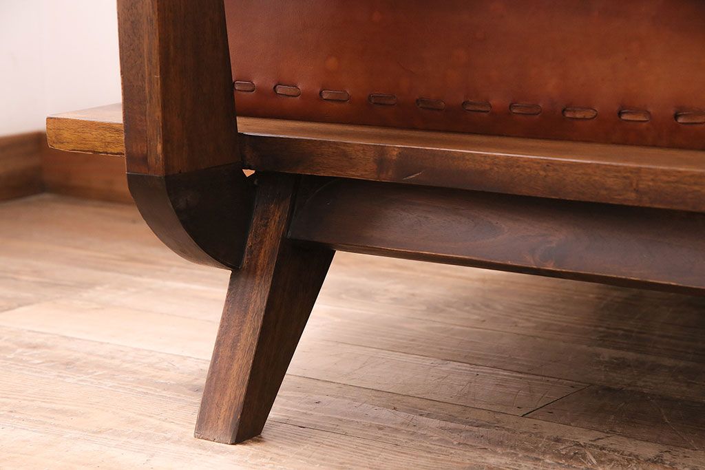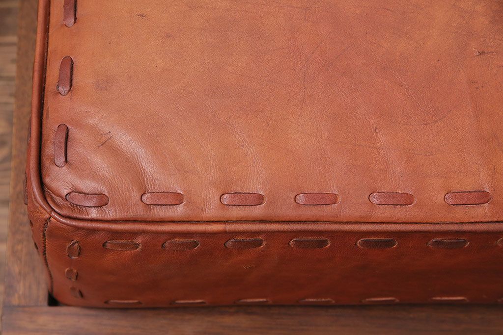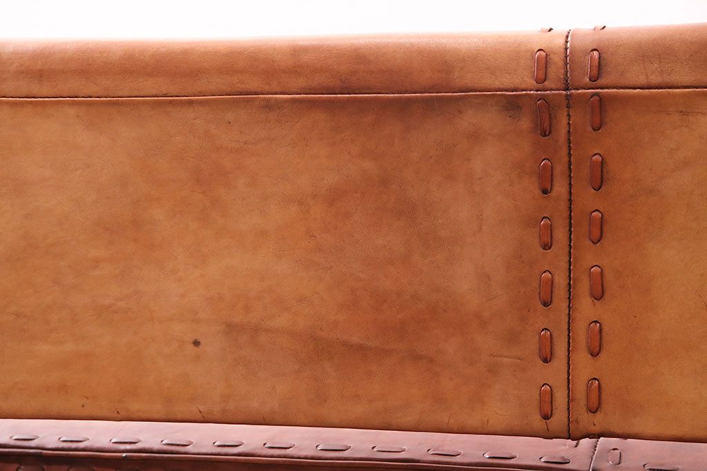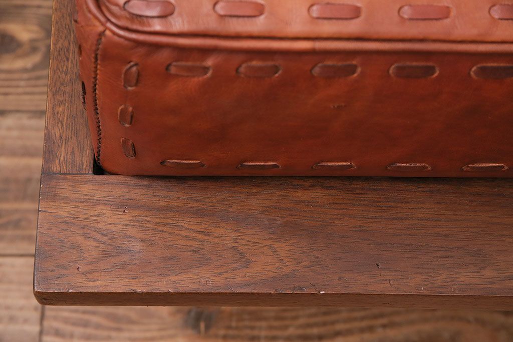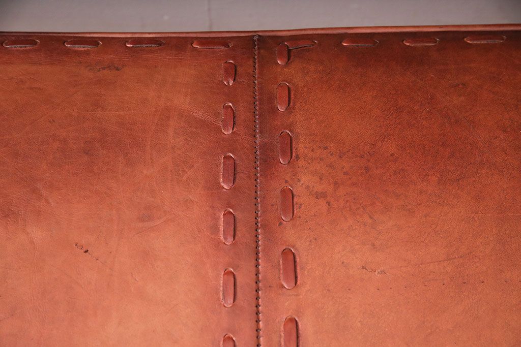 中古 海外 輸入家具 ステッチがお洒落な本革の3人掛けソファ(三人掛けソファ、トリプルソファ)(R-047883)です。 本革特有のしっとりとした質感が魅力の 3人掛けソファです。 革と木のフレームの組み合わせが あたたかな雰囲気を醸し出しています。 明るいオレンジがかったブラウンのお色は、 これからご使用していただく中で さらに味わいが増し、 いつまでも変化をお楽しみいただけますよ。 随所に施されたステッチは アクセントになってお洒落ですね。 ヴィンテージスタイルやレトロテイストの 空間づくりにいかがでしょうか。  【椅子の座り心地について】(身長161cmの女性スタッフの場合) クッションの硬さ:硬い 座面の高さ:丁度いい 背もたれの位置:腰と肩甲骨の中間 座面までの高さは座っていない状態の一番高い部分を測定しています。 多少の使用感はありますが、目立つ傷・ダメージはなく、状態良好です。 使用上問題のあるダメージはありません。 ■座面までの高さ 380mm ■重量 約34kg