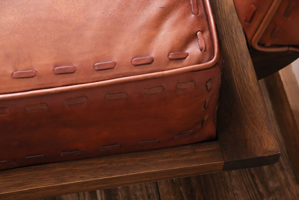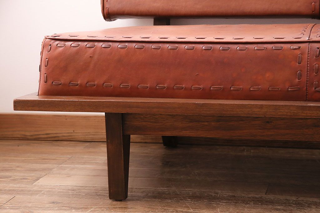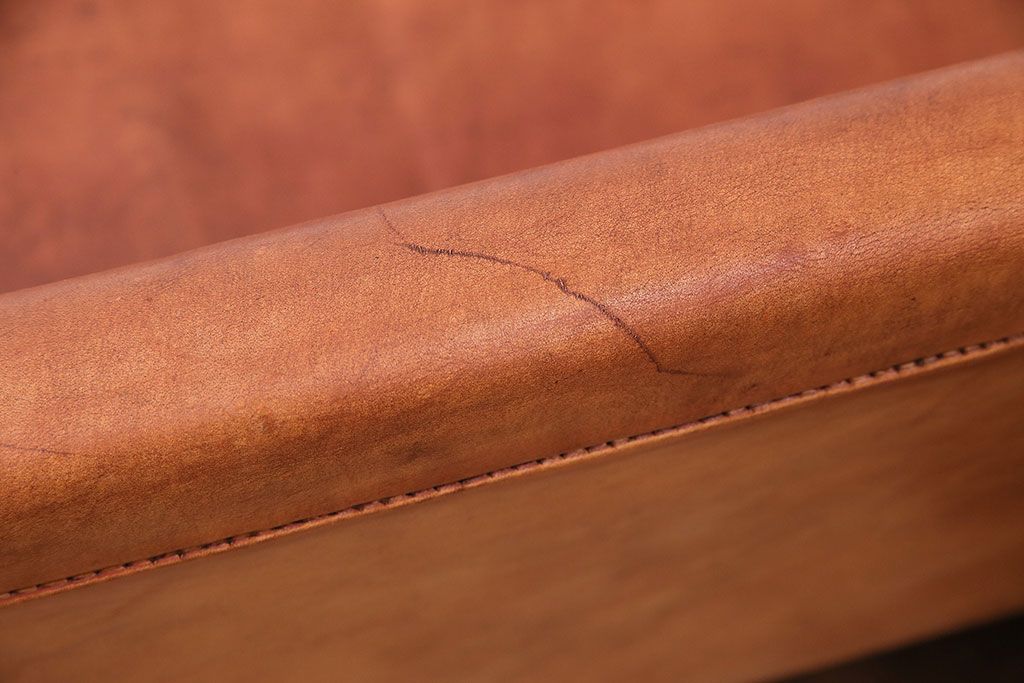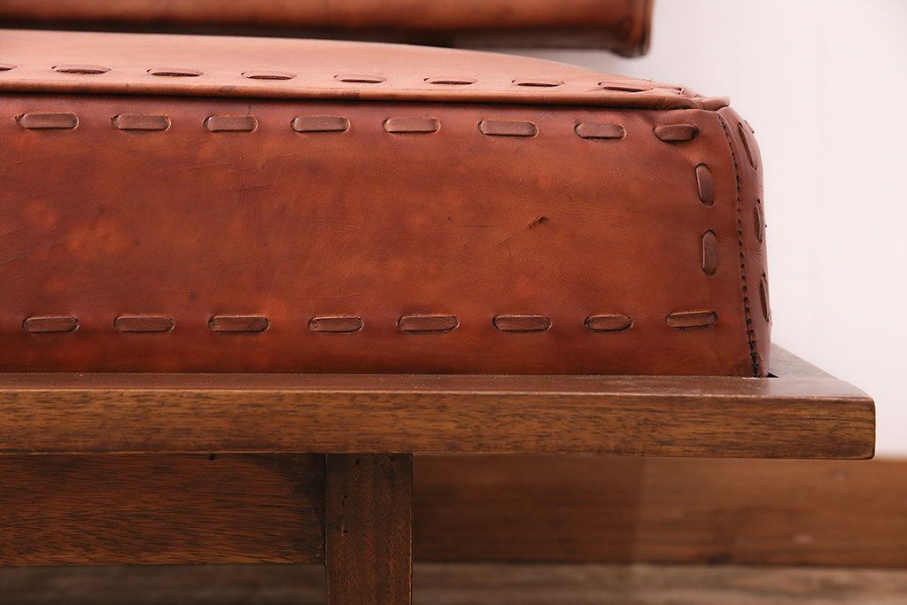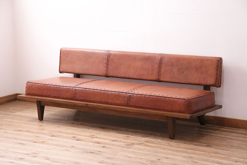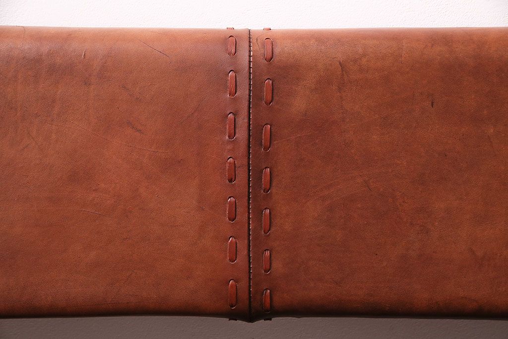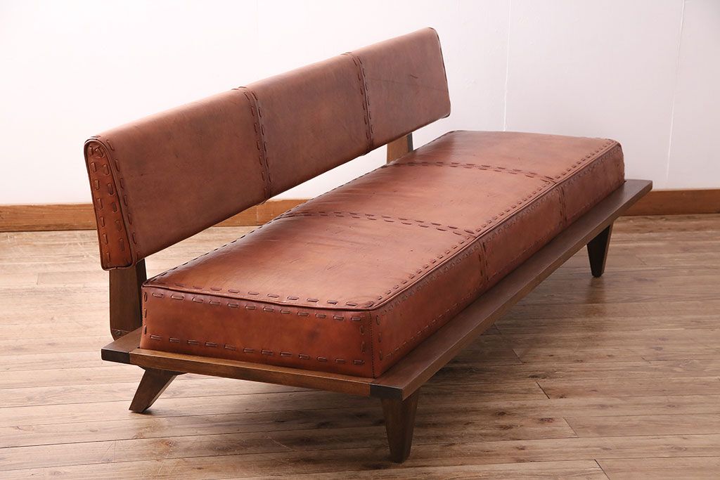 中古 海外 輸入家具 ステッチがお洒落な本革の3人掛けソファ(三人掛けソファ、トリプルソファ)(R-047883)です。 本革特有のしっとりとした質感が魅力の 3人掛けソファです。 革と木のフレームの組み合わせが あたたかな雰囲気を醸し出しています。 明るいオレンジがかったブラウンのお色は、 これからご使用していただく中で さらに味わいが増し、 いつまでも変化をお楽しみいただけますよ。 随所に施されたステッチは アクセントになってお洒落ですね。 ヴィンテージスタイルやレトロテイストの 空間づくりにいかがでしょうか。  【椅子の座り心地について】(身長161cmの女性スタッフの場合) クッションの硬さ:硬い 座面の高さ:丁度いい 背もたれの位置:腰と肩甲骨の中間 座面までの高さは座っていない状態の一番高い部分を測定しています。 多少の使用感はありますが、目立つ傷・ダメージはなく、状態良好です。 使用上問題のあるダメージはありません。 ■座面までの高さ 380mm ■重量 約34kg
