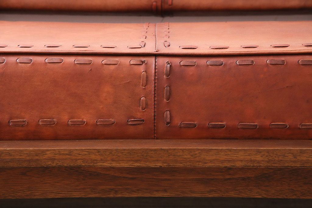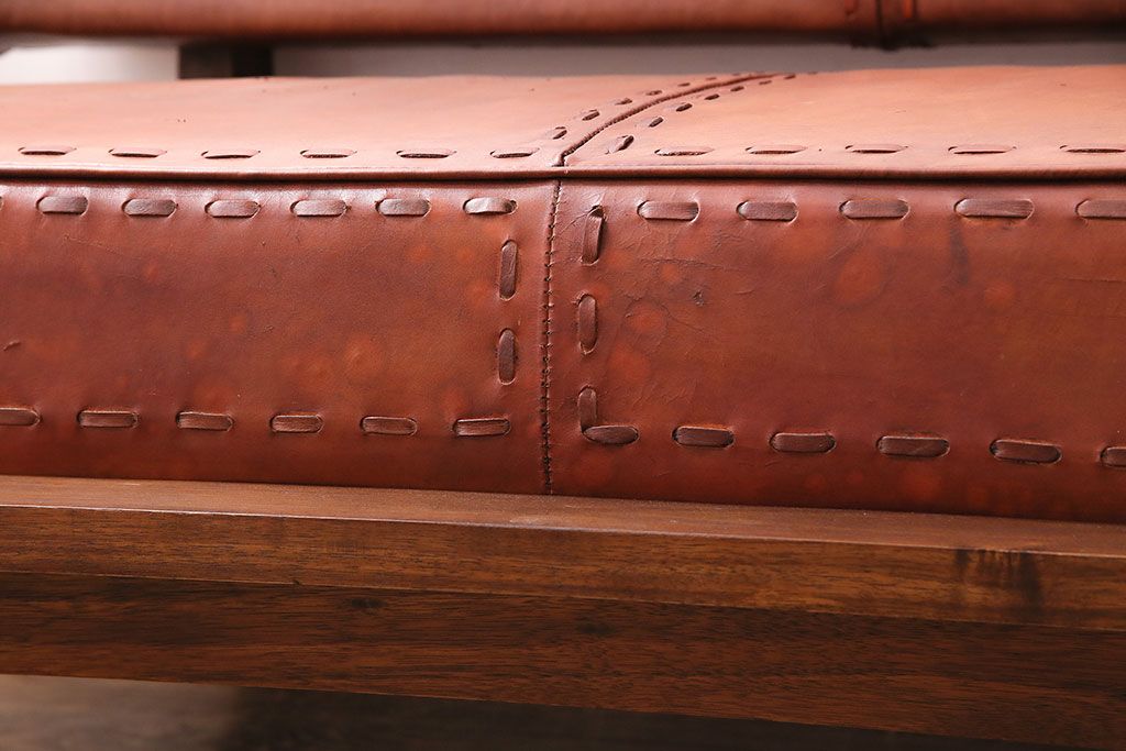 ソファ> 				3人掛けソファ				> 中古 海外 輸入家具 ステッチがお洒落な本革の3人掛けソファ(三人掛けソファ、トリプルソファ)(R-047883)