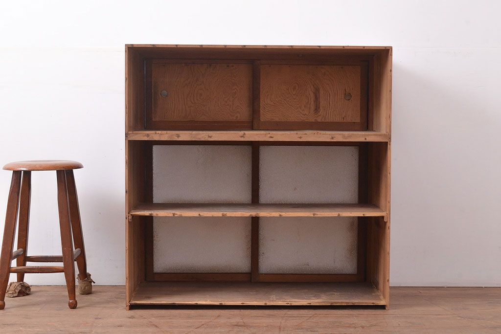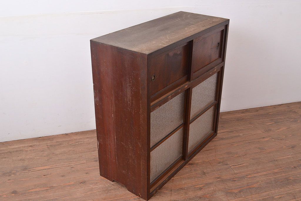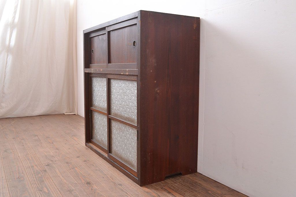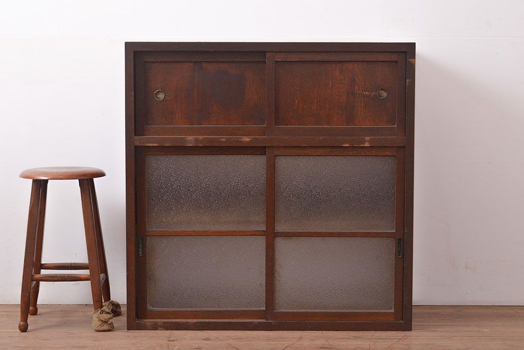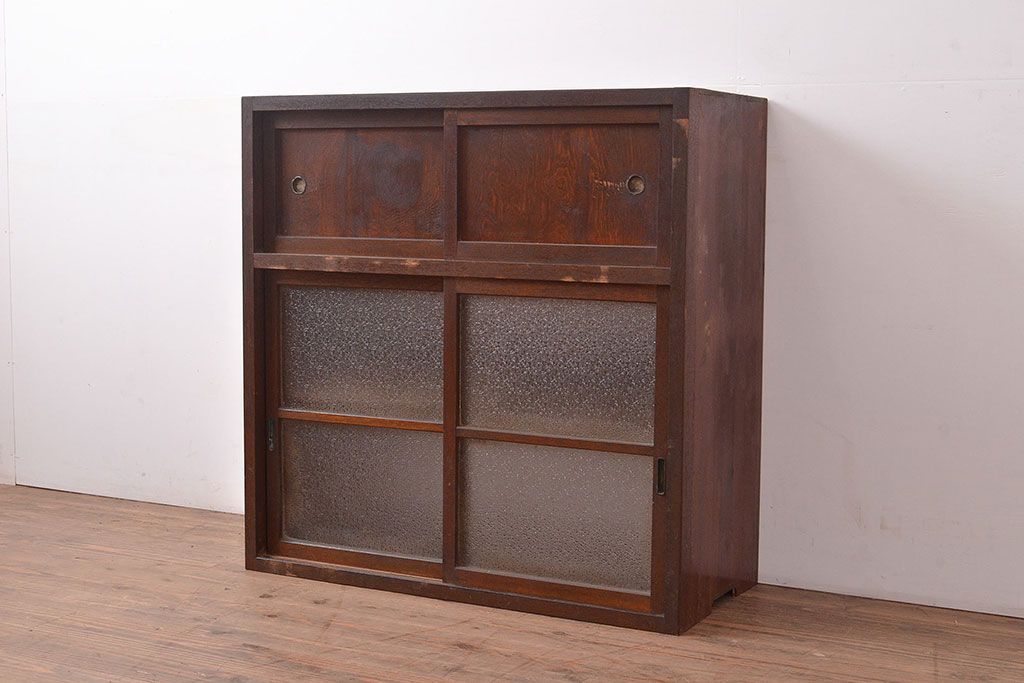 和製アンティーク レトロな雰囲気たっぷり!ダイヤガラスがお洒落な戸棚(収納棚、キャビネット)(R-047383)