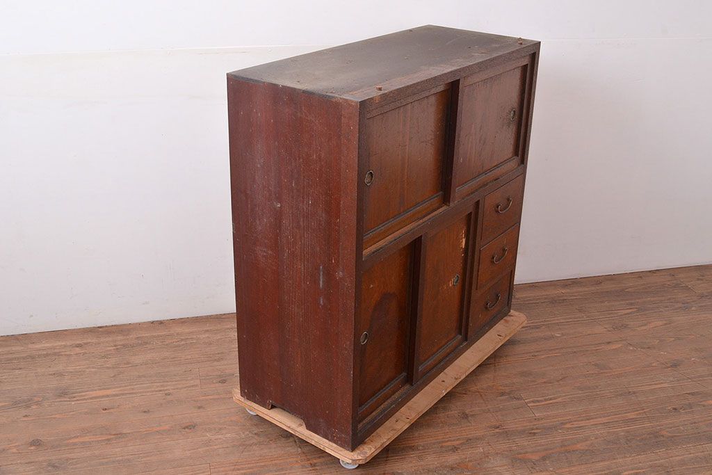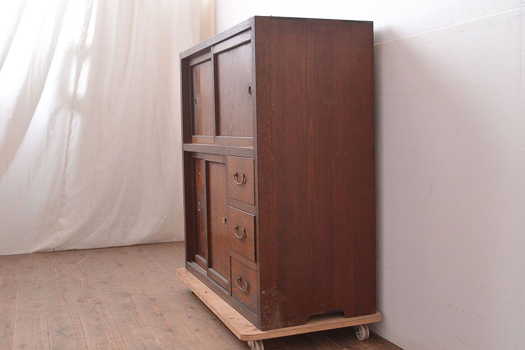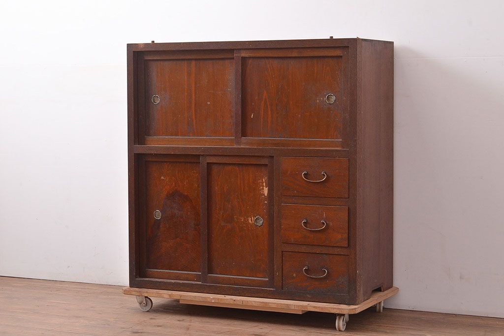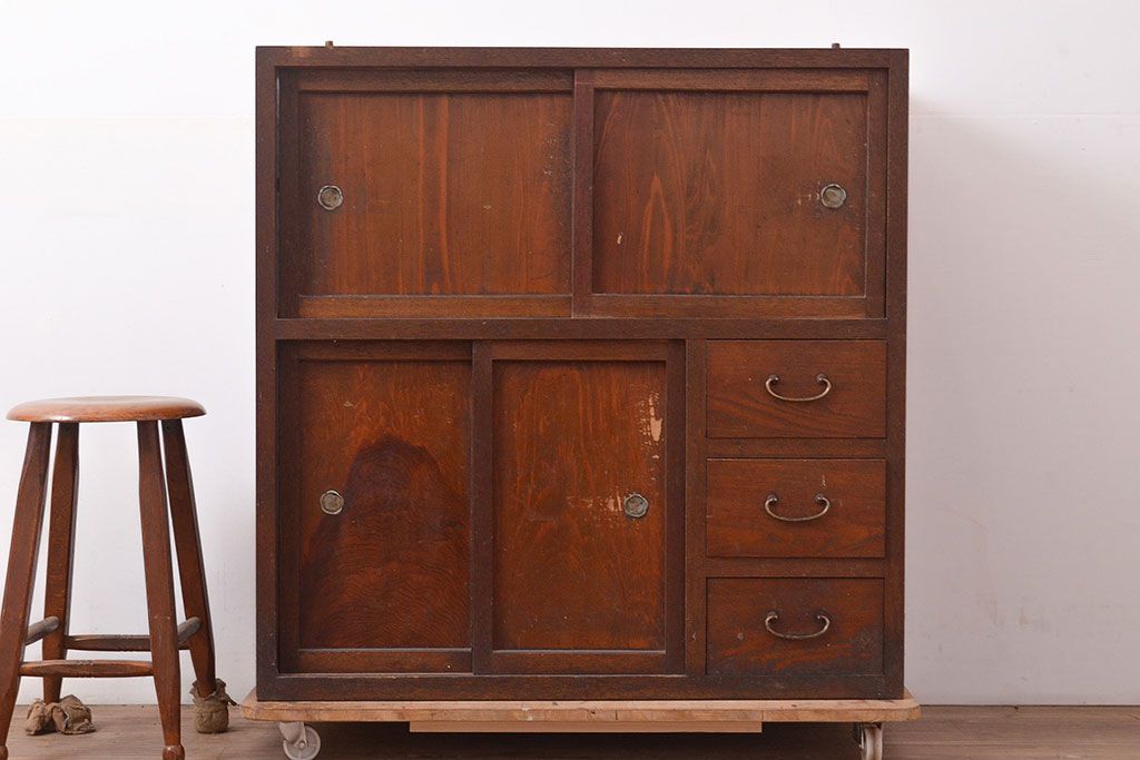 和製アンティーク レトロな雰囲気たっぷり!シンプルなデザインが取り入れやすい戸棚(収納棚、キャビネット)(R-047384)