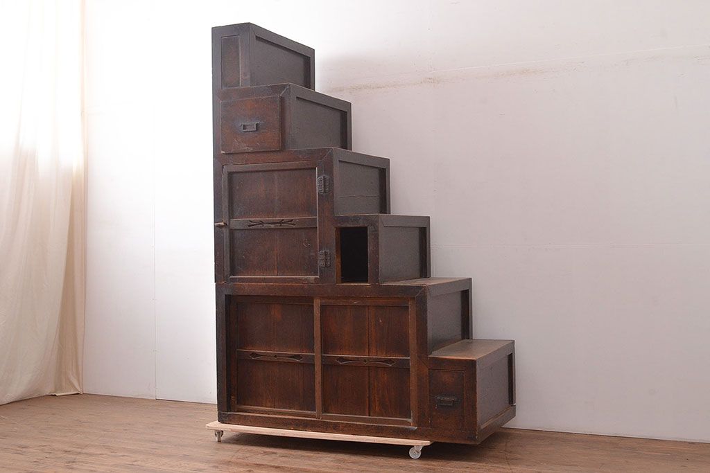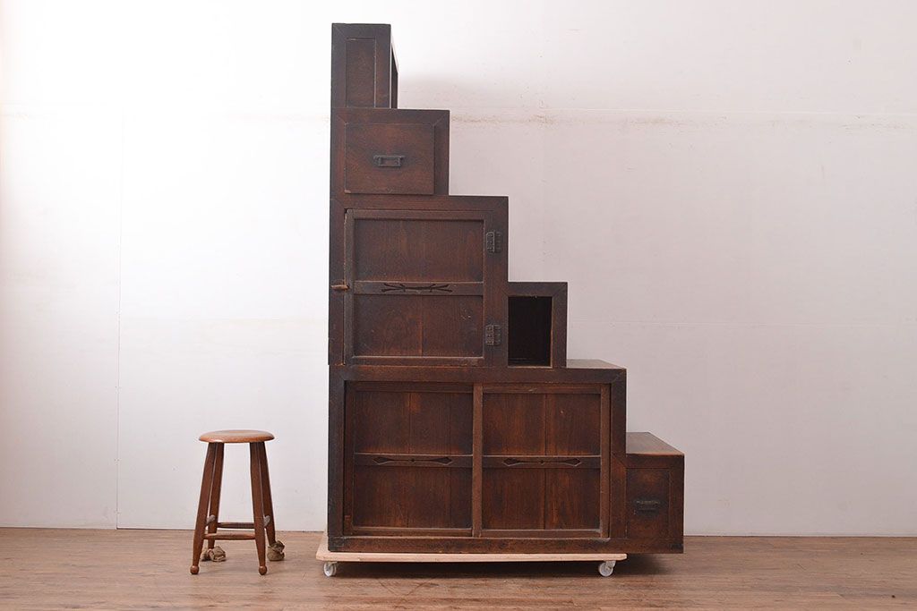 和箪笥 > 和製アンティーク 明治大正期 奥深い味わいが感じられる小振りなサイズの階段箪笥(時代箪笥)(R-047324)