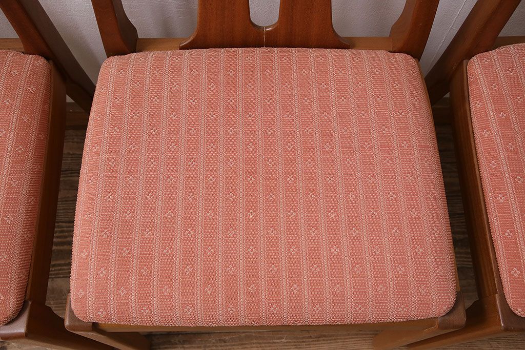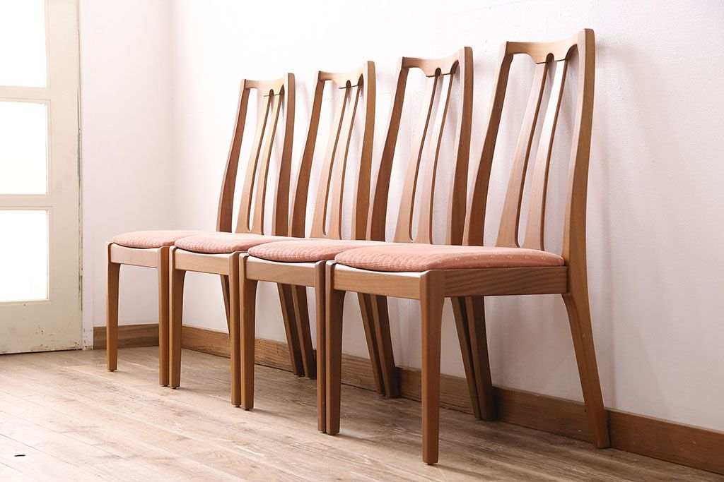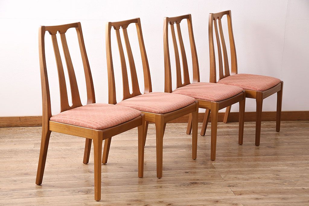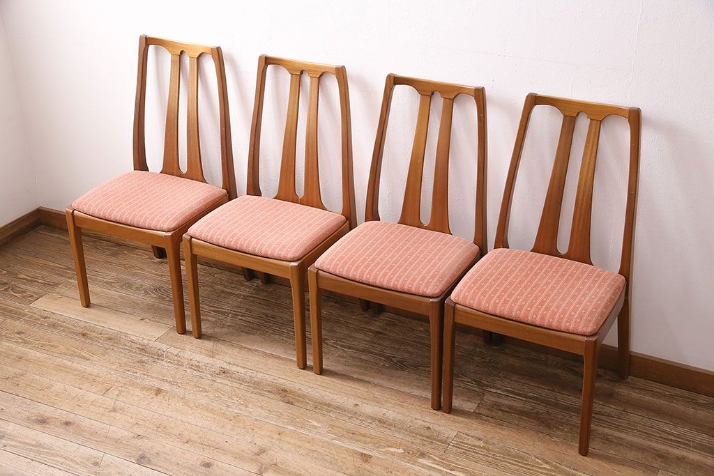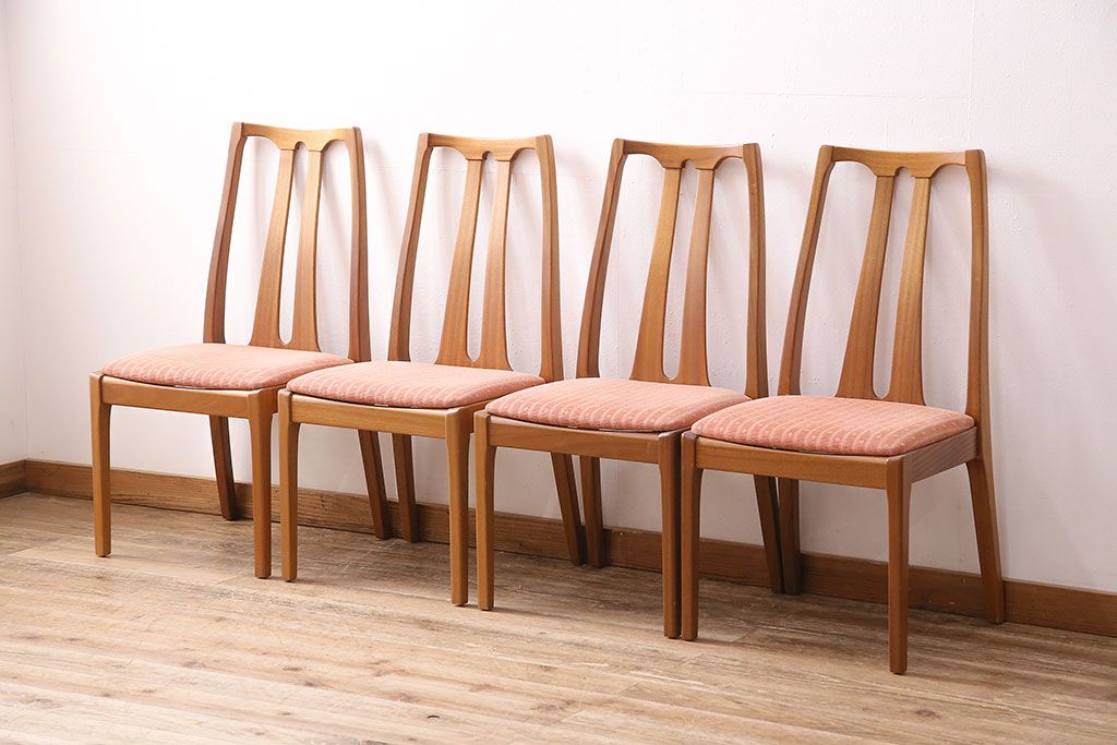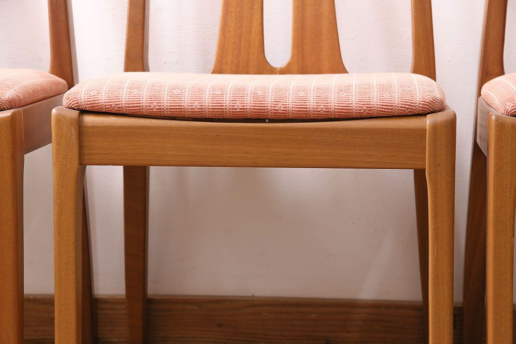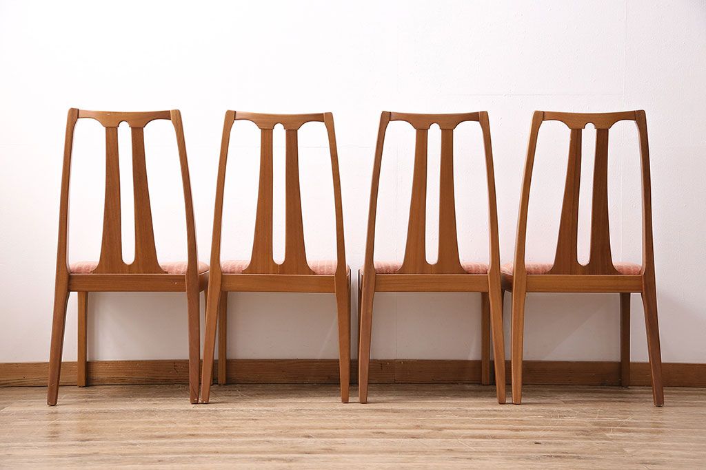 状態が気になる方には現状販売はおすすめできませんので、慎重なご検討をお願いいたします。イギリスヴィンテージ チーク材 温もり溢れるダイニング作りにおすすめのチェア4脚セット(ダイニングチェア、椅子)(R-047702)です。