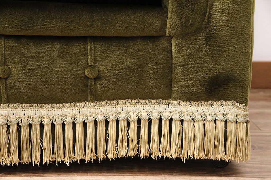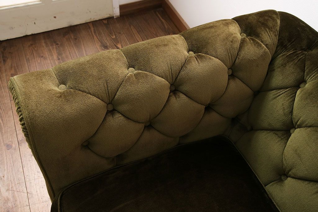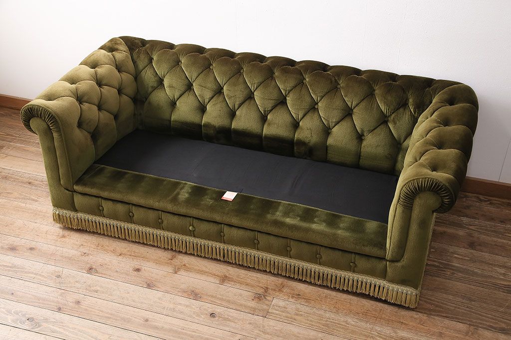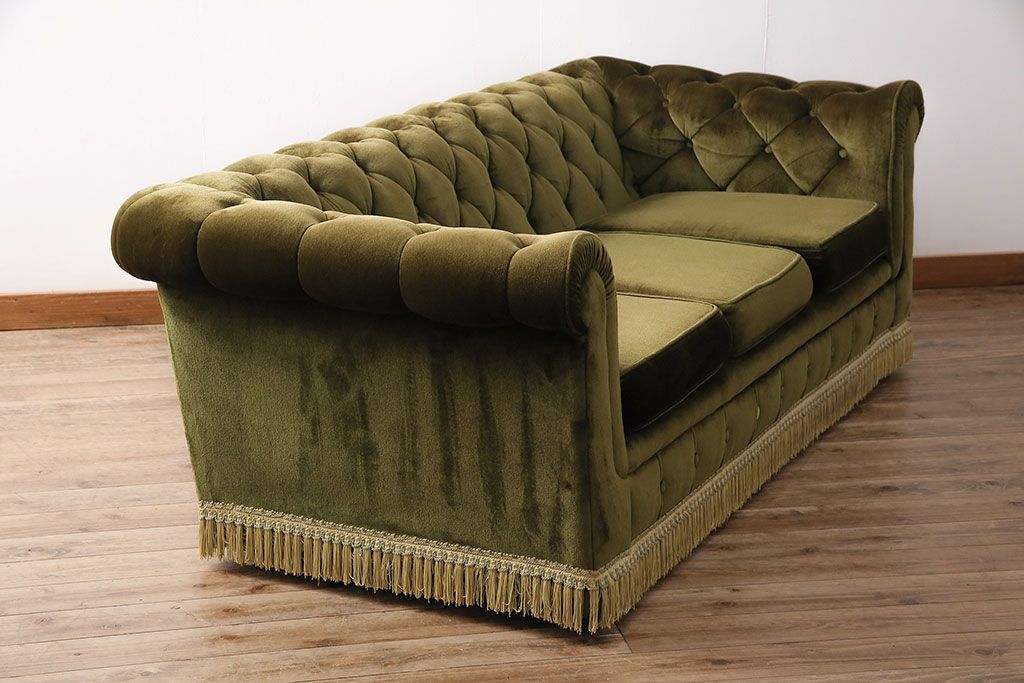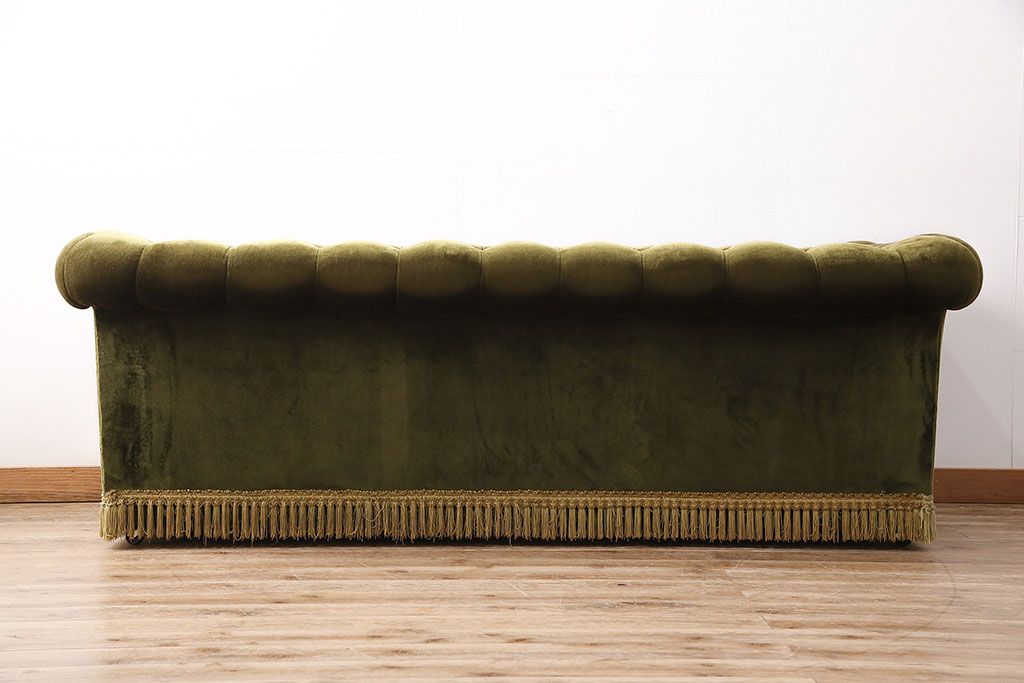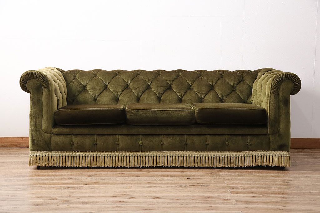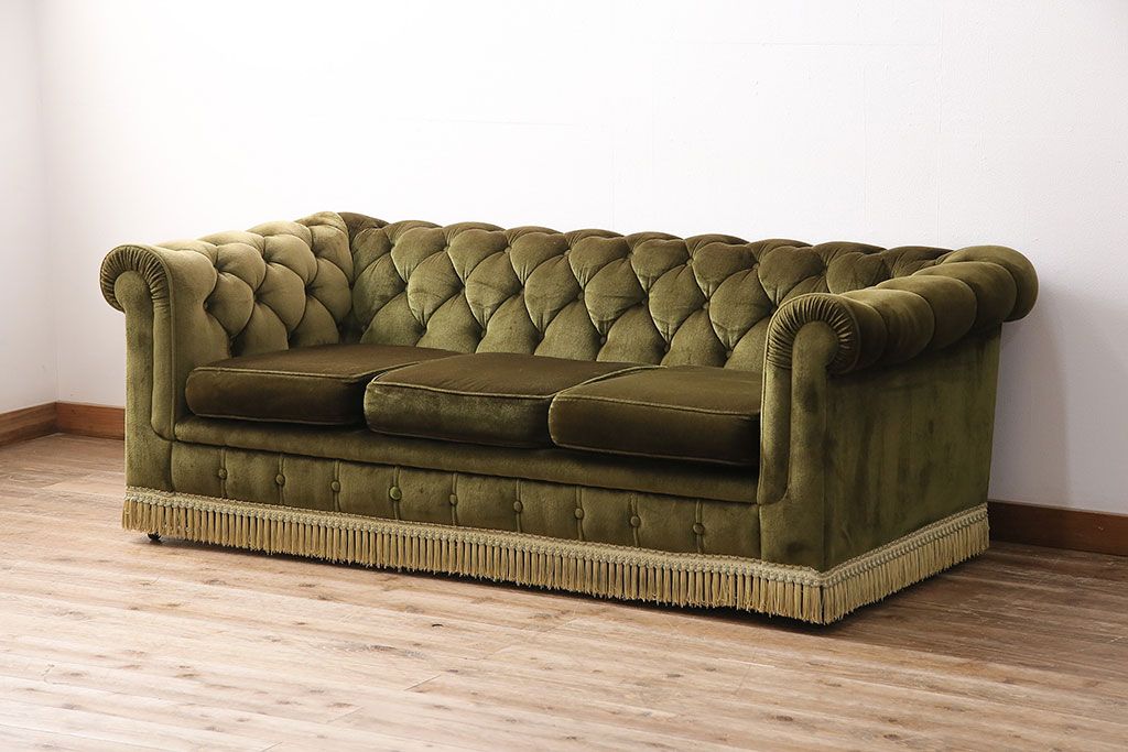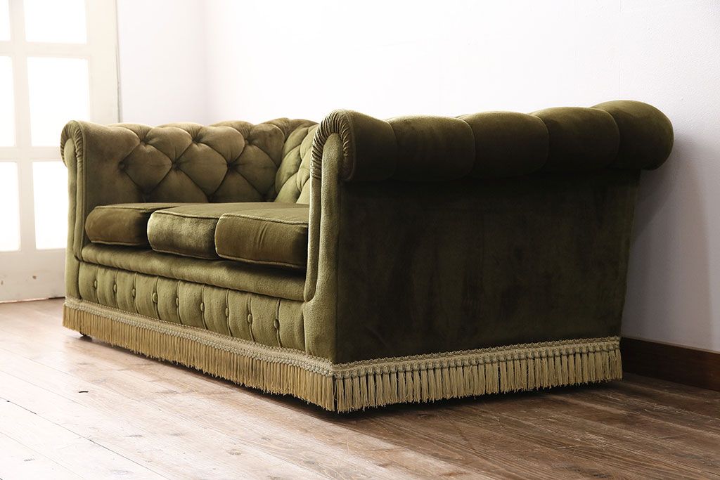 イギリスビンテージ クラシックな佇まいが魅力的な重厚感のあるチェスターフィールド風ソファ(3人掛け)(R-047831)