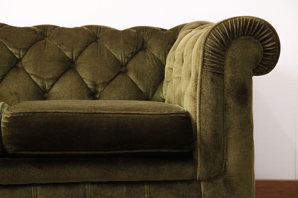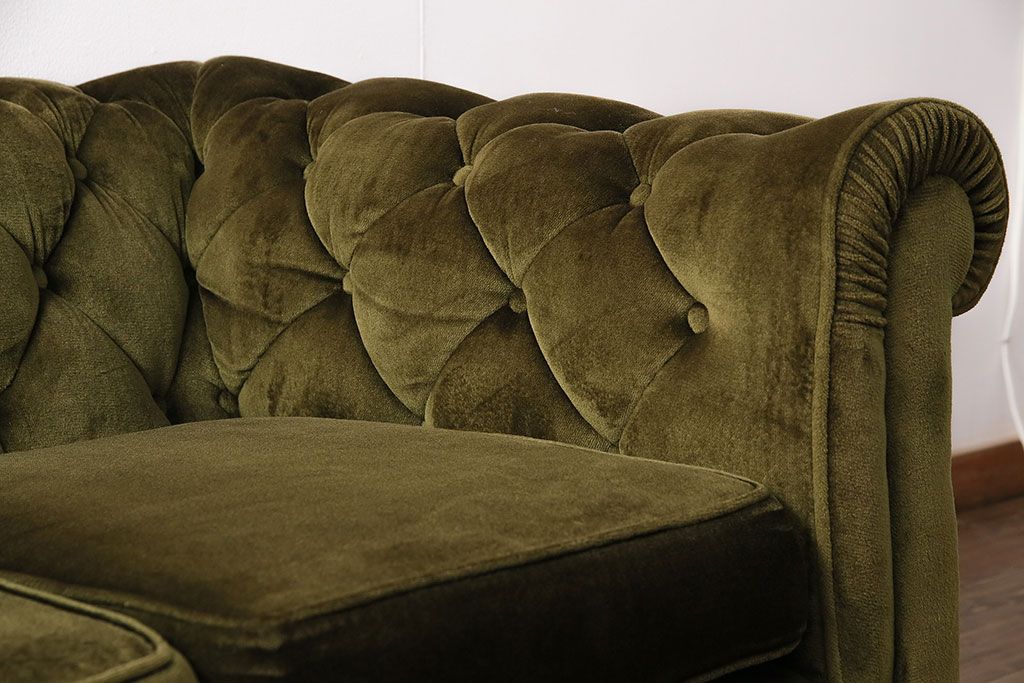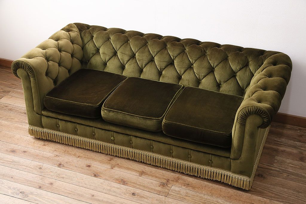 ソファ > イギリスビンテージ クラシックな佇まいが魅力的な重厚感のあるチェスターフィールド風ソファ(3人掛け)(R-047831)