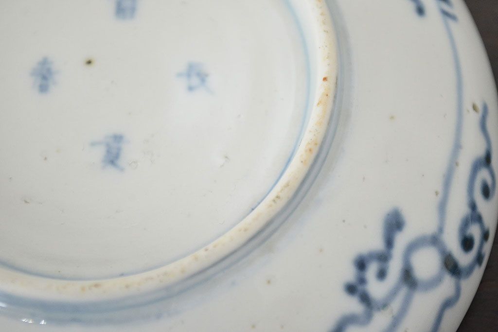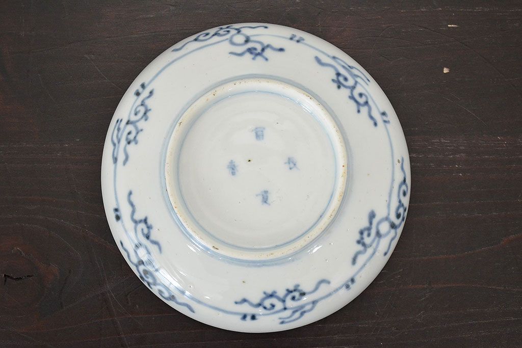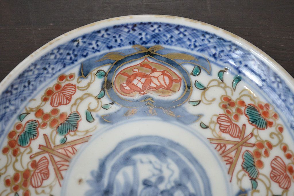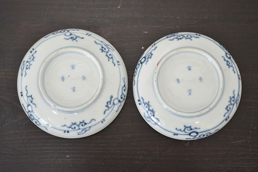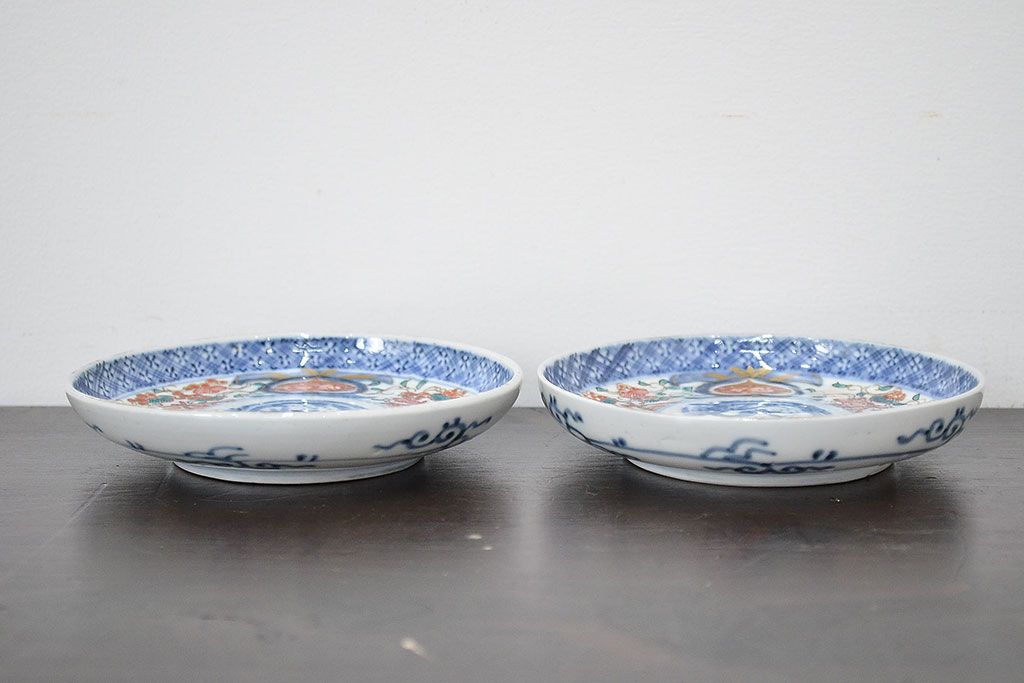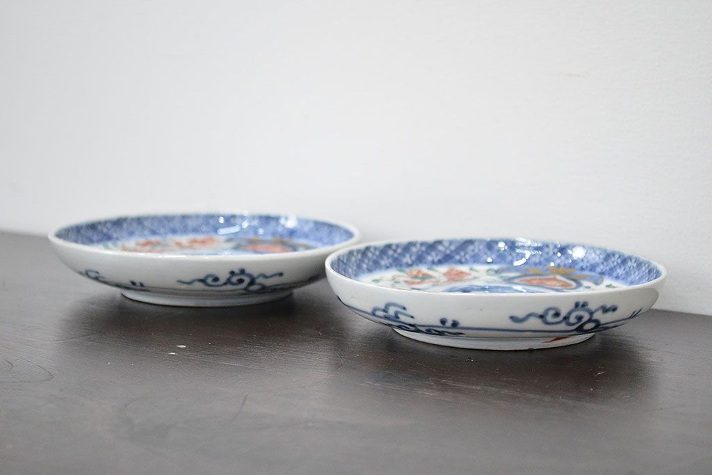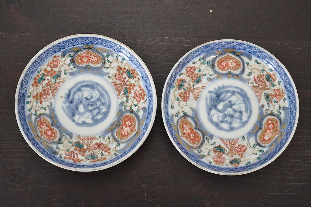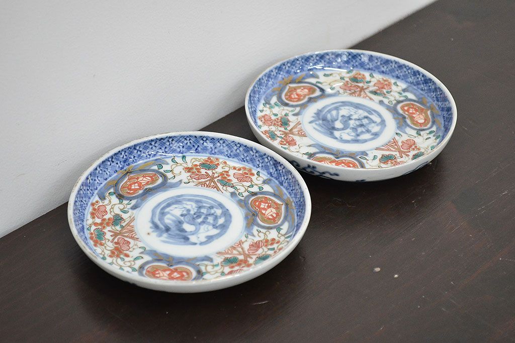 江戸期 古伊万里 富長貴春 小皿2枚(色絵、染付、和食器)(R-047728)