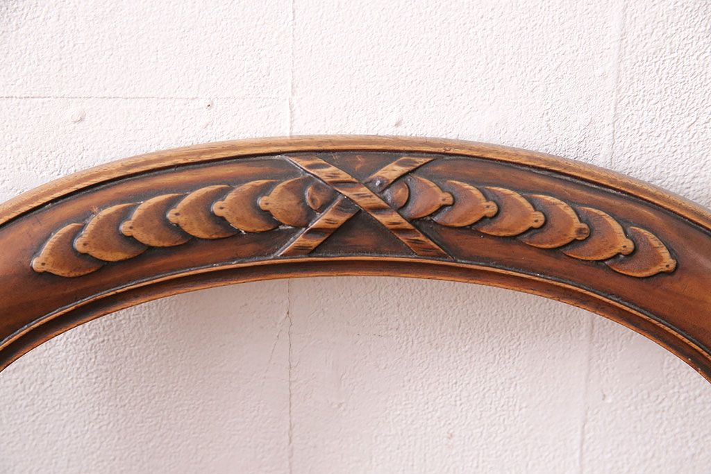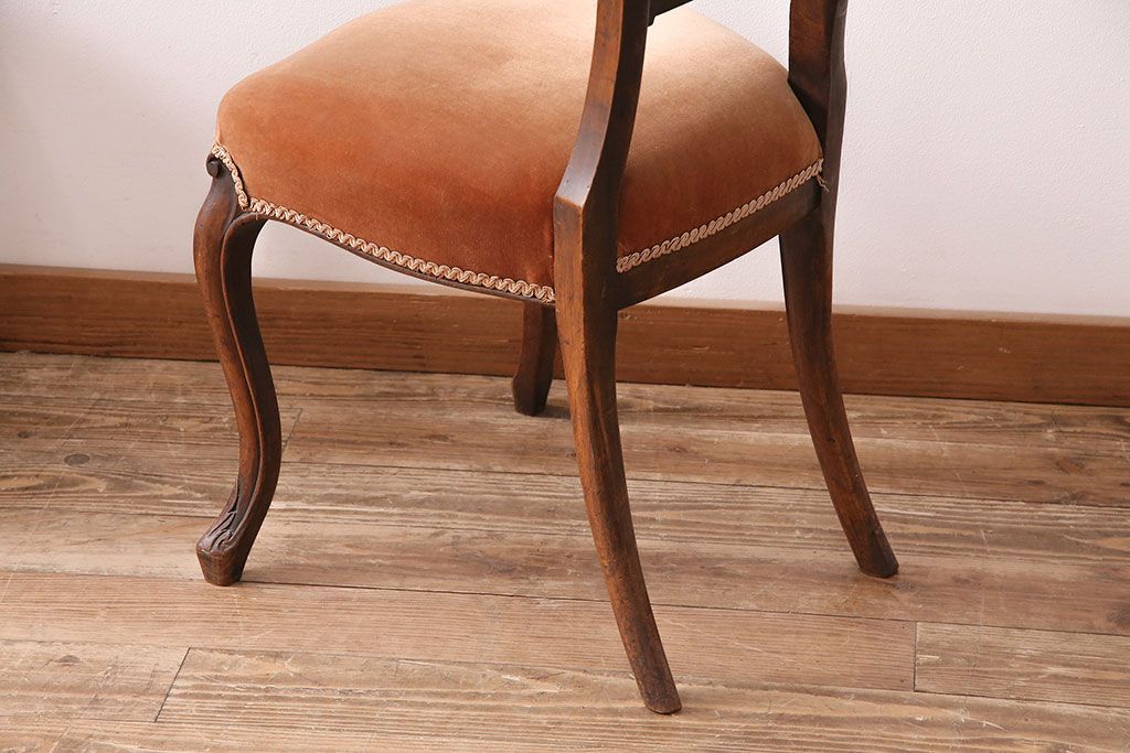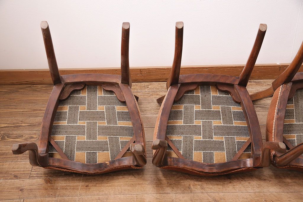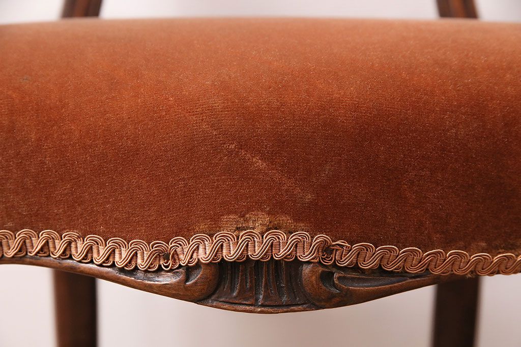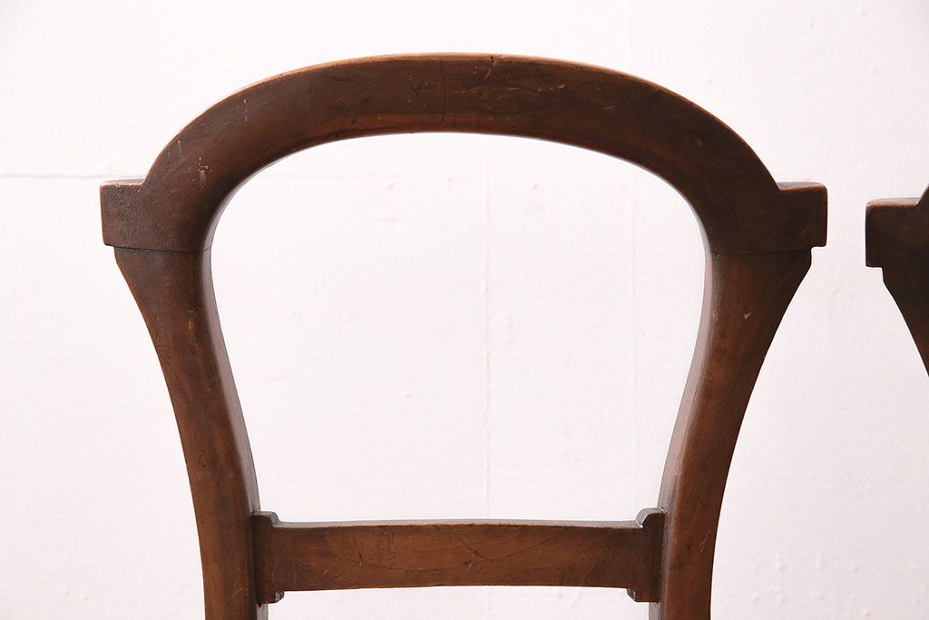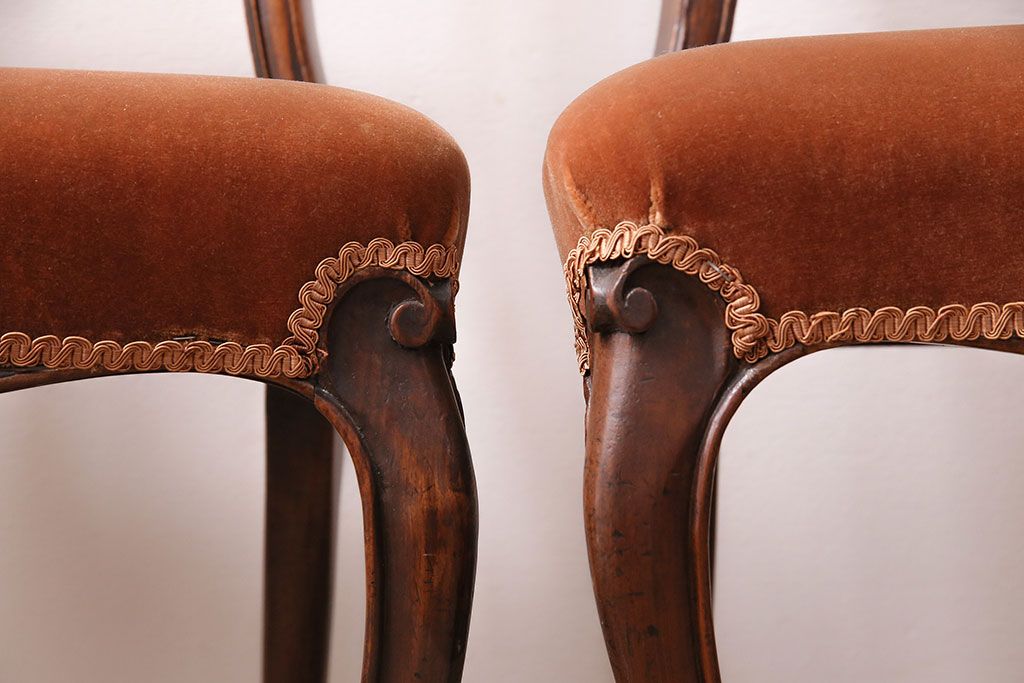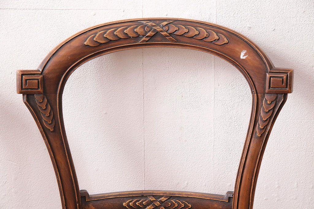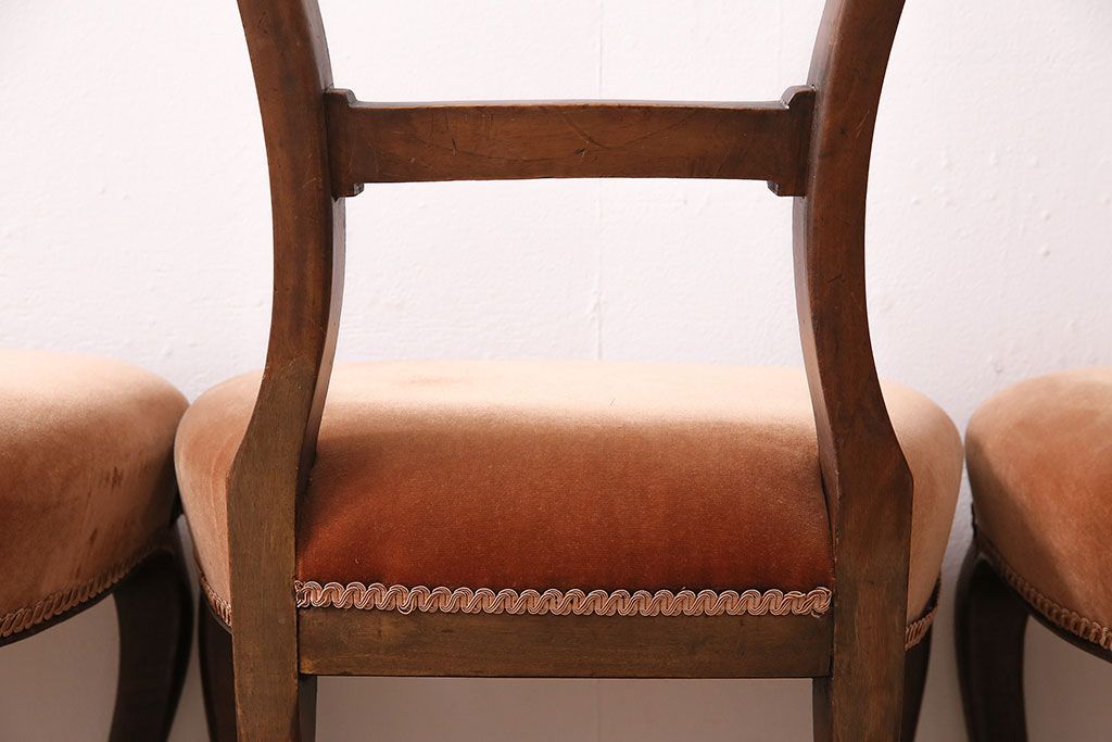 状態が気になる方には現状販売はおすすめできませんので、慎重なご検討をお願いいたします。イギリスアンティーク 彫りがアクセントになったマホガニー材製のバルーンバックチェア4脚セット(ダイニングチェア、椅子)(R-047833)です。