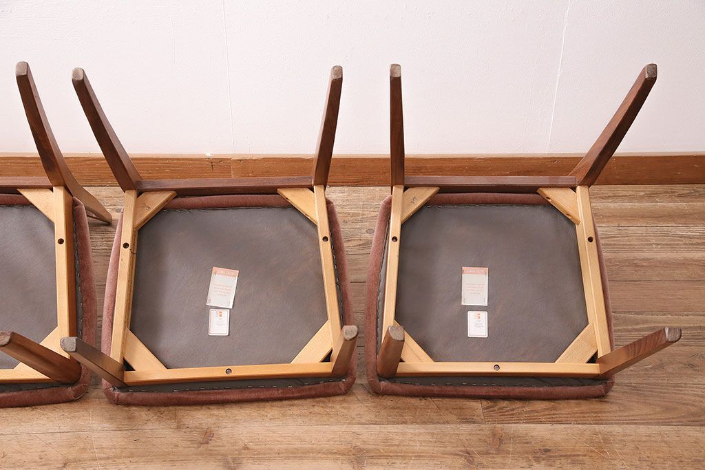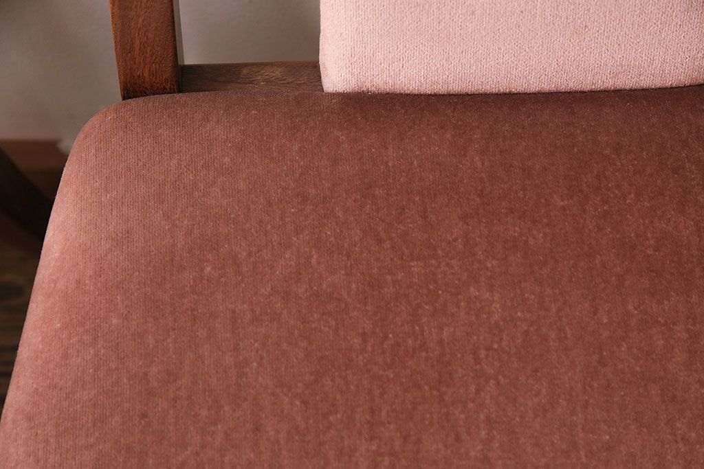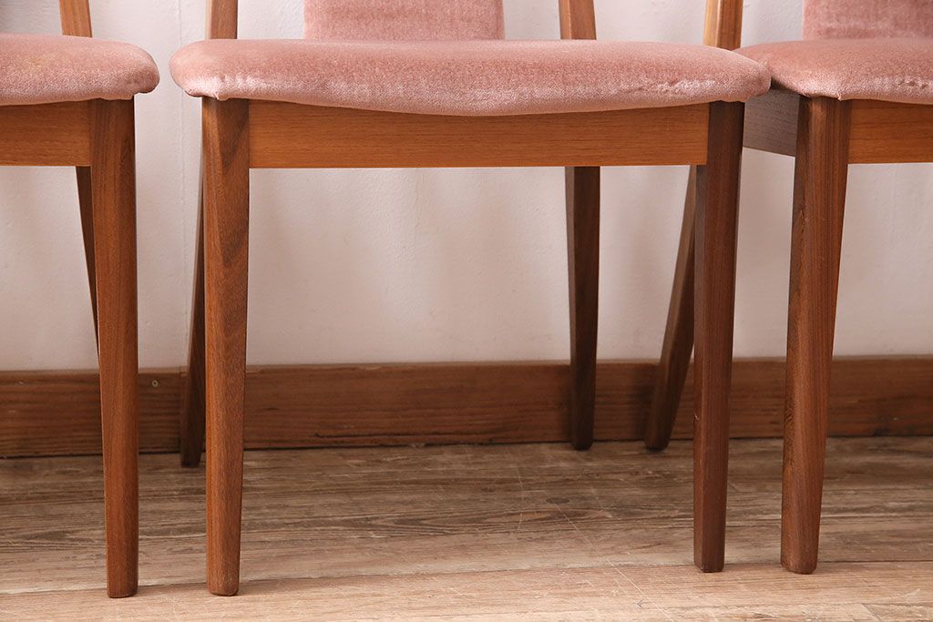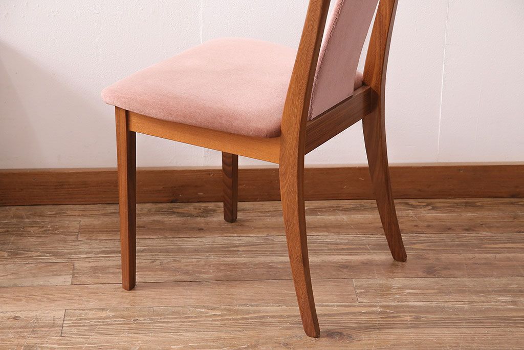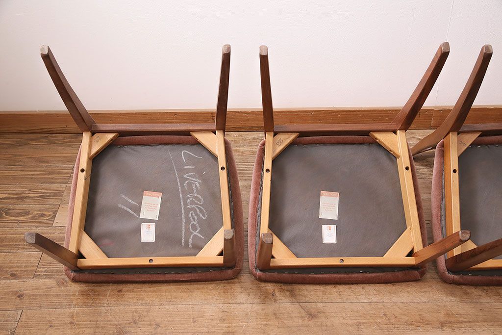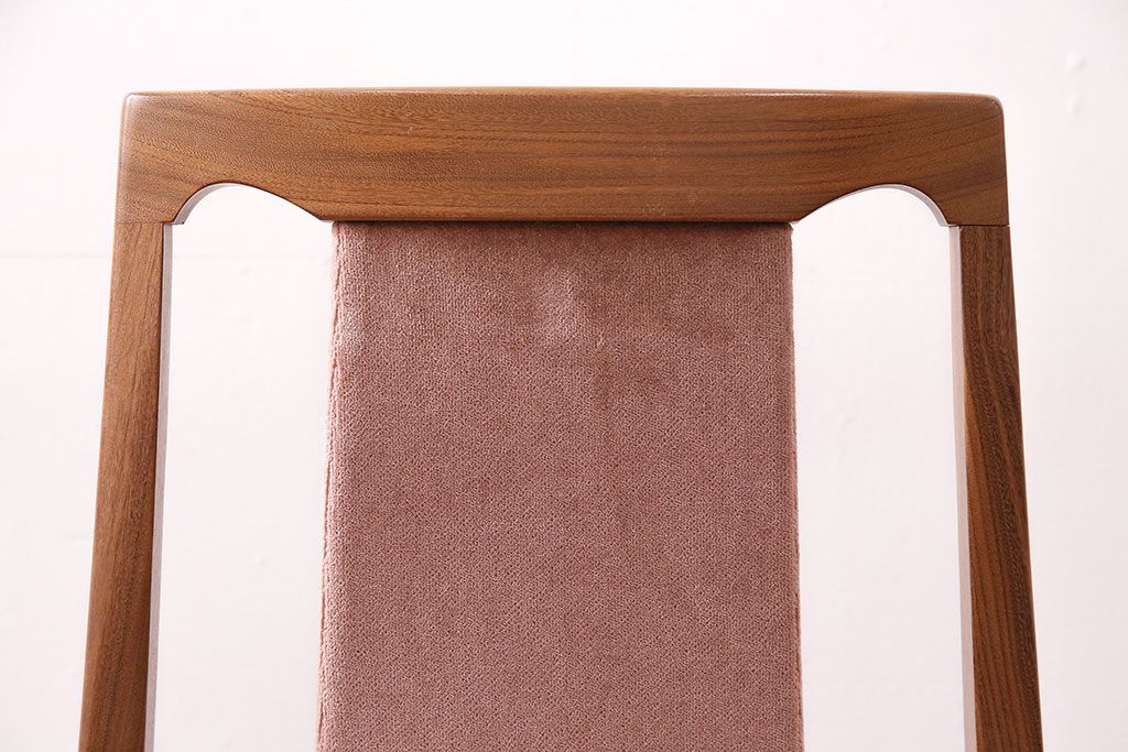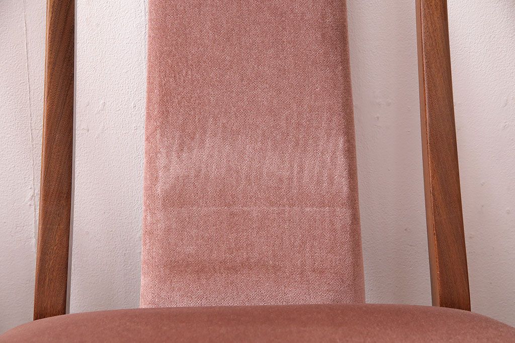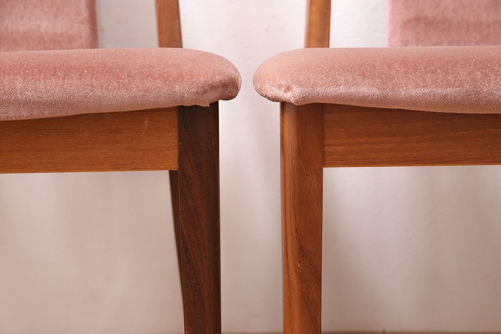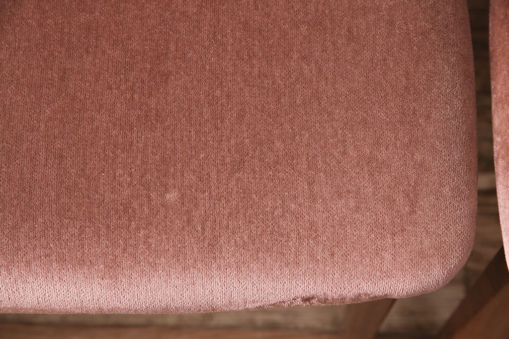 状態が気になる方には現状販売はおすすめできませんので、慎重なご検討をお願いいたします。イギリスビンテージ 人気のG-PLAN!背もたれにもファブリックが使われている、珍しいデザインのチェア4脚セット(ダイニングチェア、椅子)(R-047835)です。