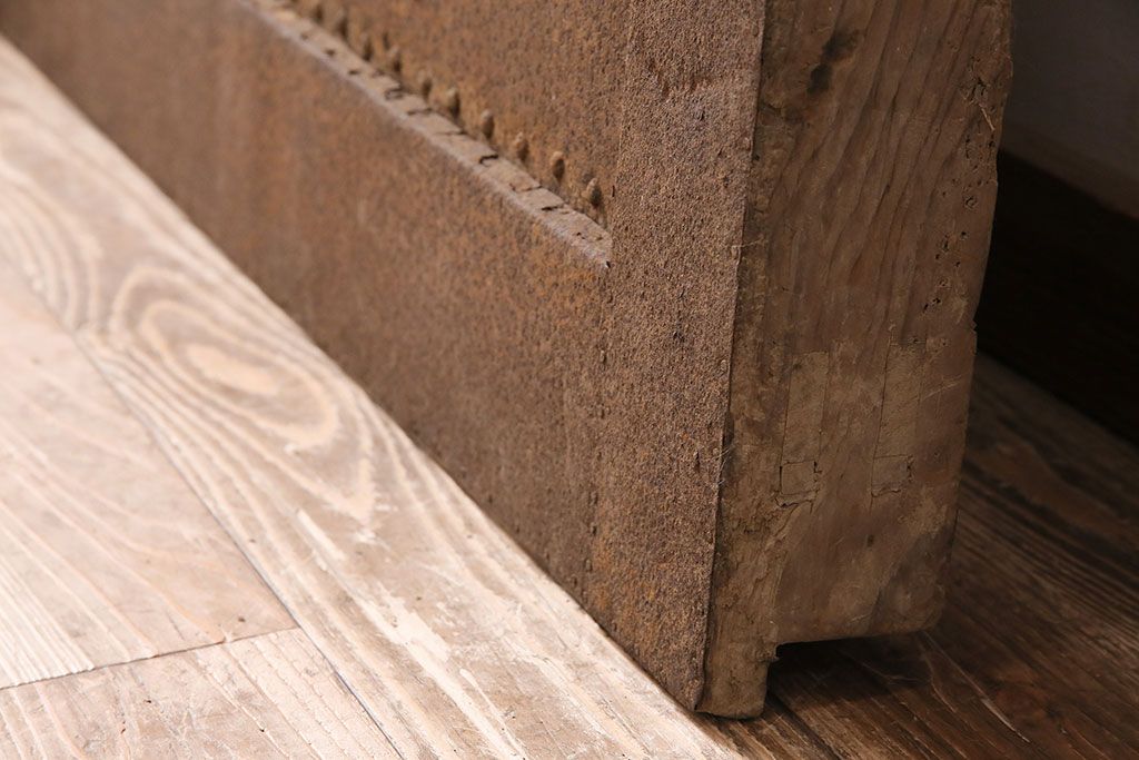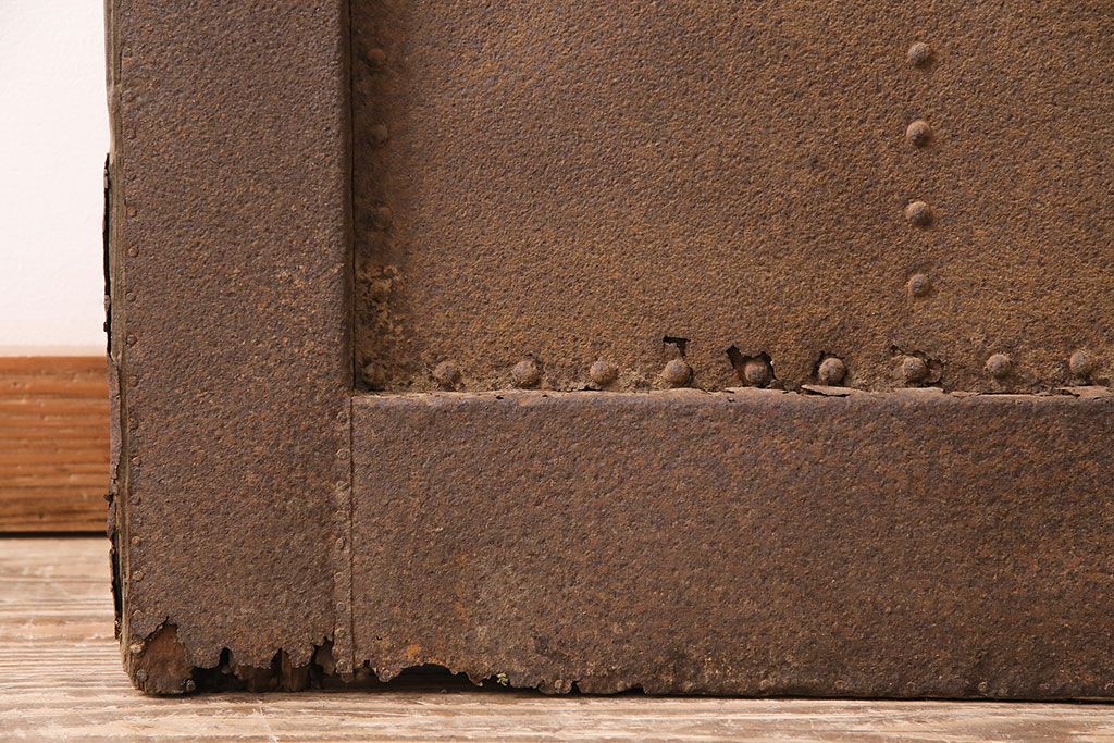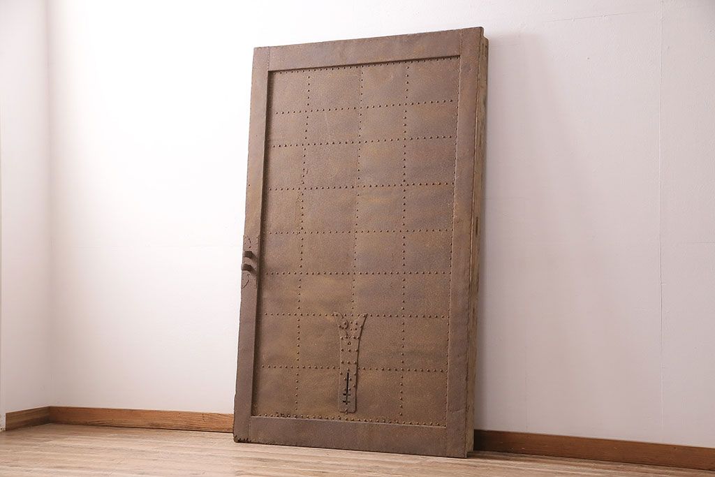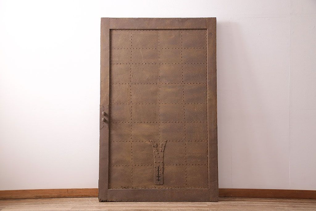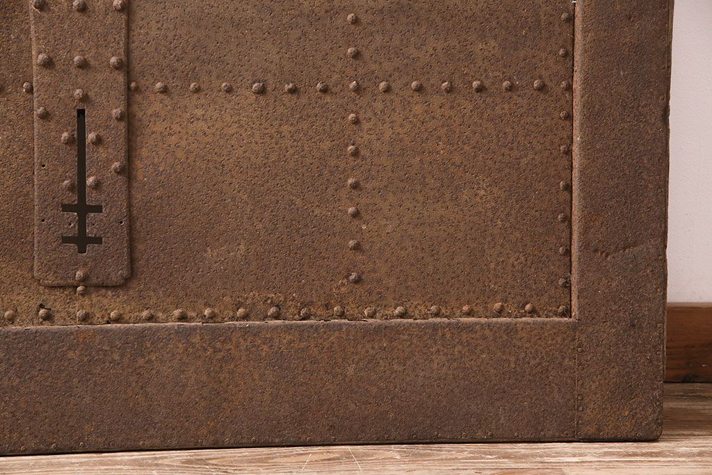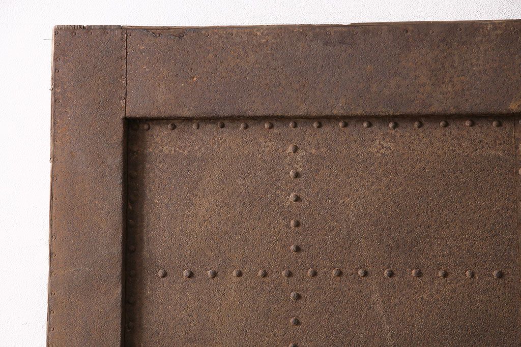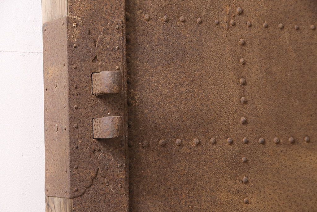 アンティーク建具 経年による風合いが渋いかっこ良さを醸し出す鉄板蔵戸(鉄扉、玄関戸、建具、引き戸)(R-047696)