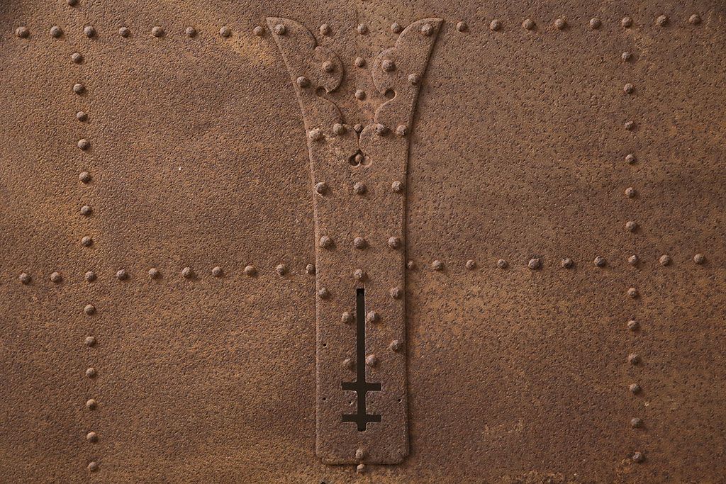 ドア・建具> 引き戸 > アンティーク建具 経年による風合いが渋いかっこ良さを醸し出す鉄板蔵戸(鉄扉、玄関戸、建具、引き戸)(R-047696)
