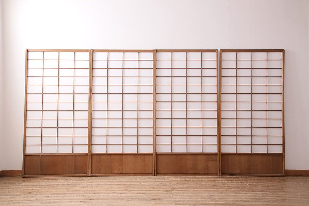 アンティーク建具 シンプルで取り入れやすい障子戸4枚セット(引き戸、建具)(R-047851)