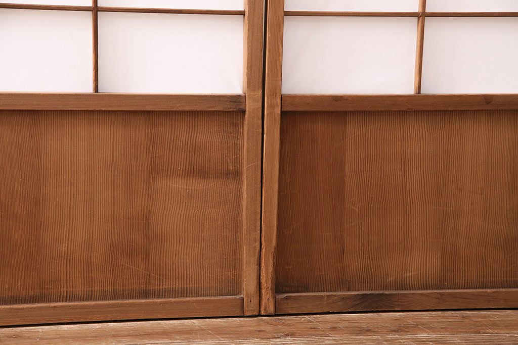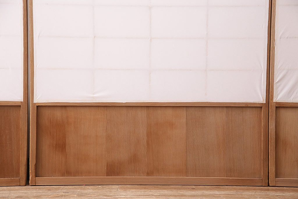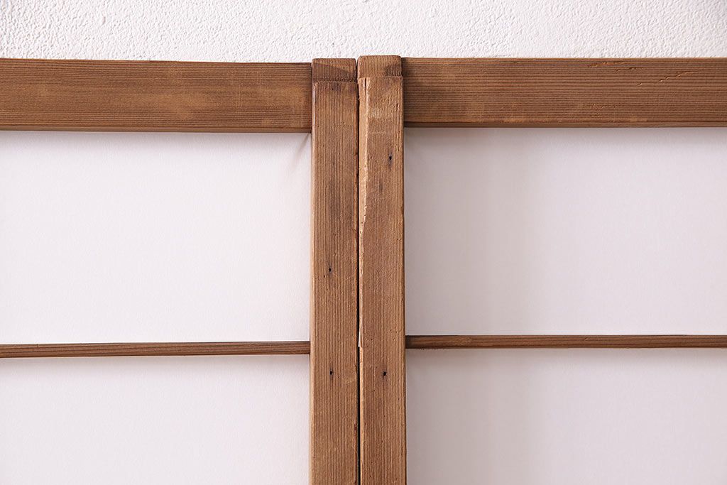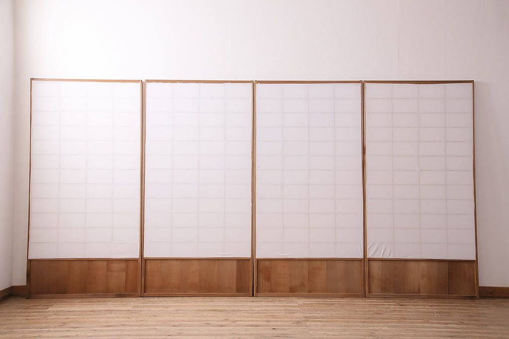状態が気になる方には現状販売はおすすめできませんので、慎重なご検討をお願いいたします。アンティーク建具 シンプルで取り入れやすい障子戸4枚セット(引き戸、建具)(R-047851)です。