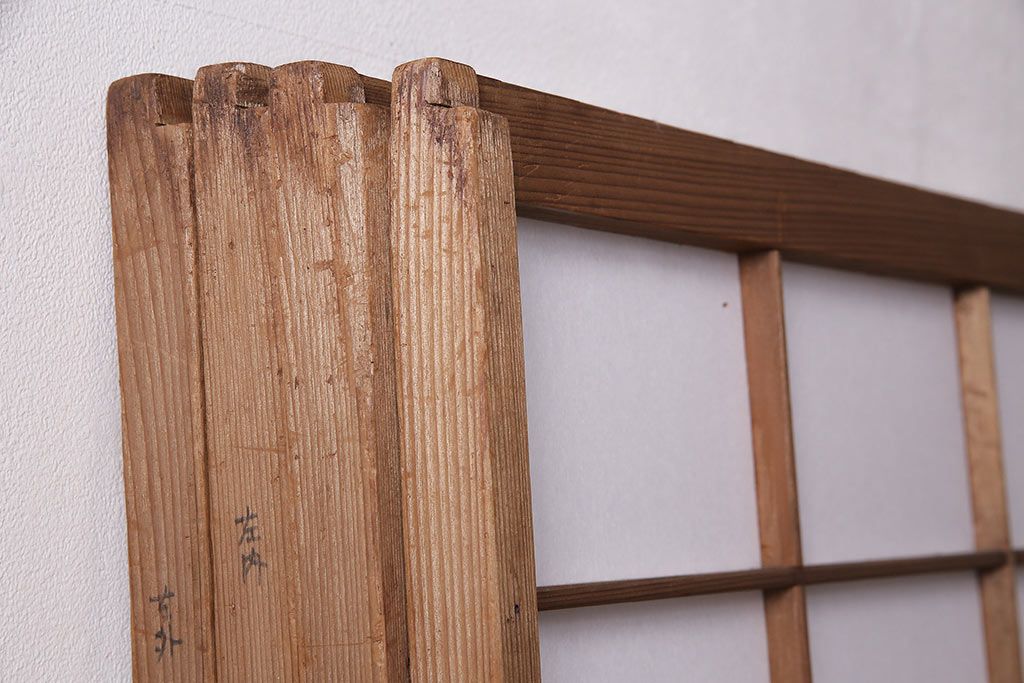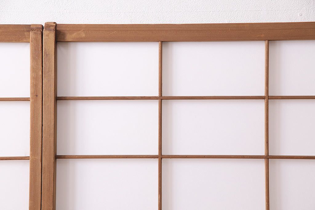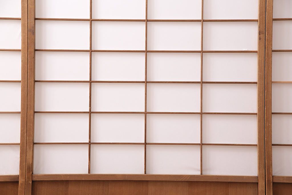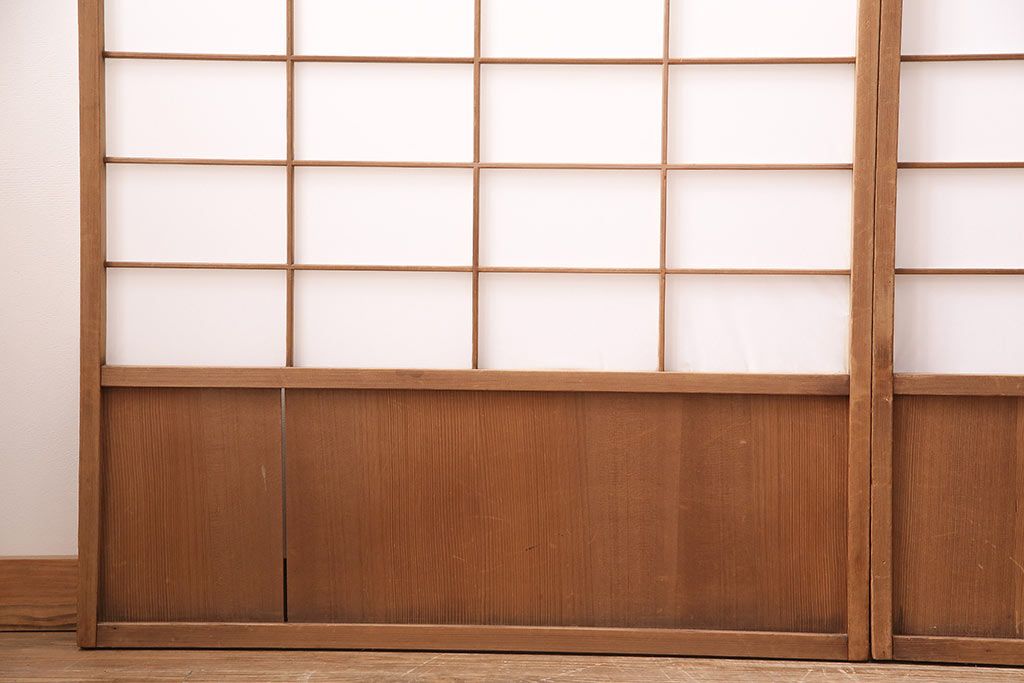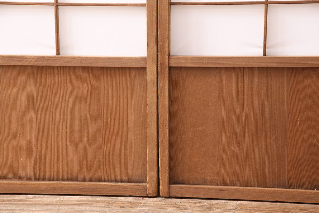 状態が気になる方には現状販売はおすすめできませんので、慎重なご検討をお願いいたします。アンティーク建具 シンプルで取り入れやすい障子戸4枚セット(引き戸、建具)(R-047851)です。