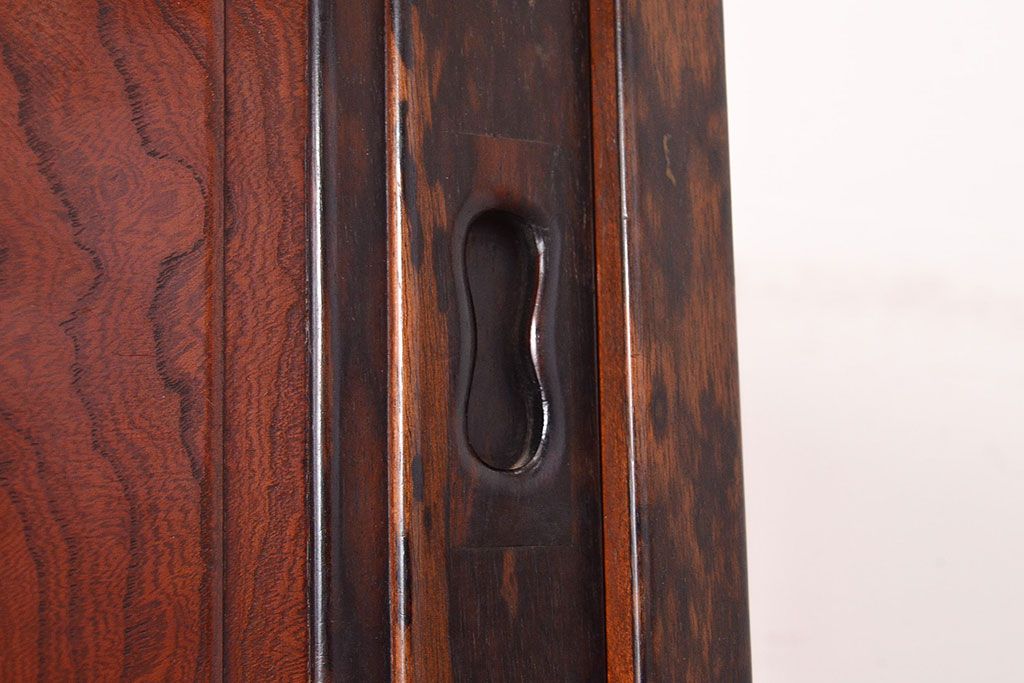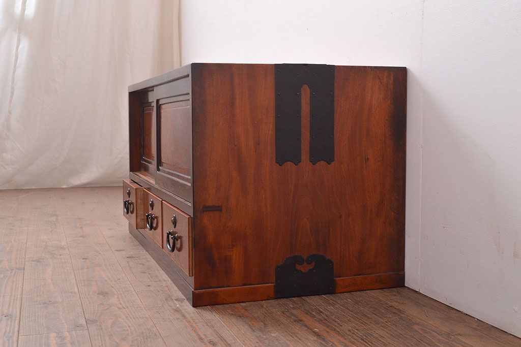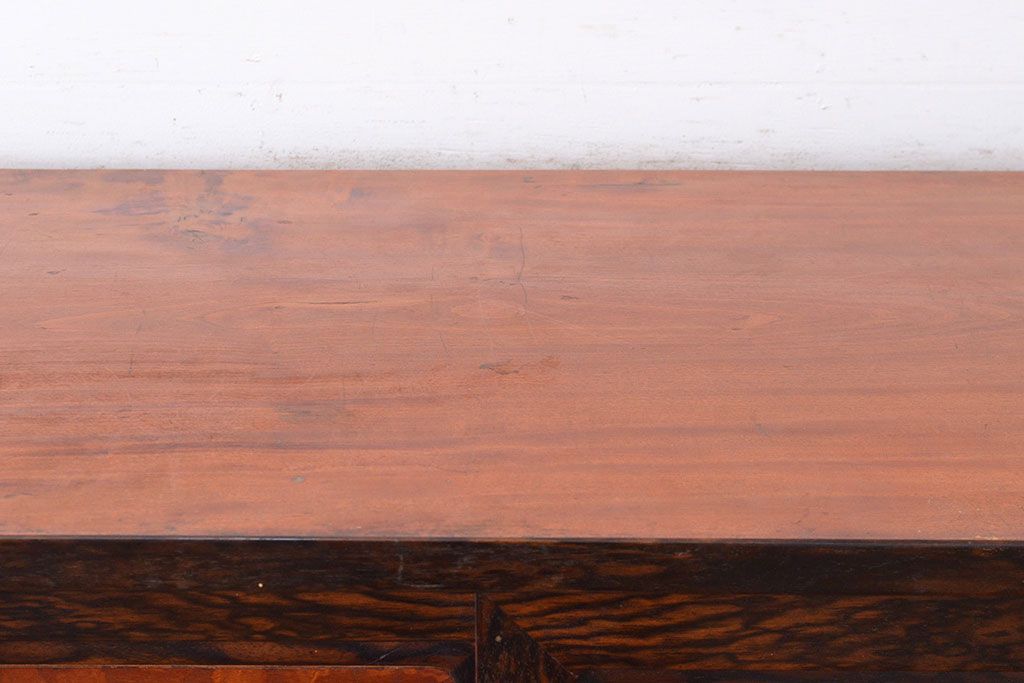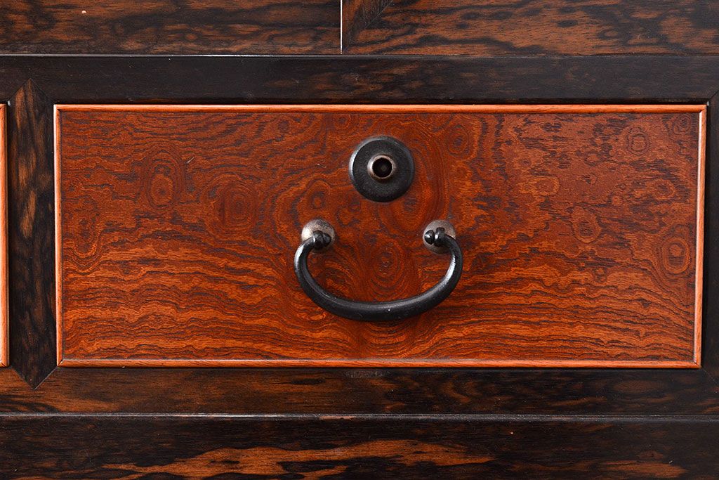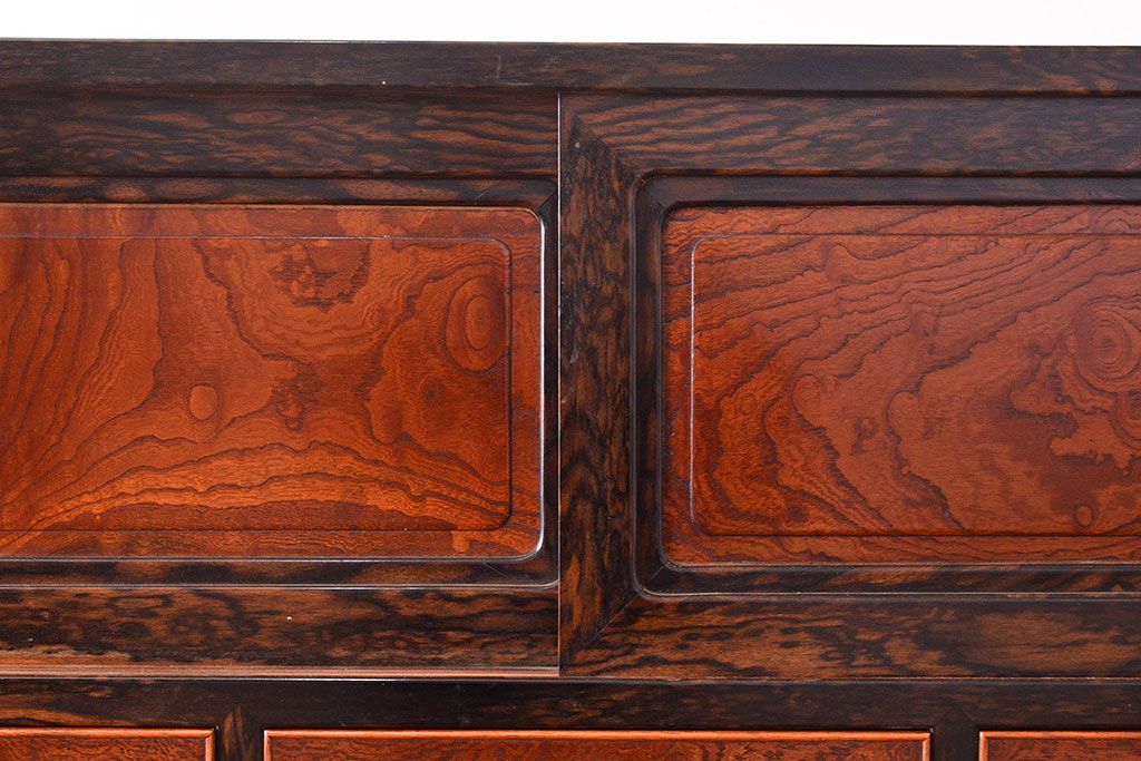 アンティーク 極美品 前面(黒柿孔雀杢・ケヤキ玉杢) 中(桐) 天板・側面(楠木) 漆塗り 群馬県の織物問屋から出てきました!!最高級のローボード(収納棚、テレビ台、テレビボード)(R-047347)
