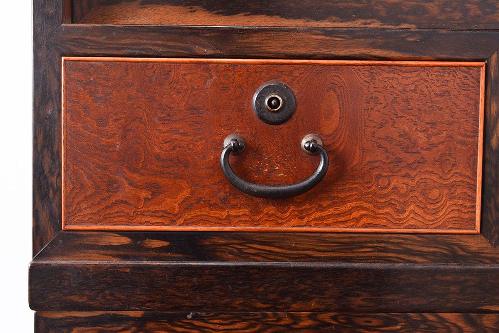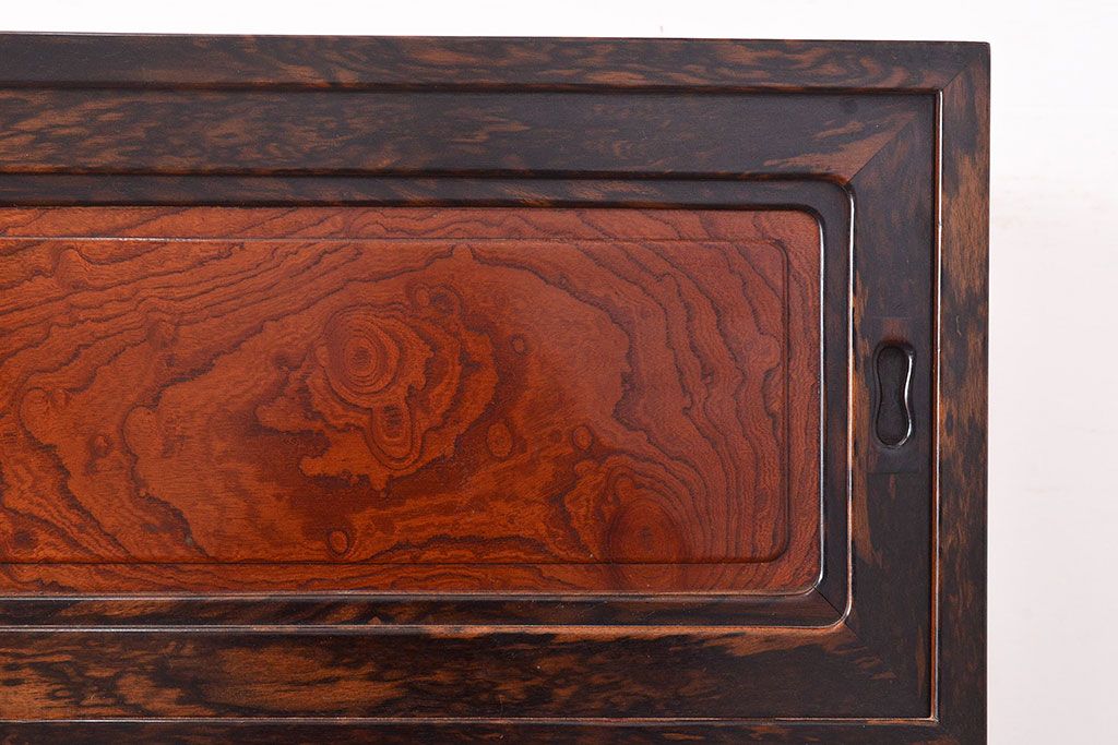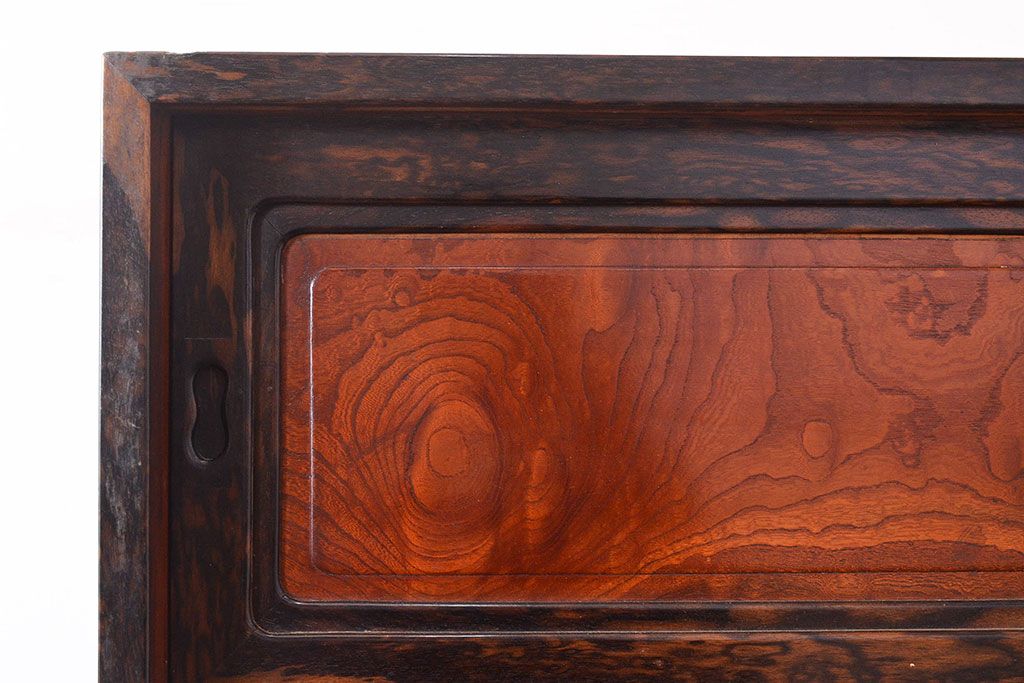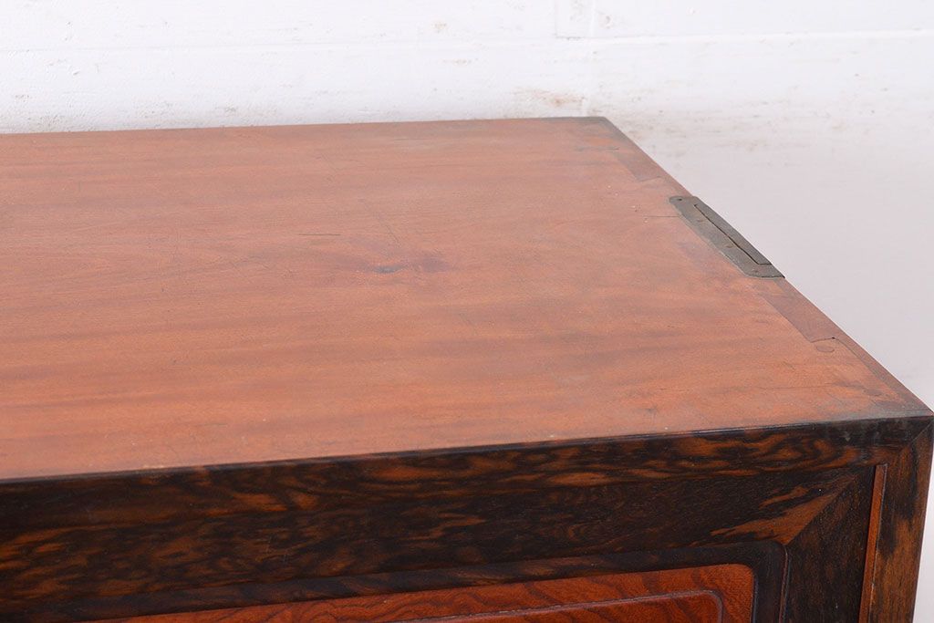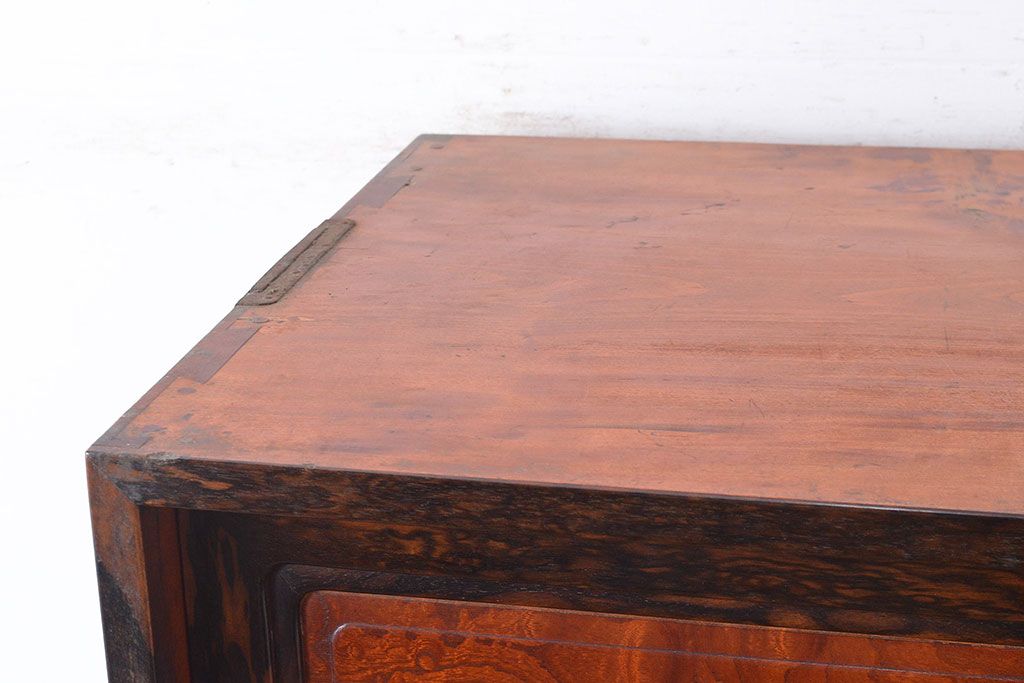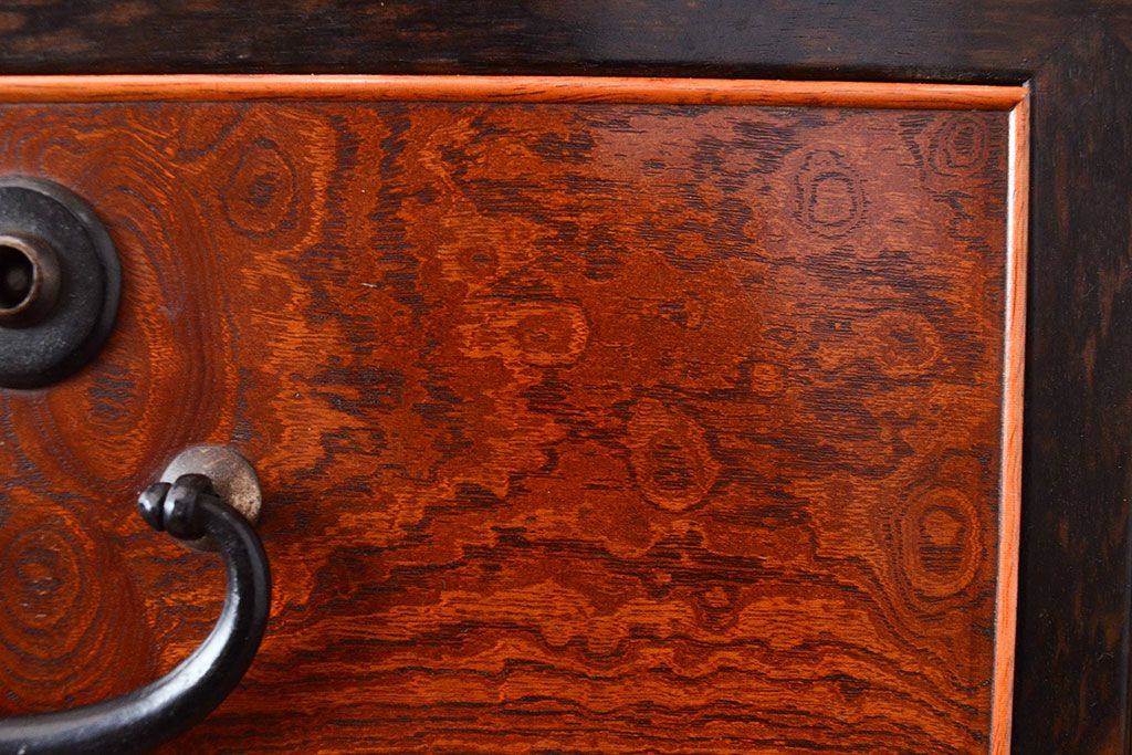 キャビネット・戸棚> テレビ台・ローボード > アンティーク 極美品 前面(黒柿孔雀杢・ケヤキ玉杢) 中(桐) 天板・側面(楠木) 漆塗り 群馬県の織物問屋から出てきました!!最高級のローボード(収納棚、テレビ台、テレビボード)(R-047347)
