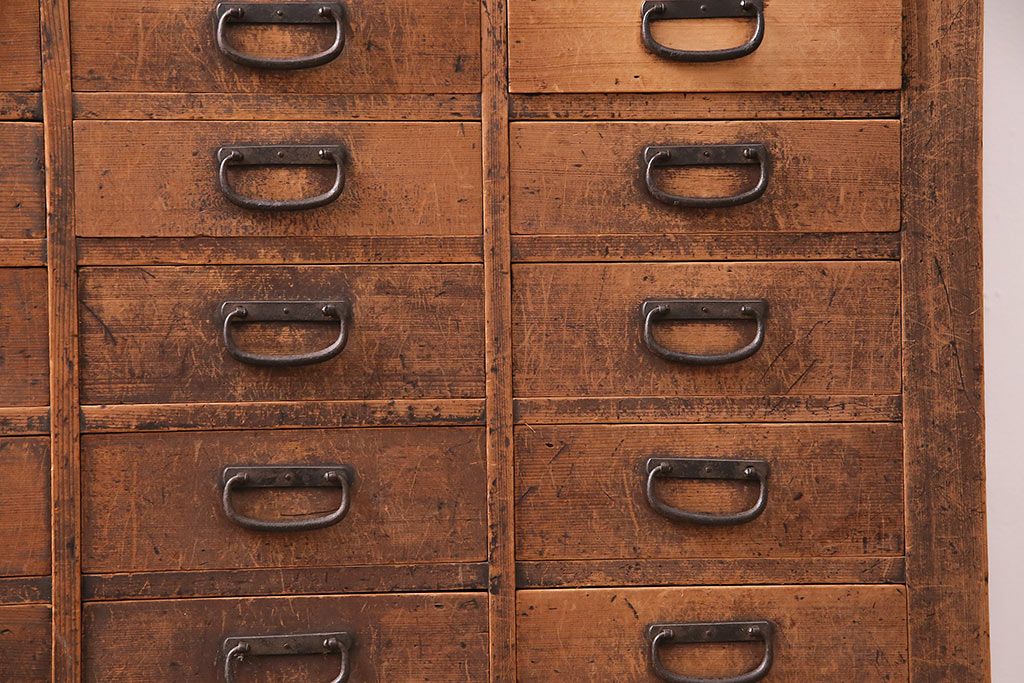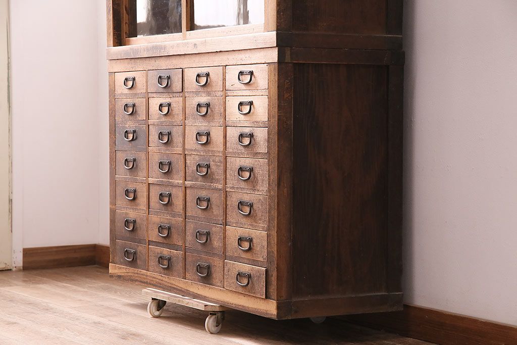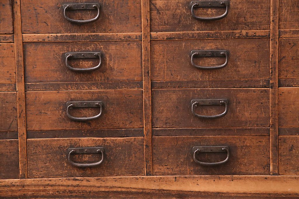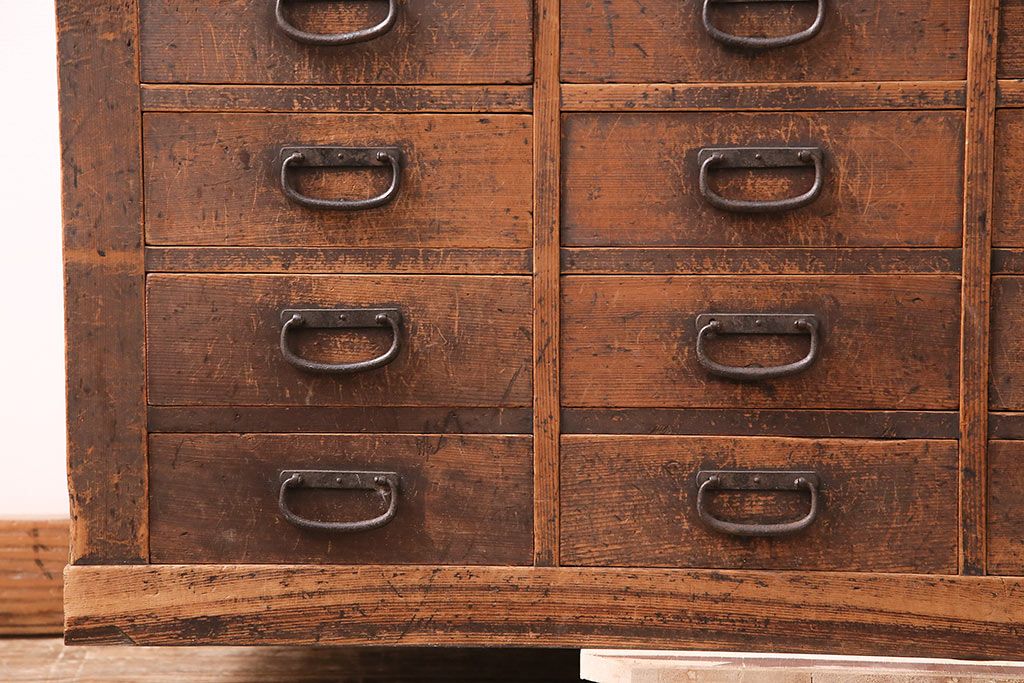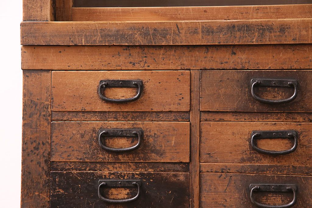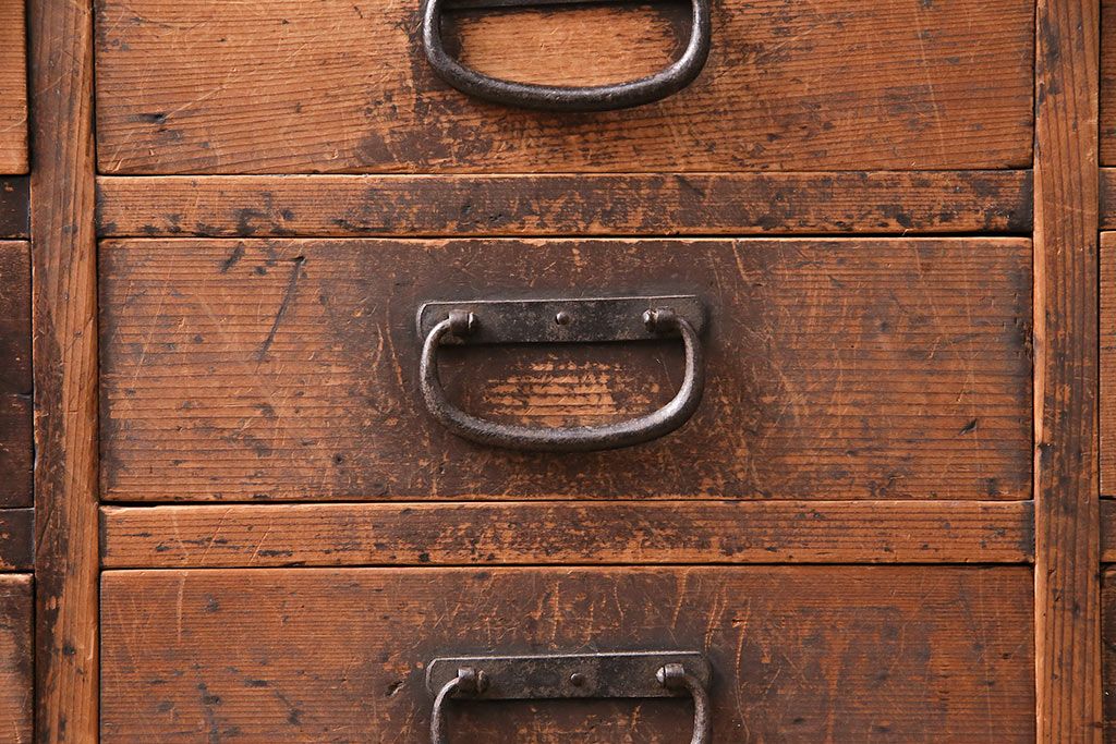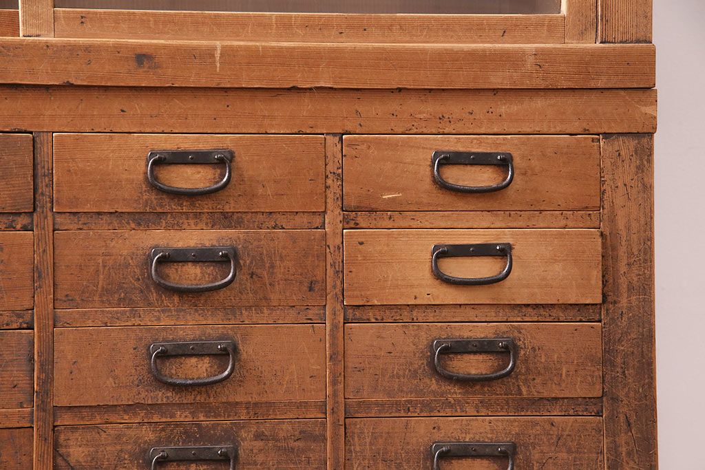 和製アンティーク ヒノキ材製 たっぷりの引き出しで収納上手に!!経年による味わいが魅力の収納棚(戸棚、キャビネット、ガラス戸棚、引き出し)(R-047896)