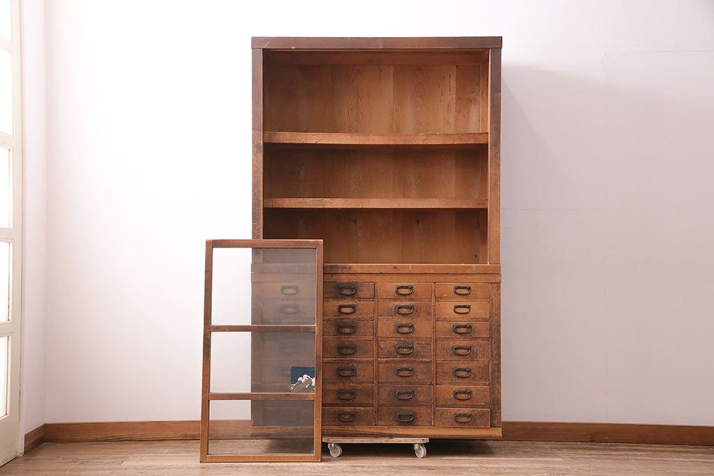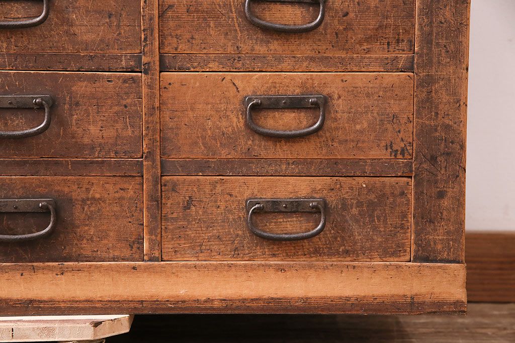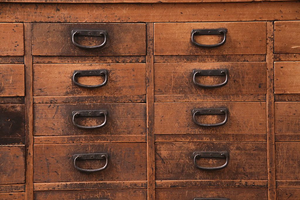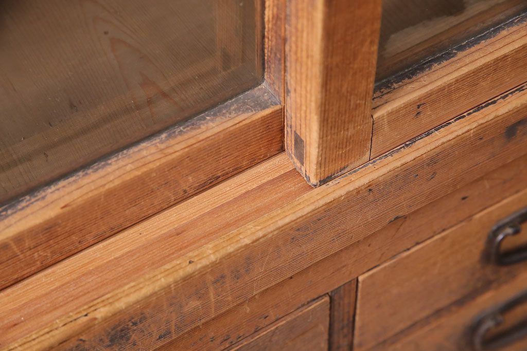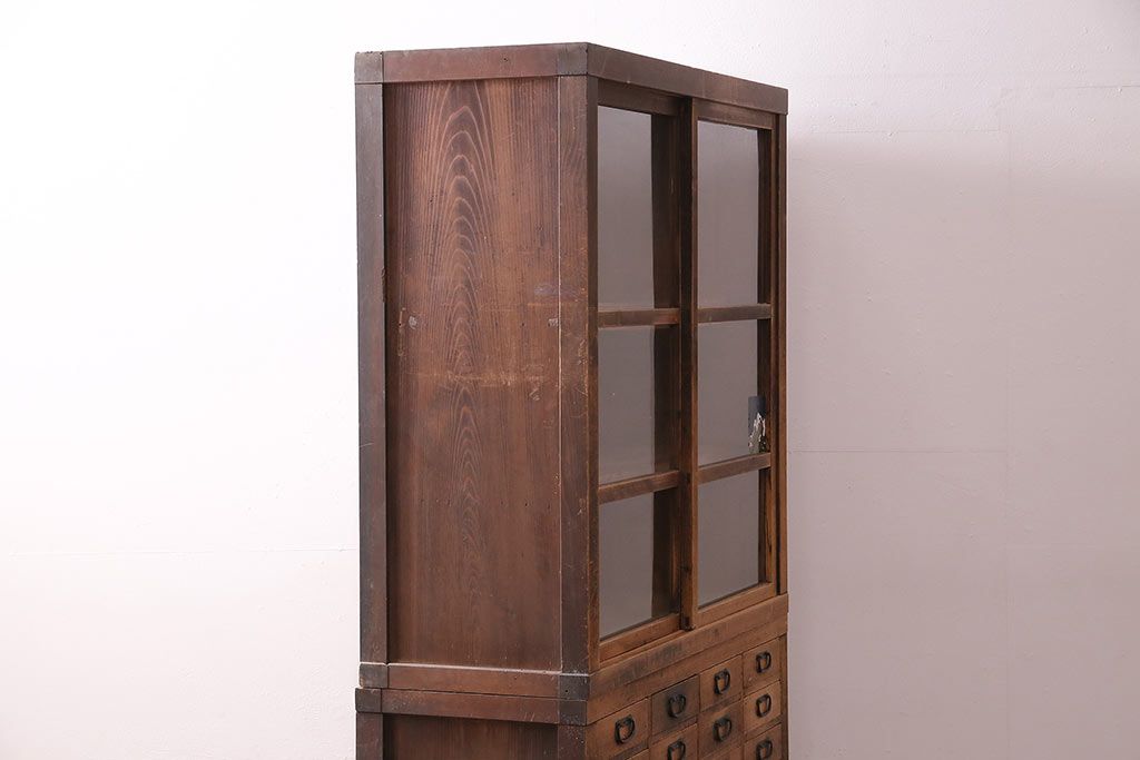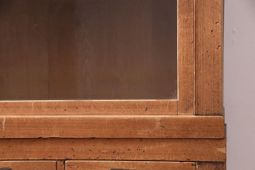 和製アンティーク ヒノキ材製 たっぷりの引き出しで収納上手に!!経年による味わいが魅力の収納棚(戸棚、キャビネット、ガラス戸棚、引き出し)(R-047896)