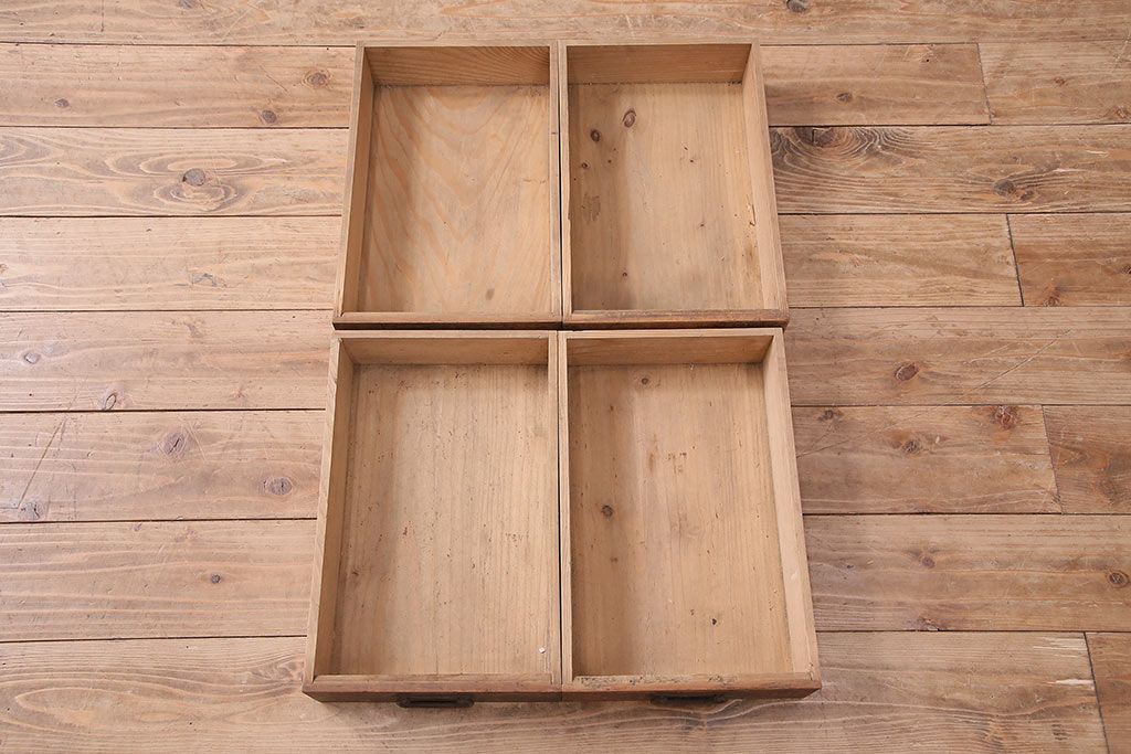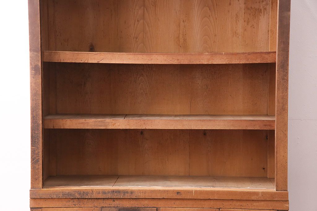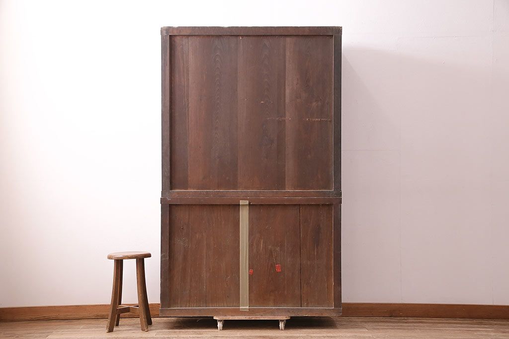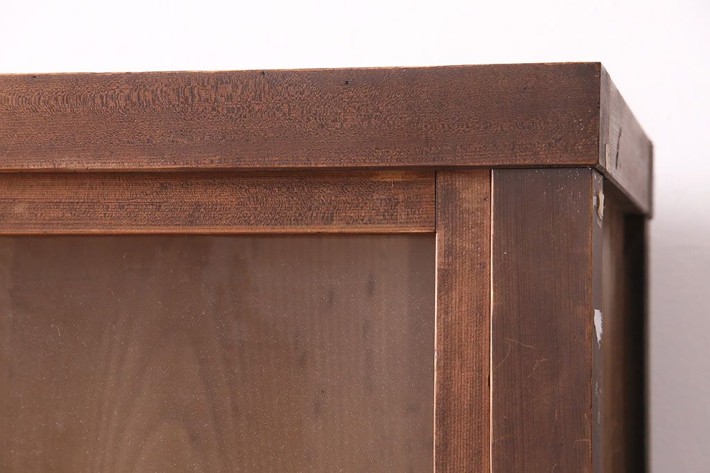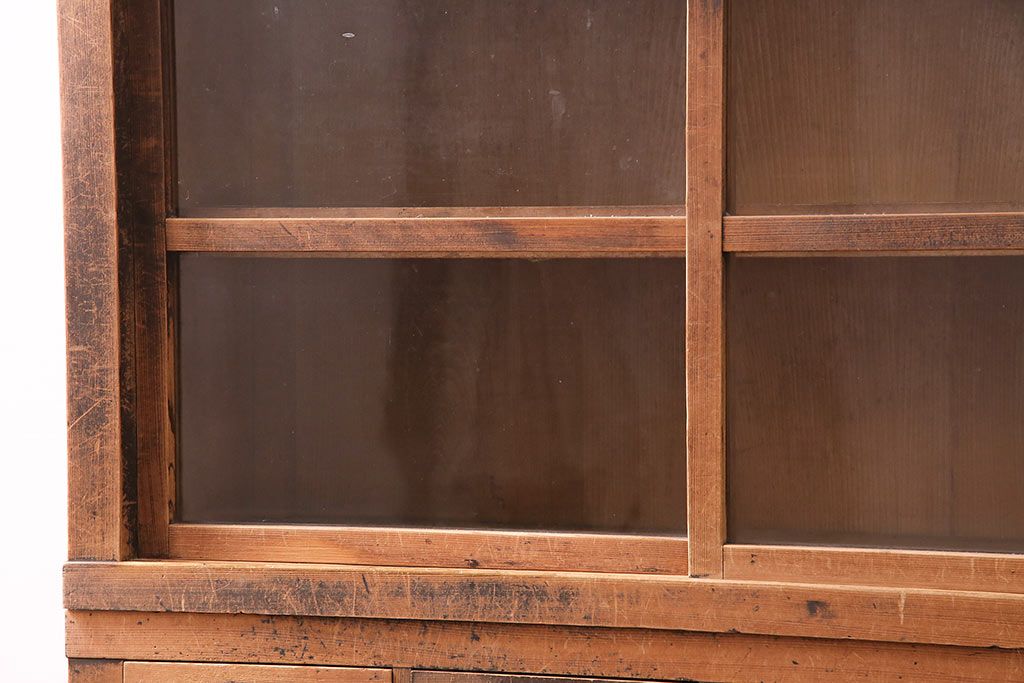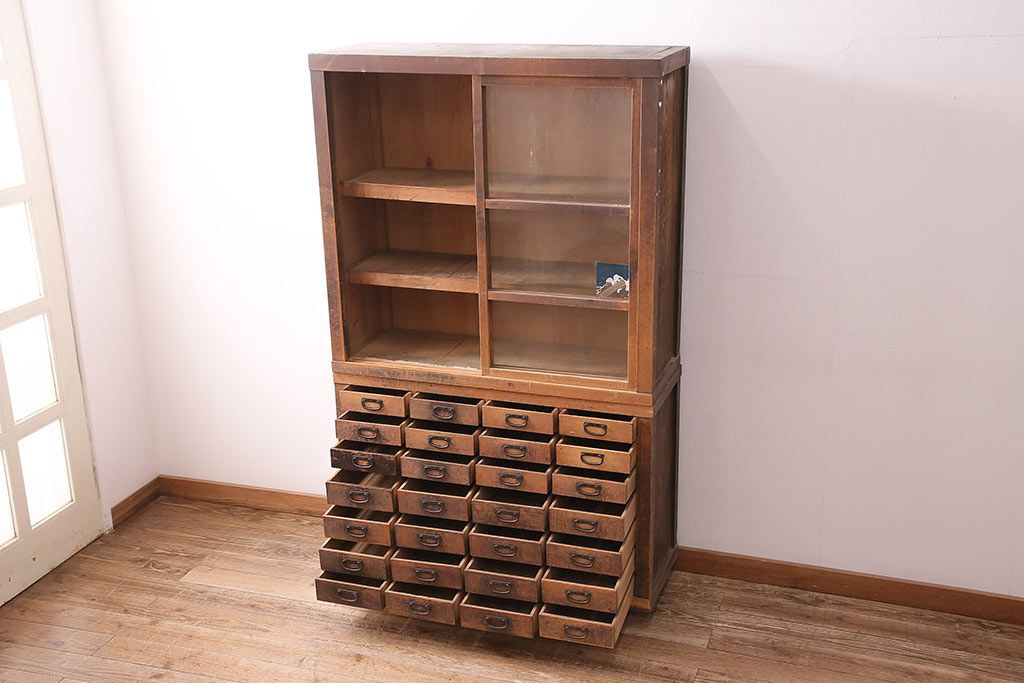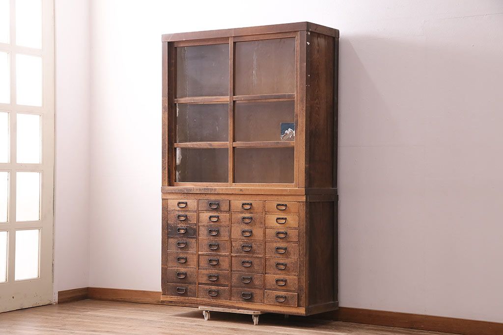 和製アンティーク ヒノキ材製 たっぷりの引き出しで収納上手に!!経年による味わいが魅力の収納棚(戸棚、キャビネット、ガラス戸棚、引き出し)(R-047896)