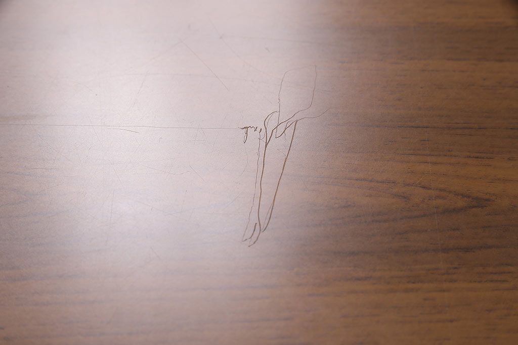 天板表面はデコラ板、中身はパーティクルボードで作られており、