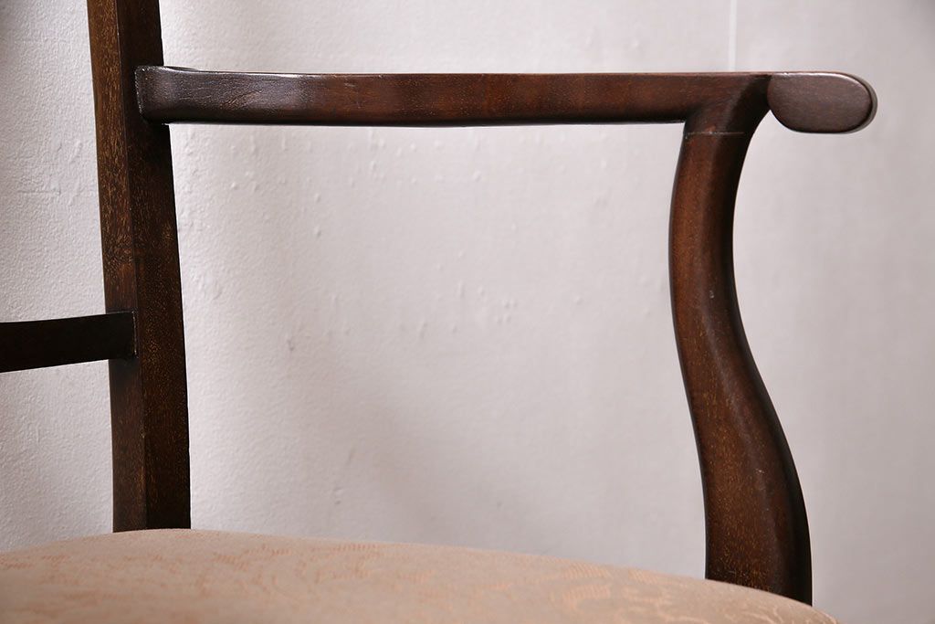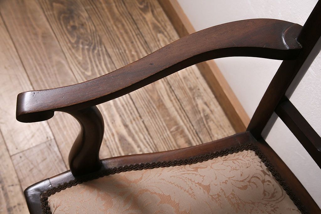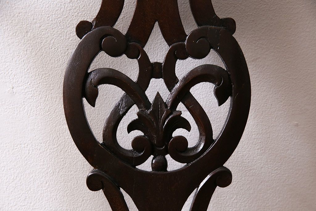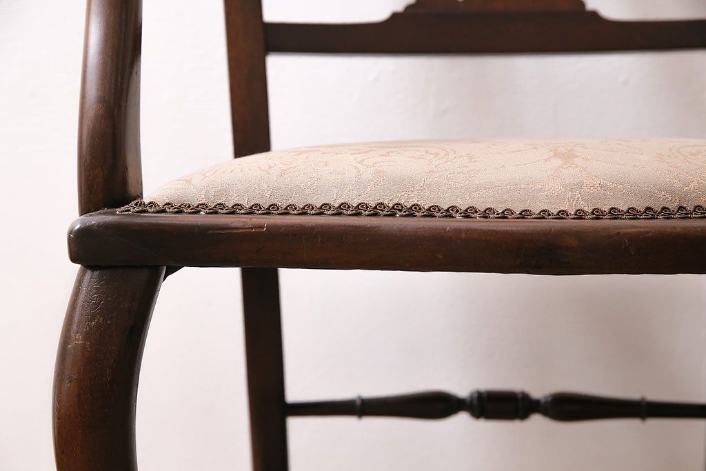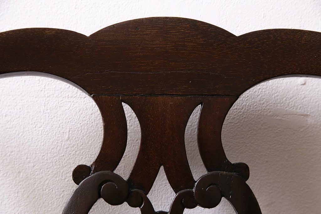 椅子・ベンチ> ダイニングチェア > フランスアンティーク マホガニー材 高級品!華奢なシルエットと背もたれの意匠が美しいチェア(サロンチェア、アームチェア、椅子)(R-047110)