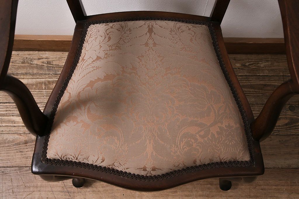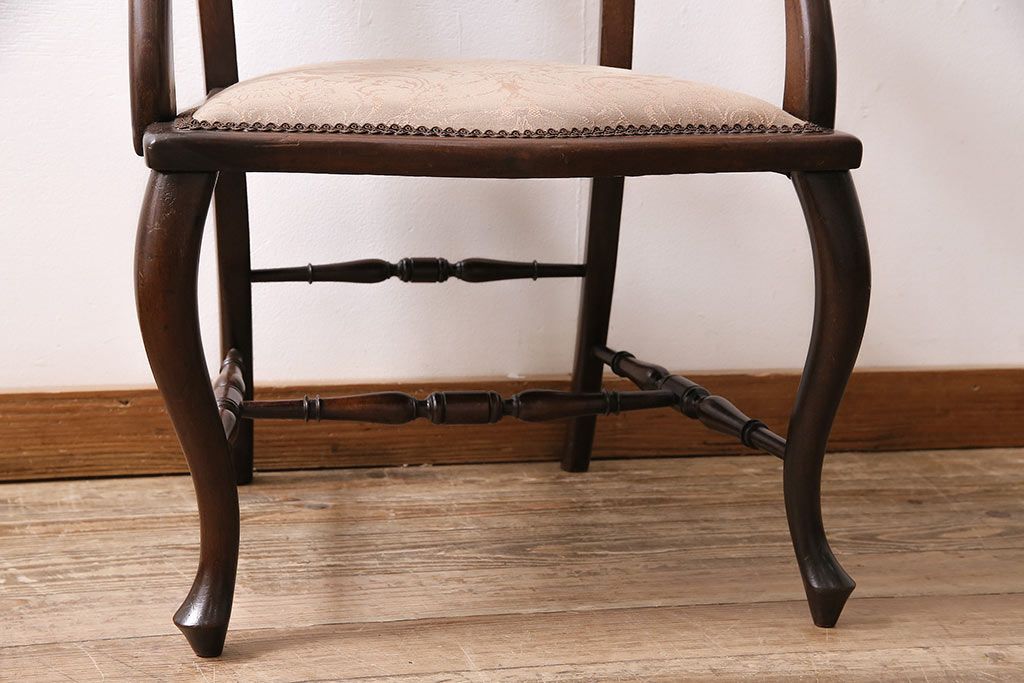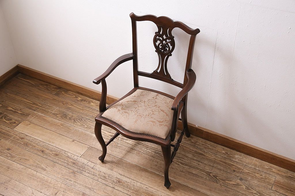 フランスアンティーク マホガニー材 高級品!華奢なシルエットと背もたれの意匠が美しいチェア(サロンチェア、アームチェア、椅子)(R-047110)です。