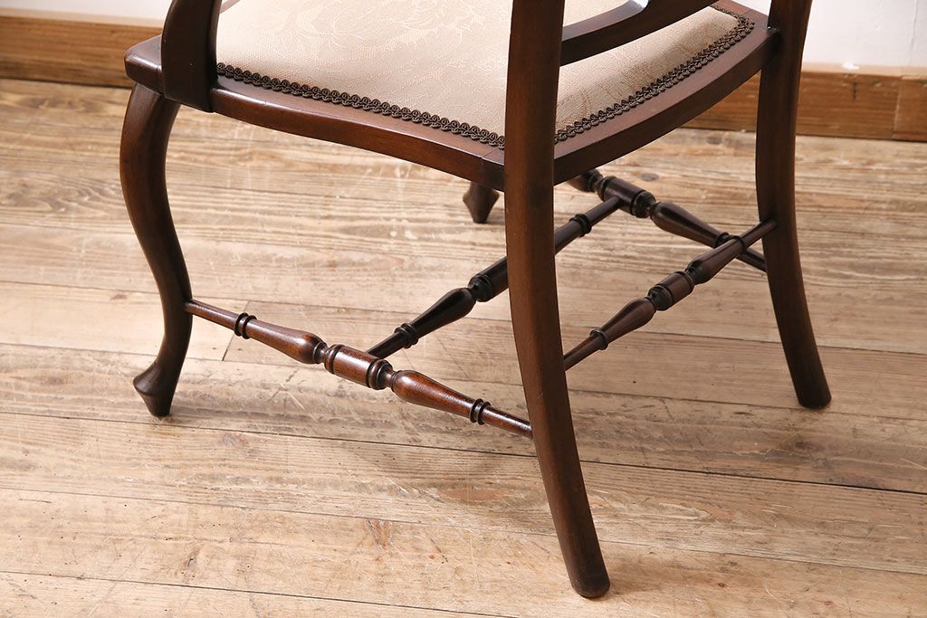 フランスアンティーク マホガニー材 高級品!華奢なシルエットと背もたれの意匠が美しいチェア(サロンチェア、アームチェア、椅子)(R-047110)