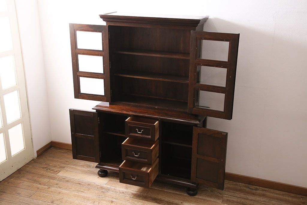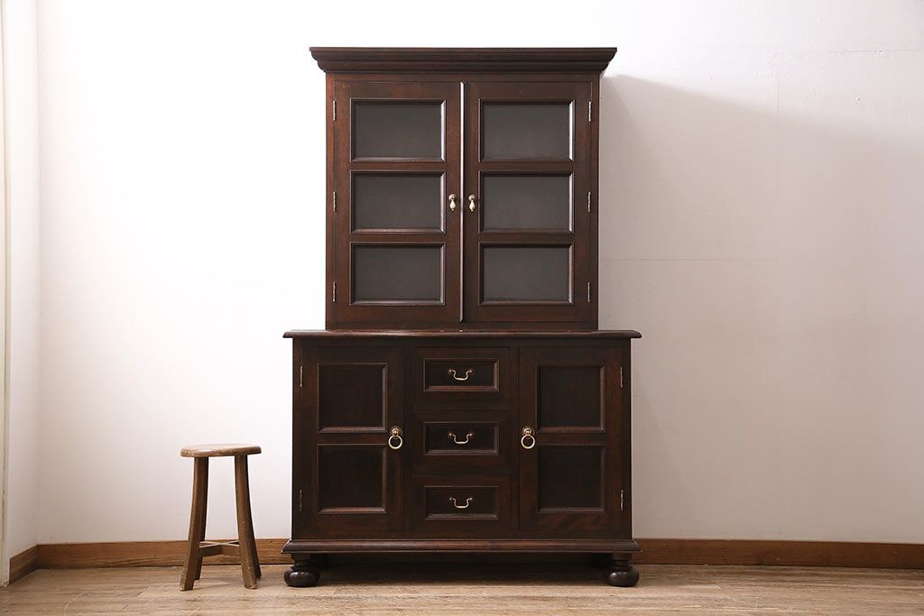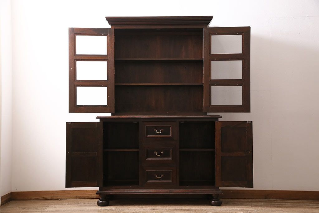 ラフジュ工房> キャビネット・戸棚> 食器棚・カップボード > 中古 松本民芸家具・310型食器棚 桜材の深みのある色合いが美しい食器棚(収納棚、キャビネット)(R-047146)