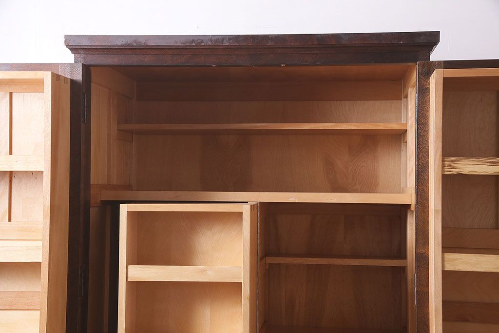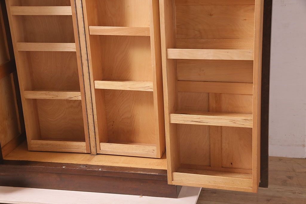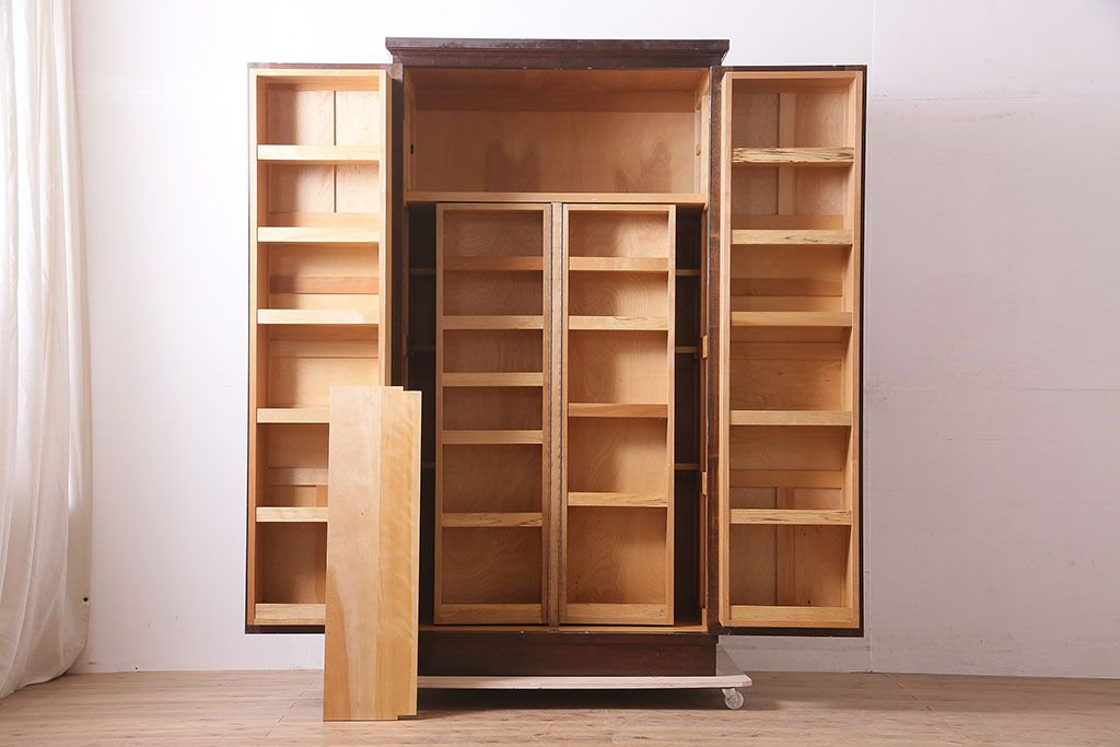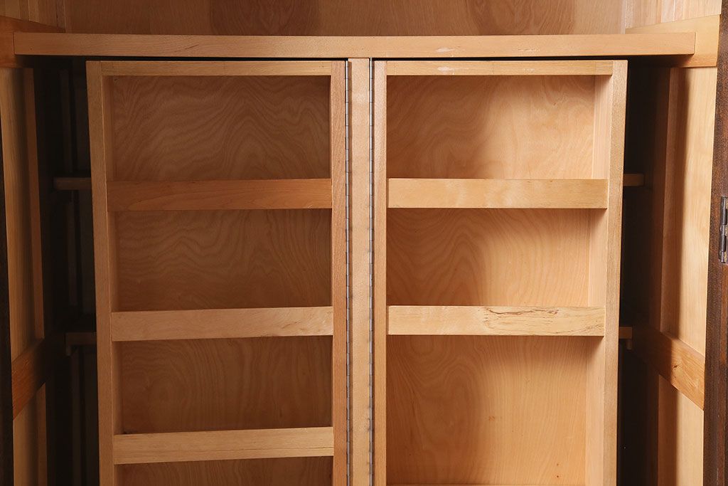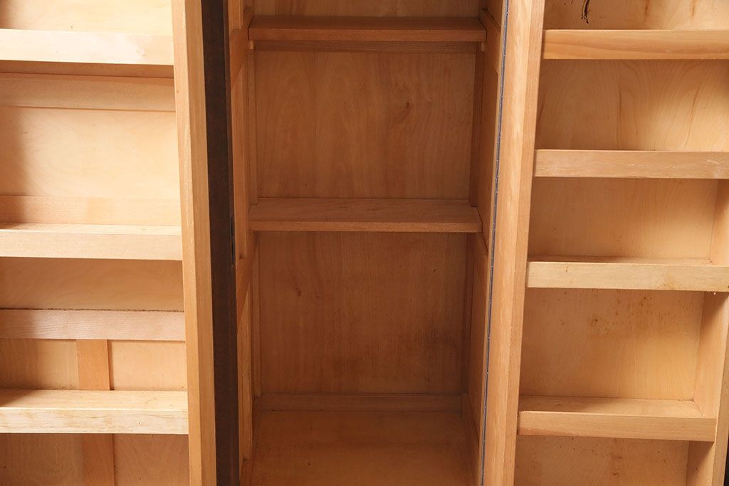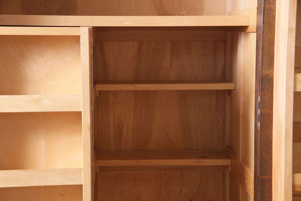 中古 松本民芸家具 食品収納庫I型 可動式の棚が珍しい!パントリーのように使える収納力抜群なキャビネット(食器棚、収納棚)(定価約110万円)(R-046934)です。