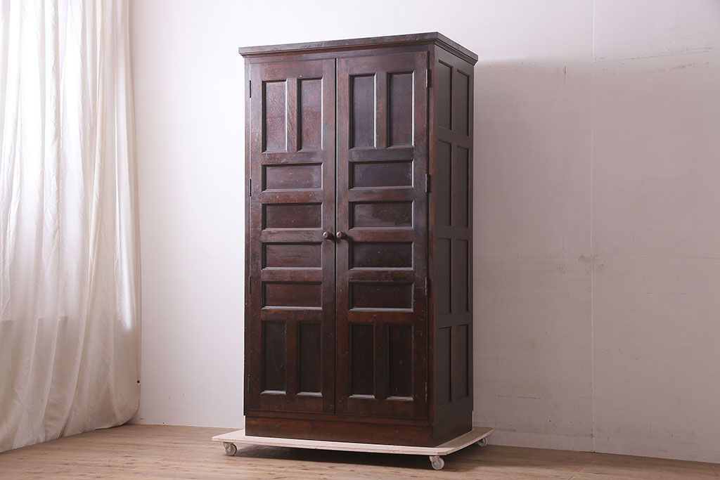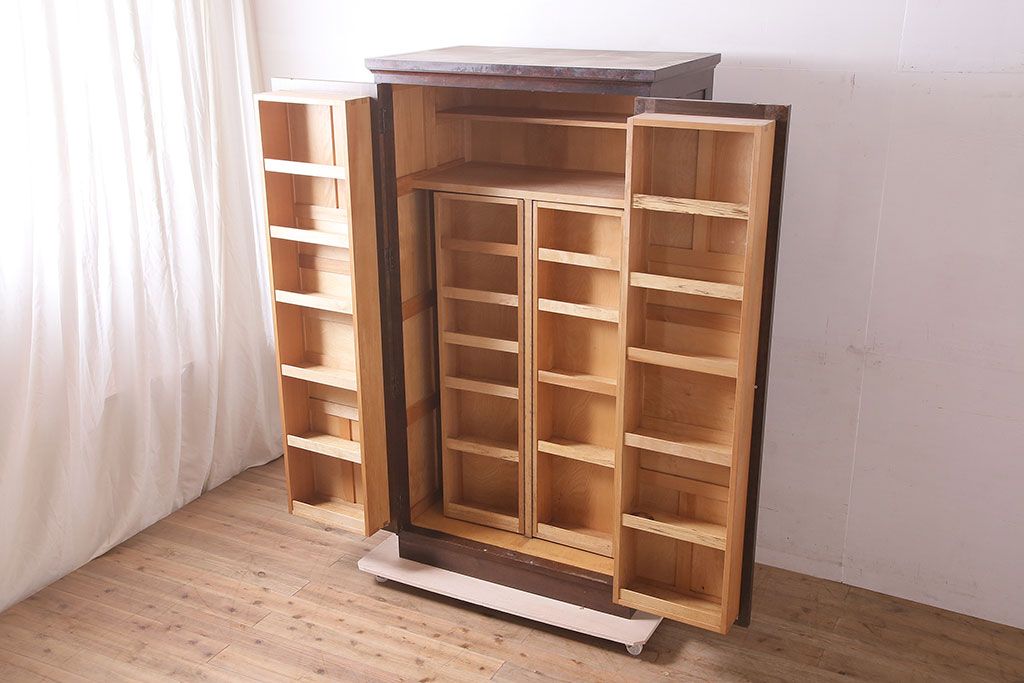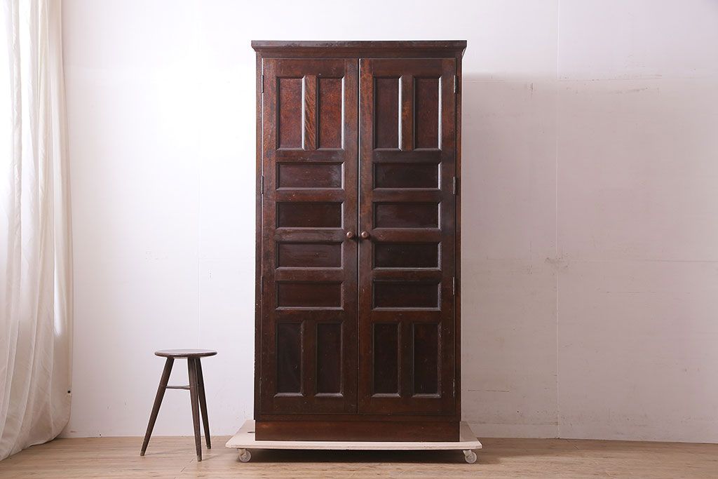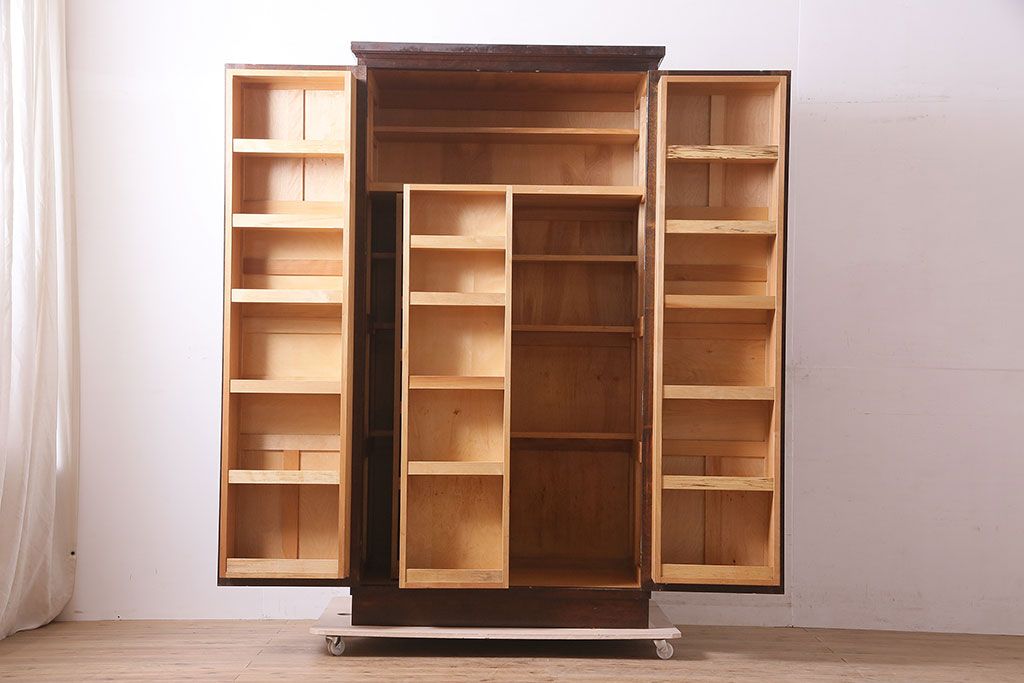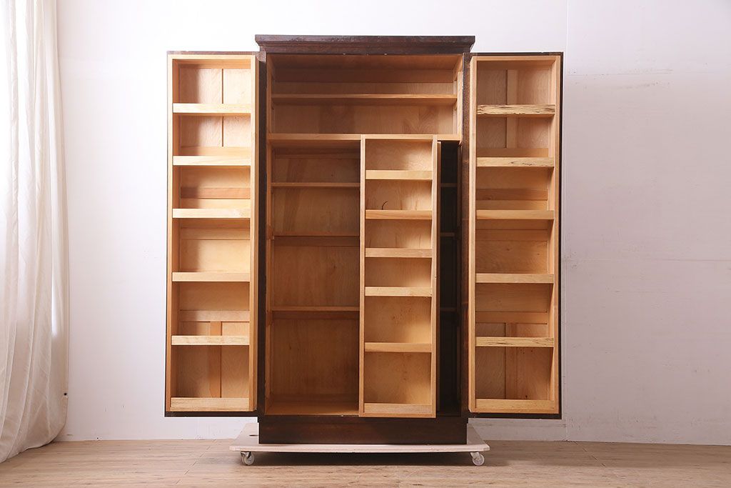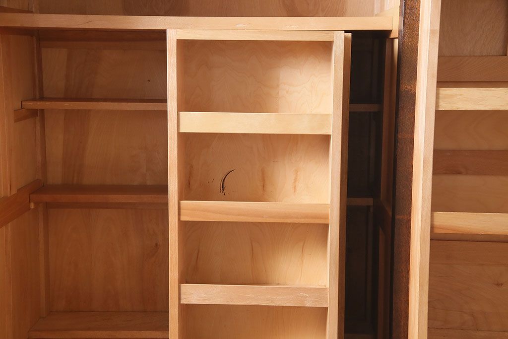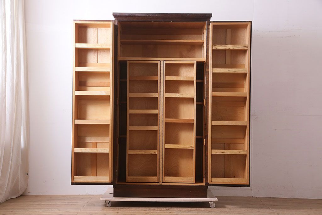 中古 松本民芸家具 食品収納庫I型 可動式の棚が珍しい!パントリーのように使える収納力抜群なキャビネット(食器棚、収納棚)(定価約110万円)(R-046934)です。