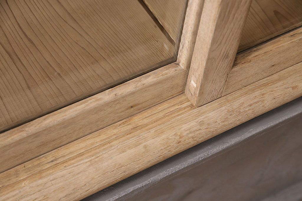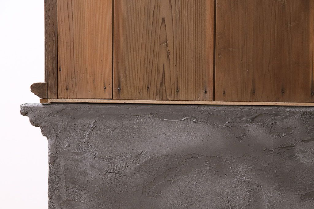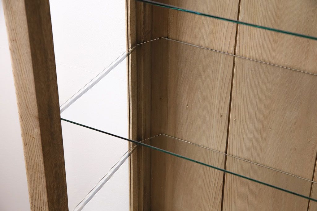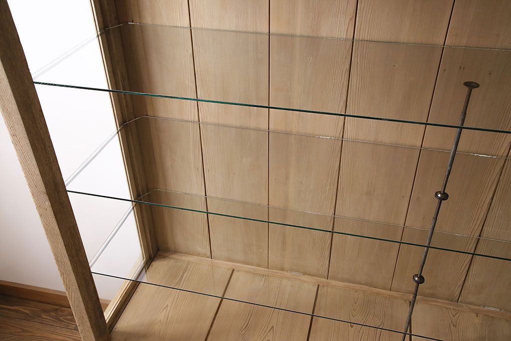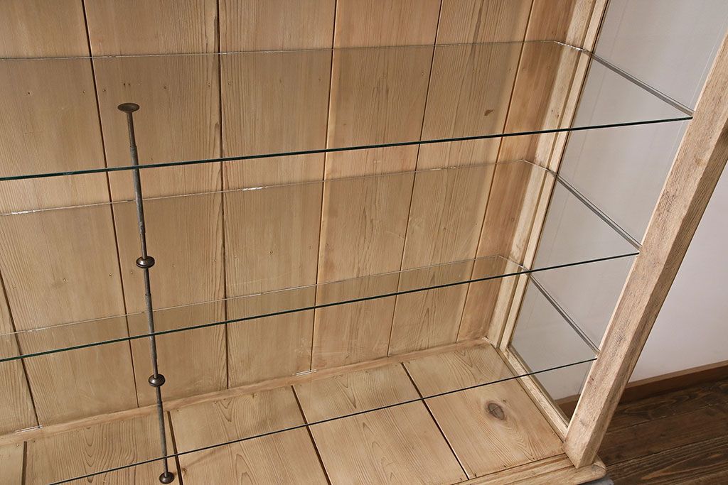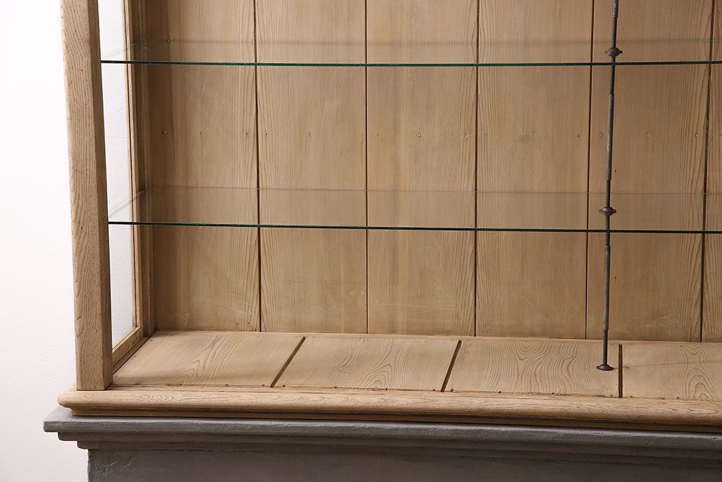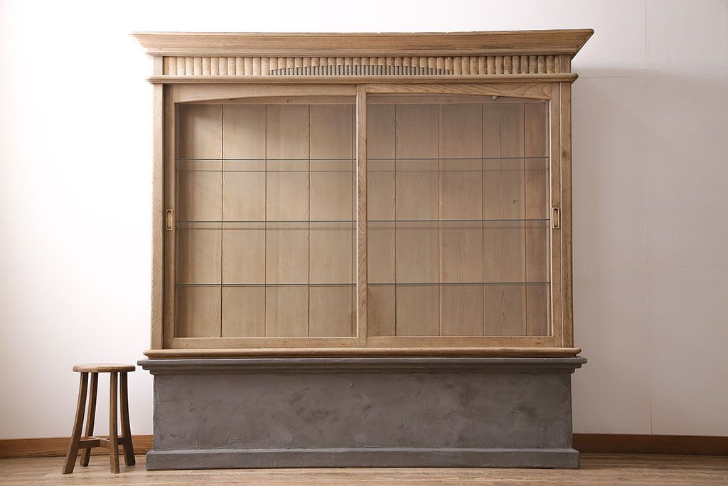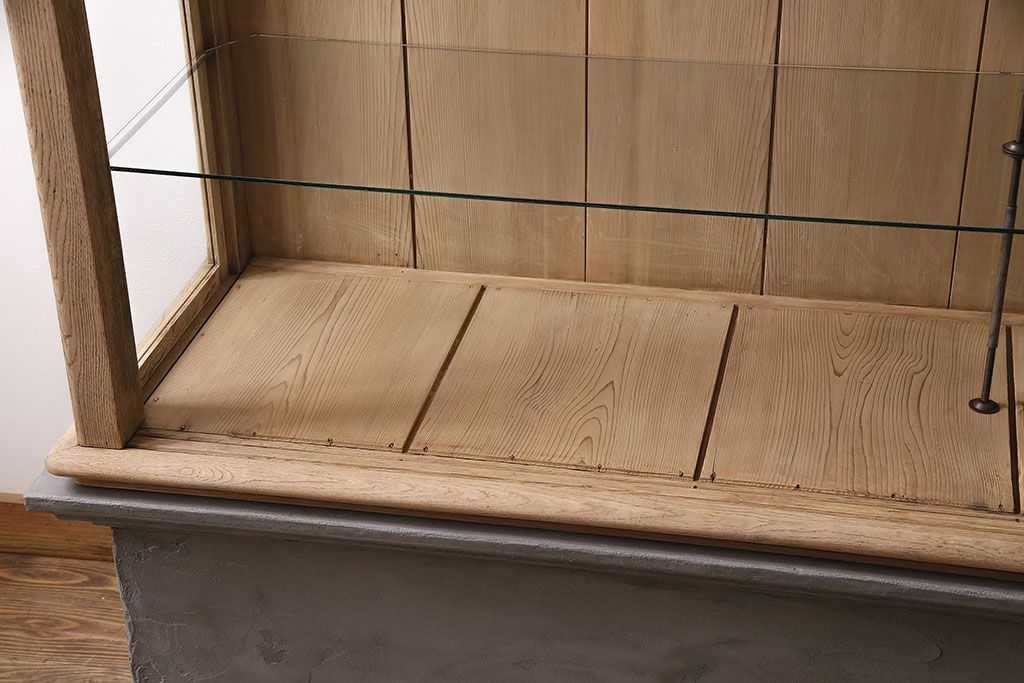 ストリップド(剥離)家具 > 特大ガラスケースをリペア&カスタム!ストリップド(剥離)加工。棚板をガラス製へ変更。モルタルで土台を製作。(ショーケース、陳列棚)