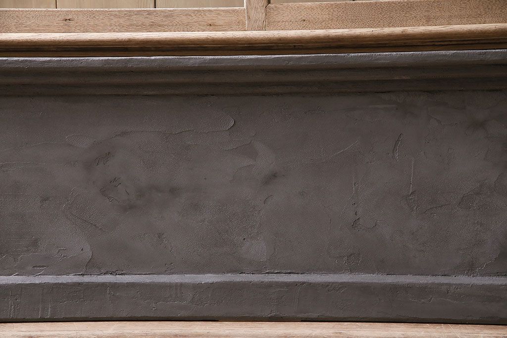 セミオーダー家具実績 > 特大ガラスケースをリペア&カスタム!ストリップド(剥離)加工。棚板をガラス製へ変更。モルタルで土台を製作。(ショーケース、陳列棚)