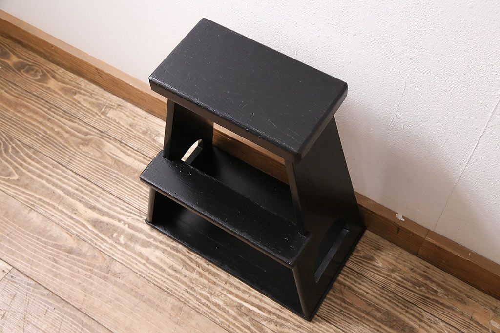 和製アンティーク 当店でペイントを施したかっこ良い佇まいの踏み台(ステップ、飾り台、花台)(R-047237)です。