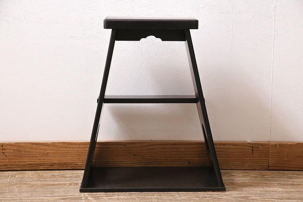和製アンティーク 当店でペイントを施したかっこ良い佇まいの踏み台(ステップ、飾り台、花台)(R-047237)