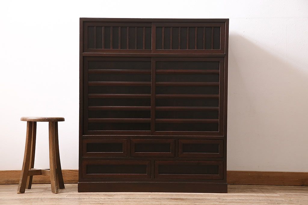 和箪笥 > 中古 赤みがかった木肌が上品な民芸家具の戸棚(茶棚、水屋箪笥、松本民芸家具)(R-047238)