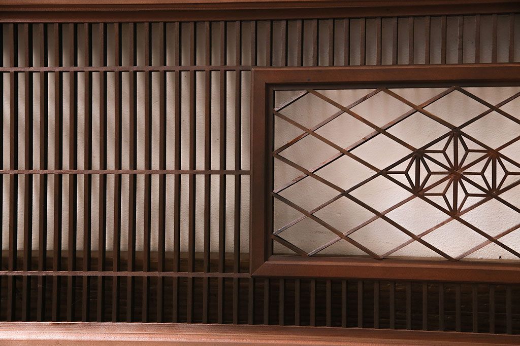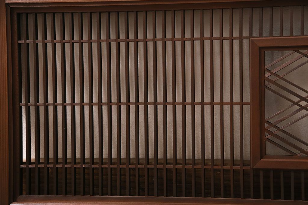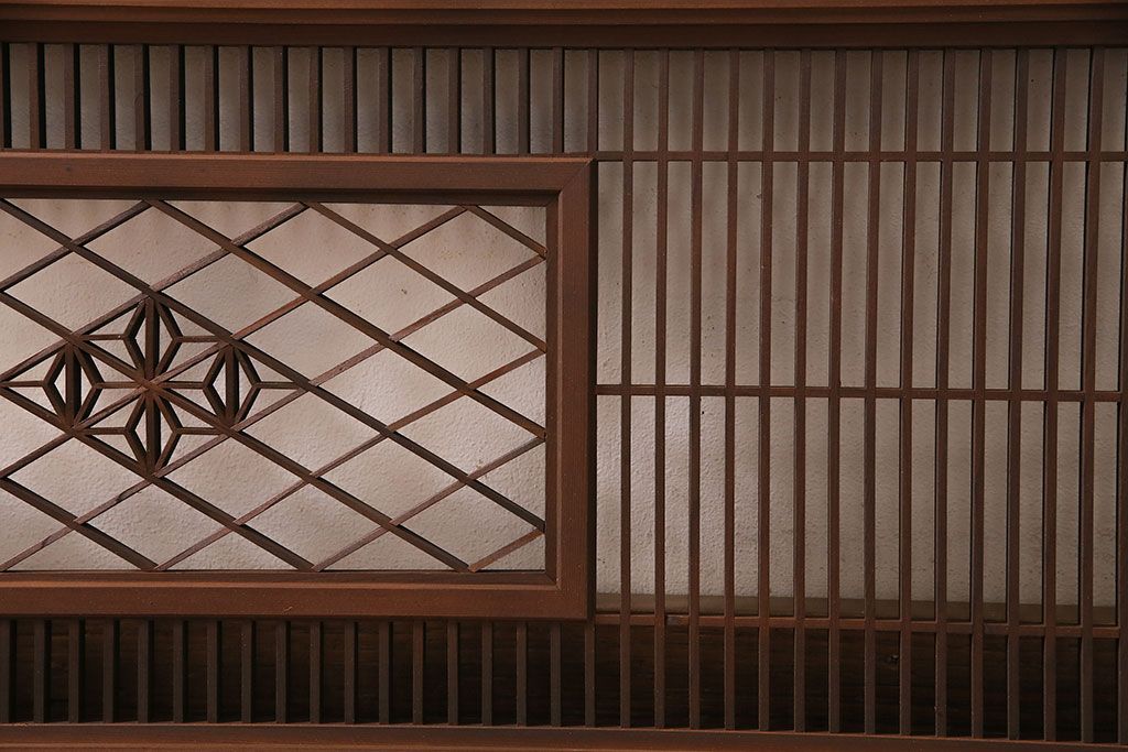 アンティーク建具 繊細に並んだ細い桟に組子が映える筬欄間(オサランマ、明り取り、建具)(R-047256)