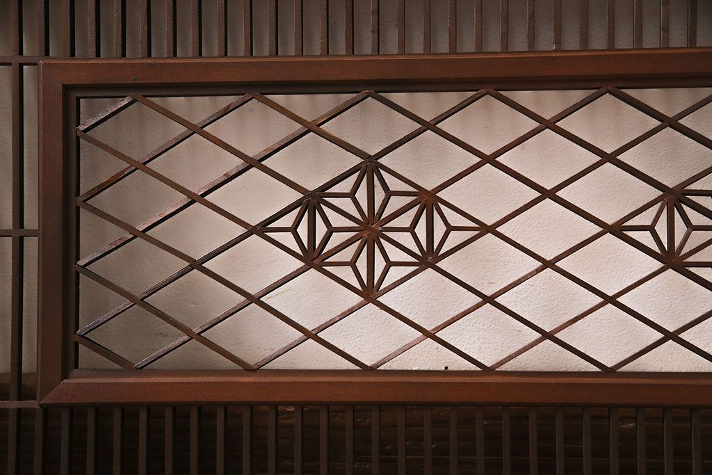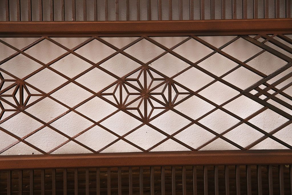 アンティーク建具 繊細に並んだ細い桟に組子が映える筬欄間(オサランマ、明り取り、建具)(R-047256)です。