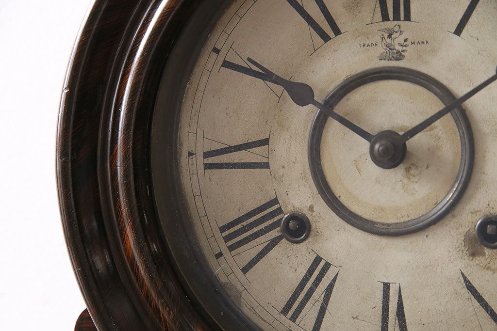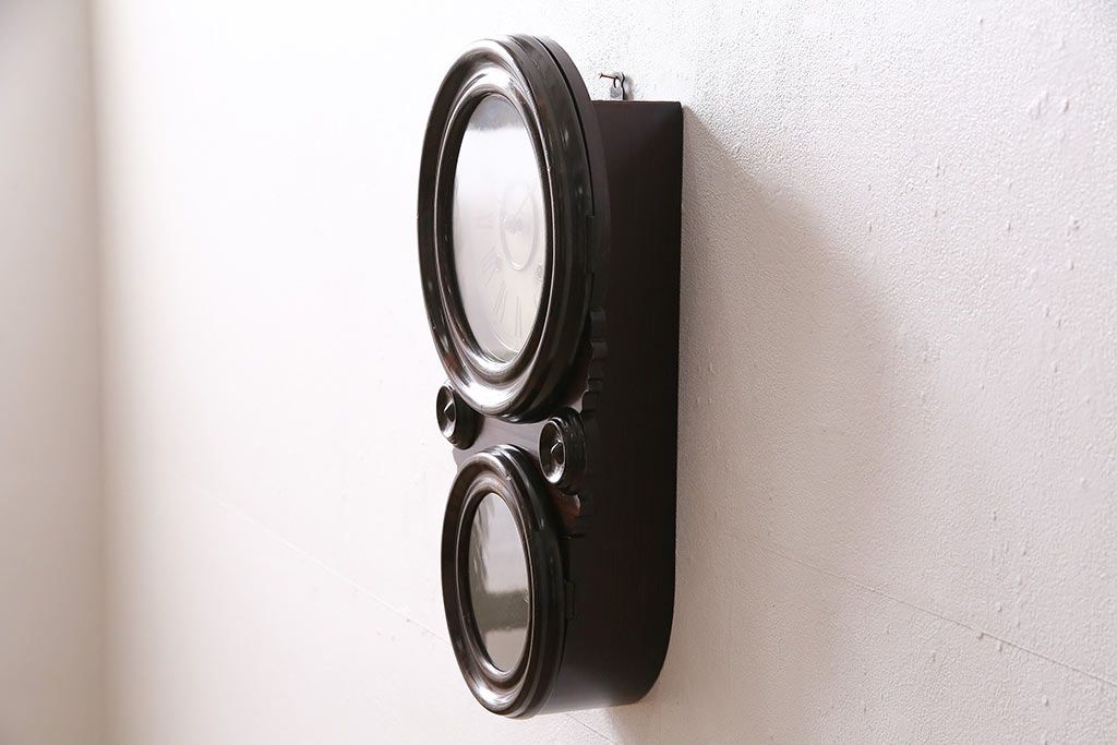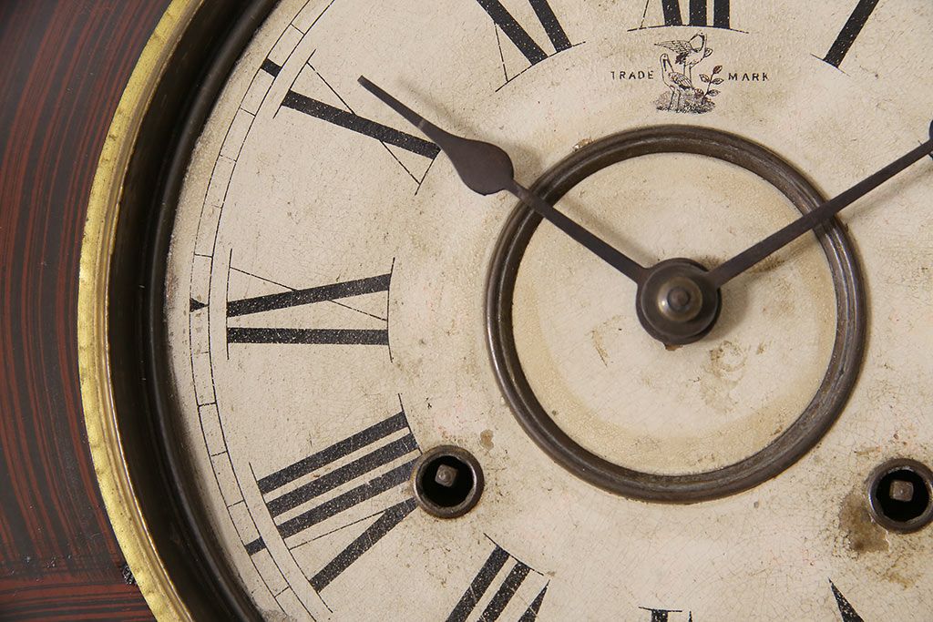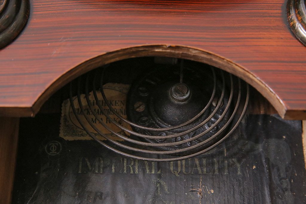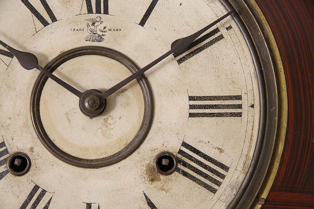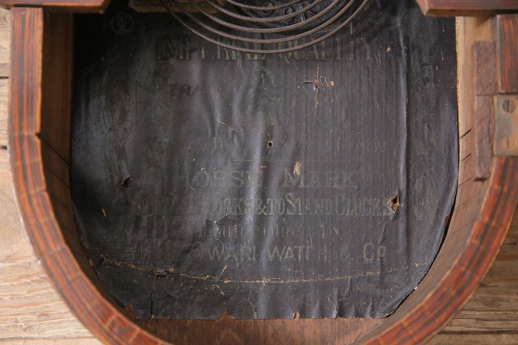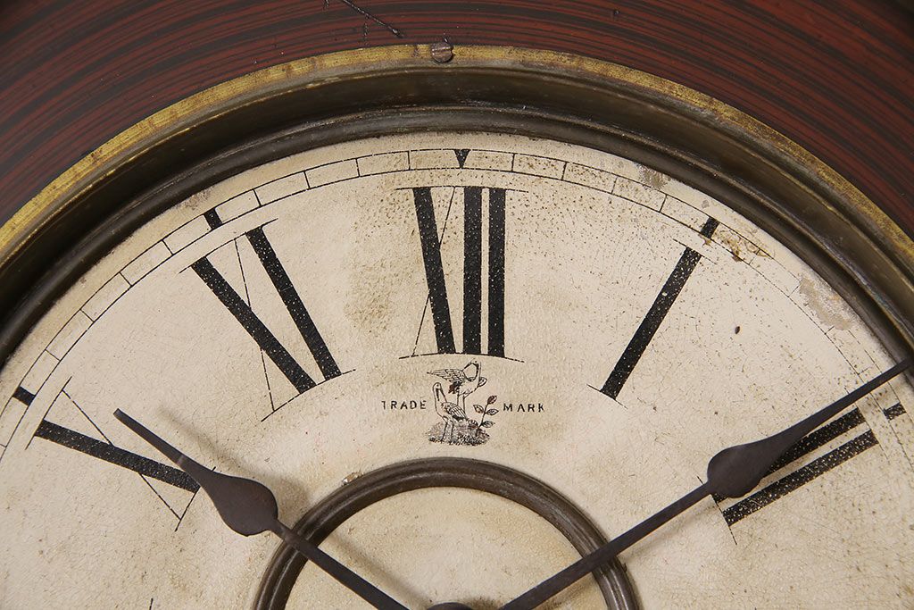 アンティーク時計 ホースマーク マーブル模様の木目が味わい深い!四つ丸が特徴のゼンマイ式だるま時計(掛時計、柱時計、振り子時計)(R-047247)