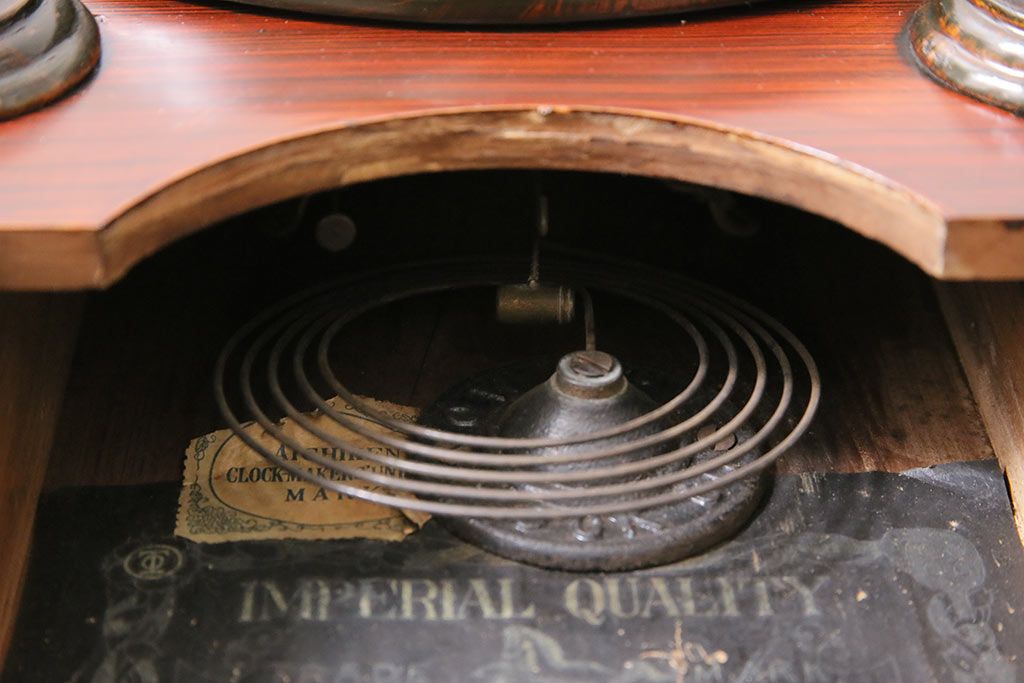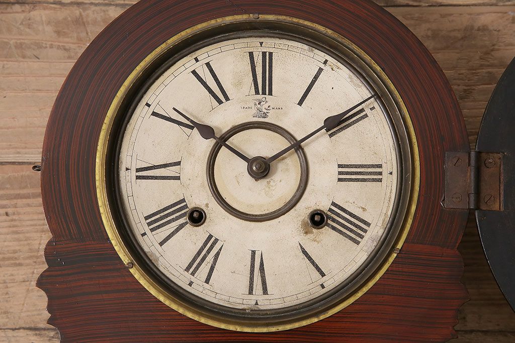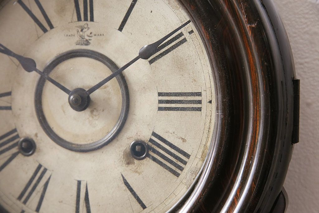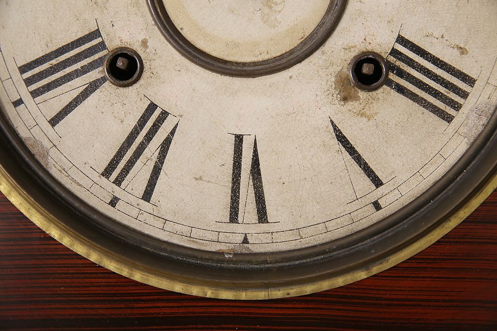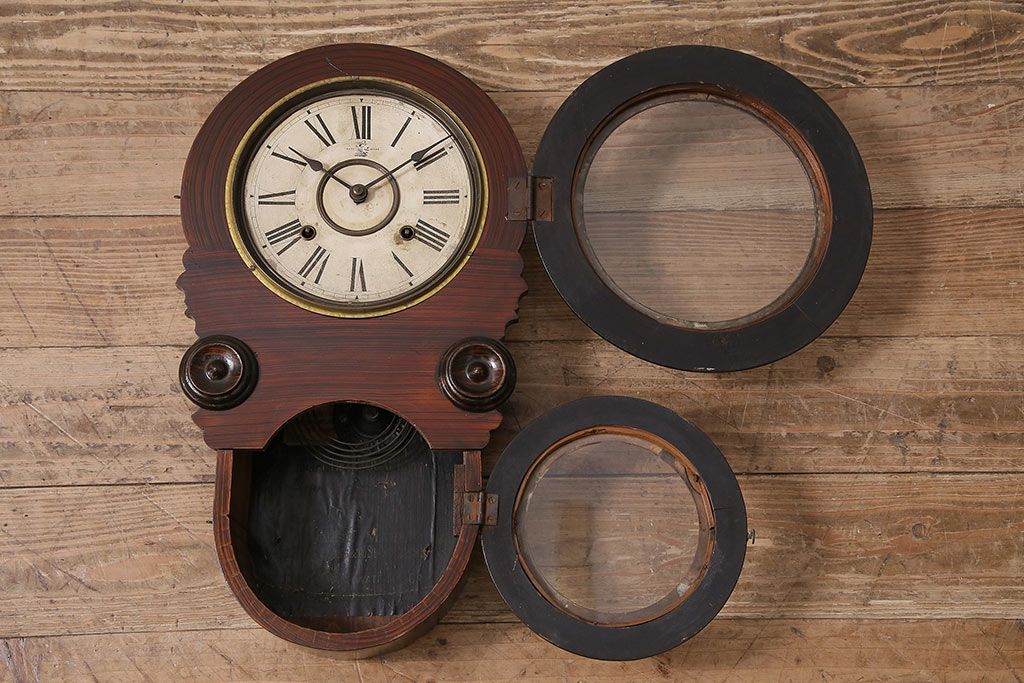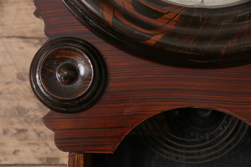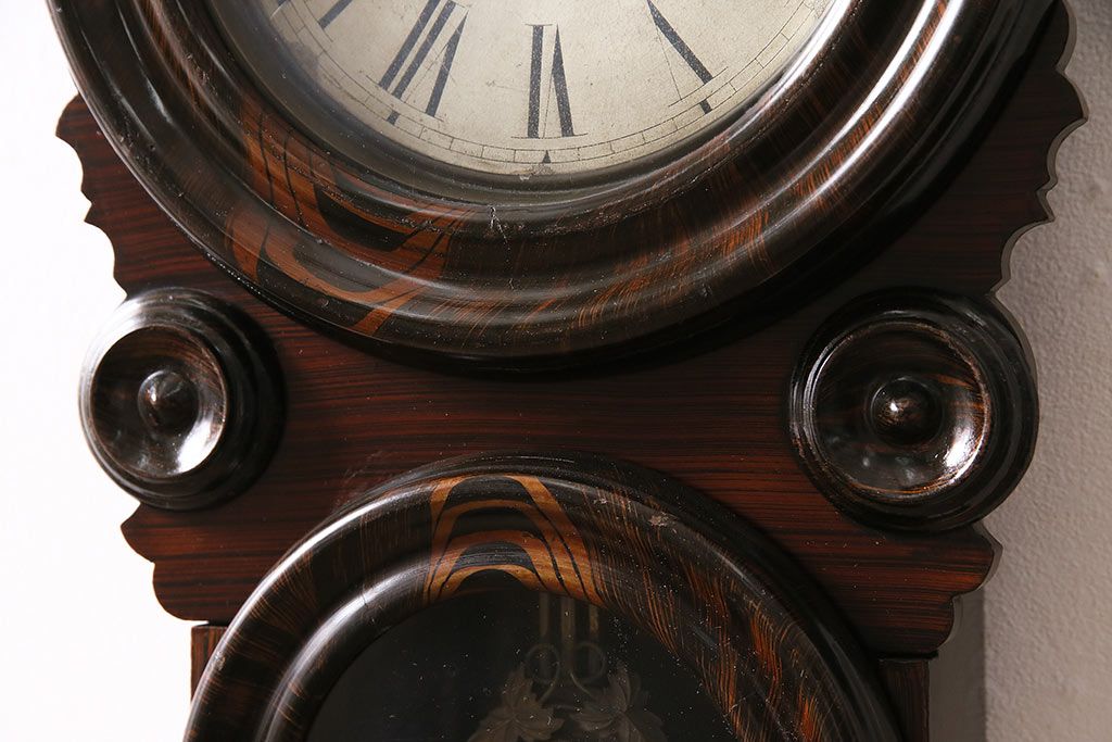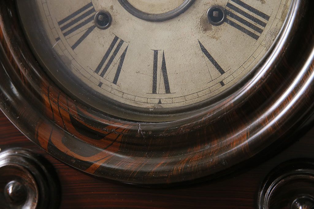 時計> 掛け時計 > アンティーク時計 ホースマーク マーブル模様の木目が味わい深い!四つ丸が特徴のゼンマイ式だるま時計(掛時計、柱時計、振り子時計)(R-047247)