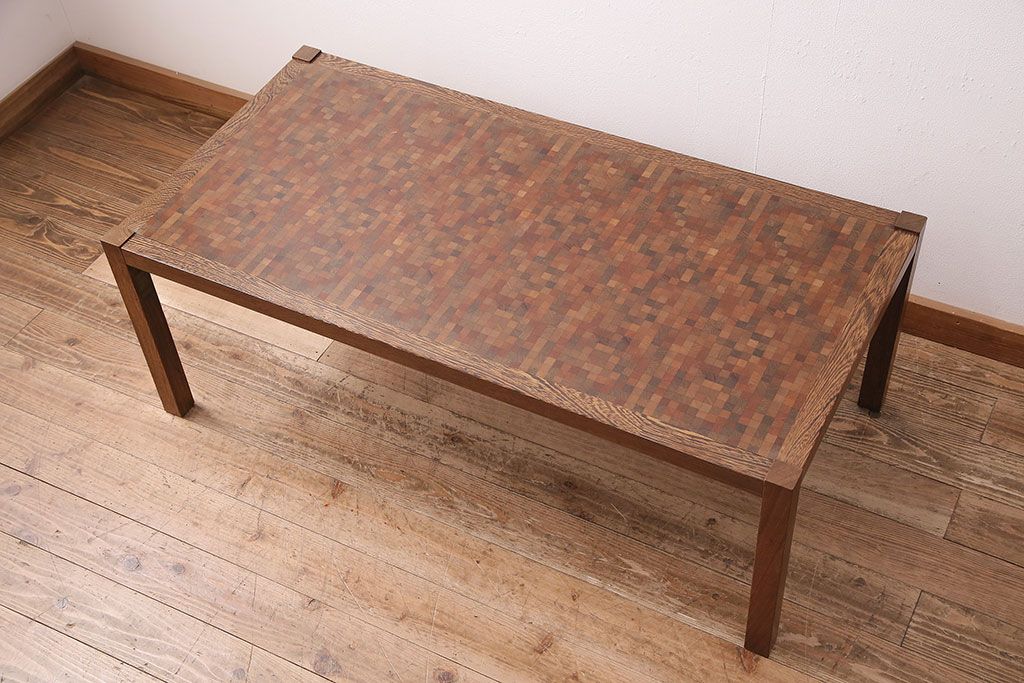 北欧ヴィンテージ デンマーク製 TRANEKAER DENMARK(トラネケア社) Rolf Middelboe(ロルフ・ミドルボー) ローズウッド材 アート作品のように美しいパーケット天板のセンターテーブル(ローテーブル、寄木細工、ビンテージ)(R-047974)