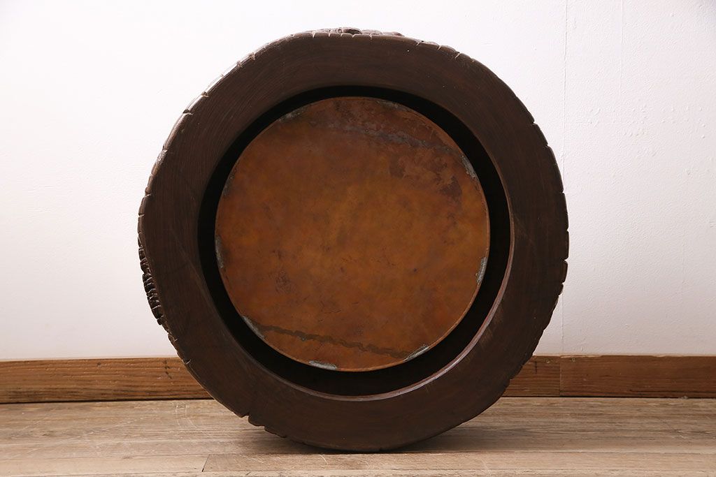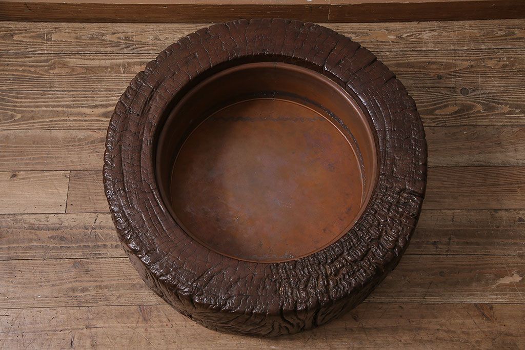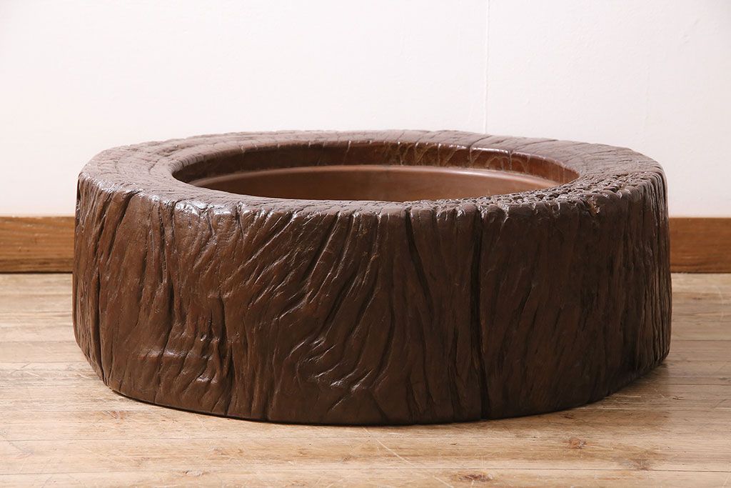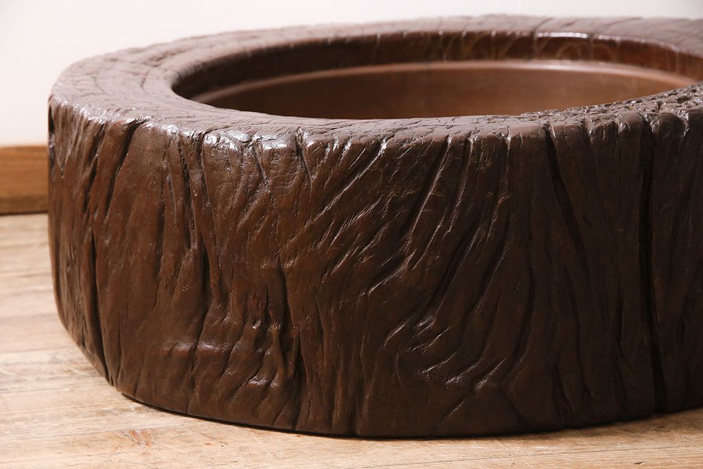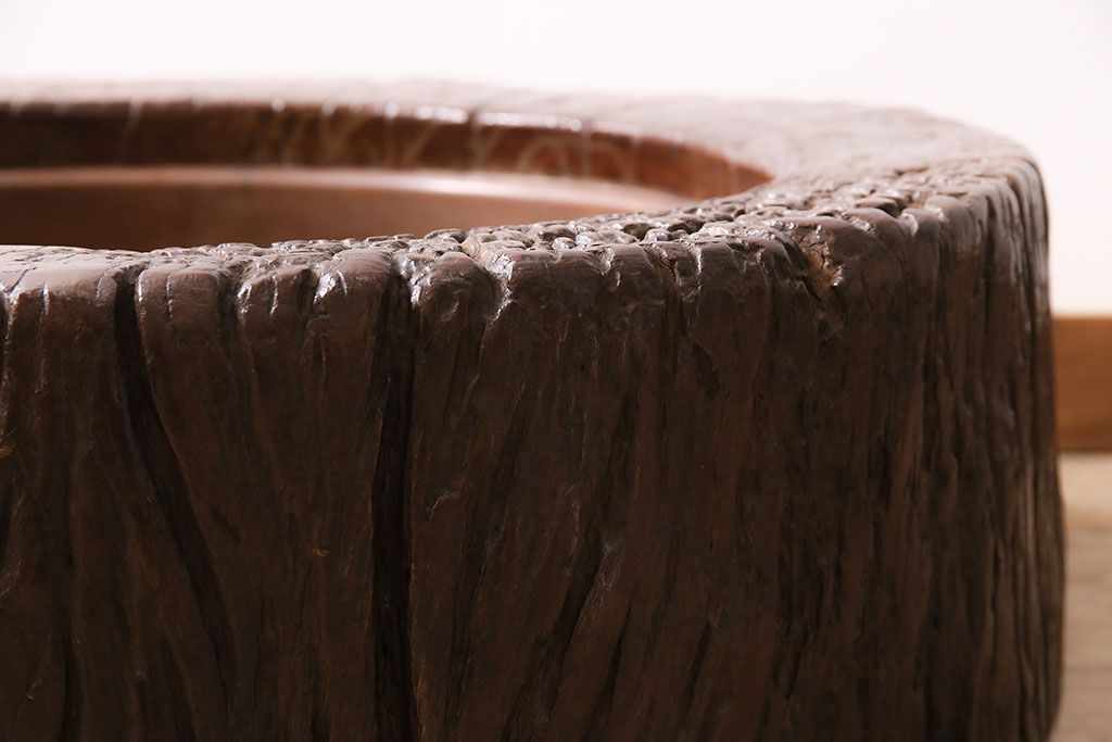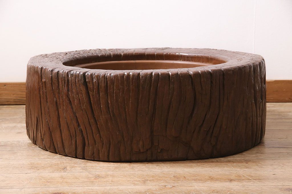 火鉢> 木製火鉢 > アンティーク雑貨 総ケヤキ材 経年による独特の風合いがお楽しみいただけるくり貫き火鉢(くりぬき火鉢、鉢カバー)(R-047270)