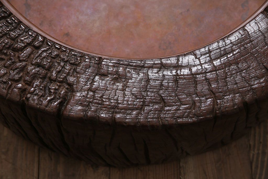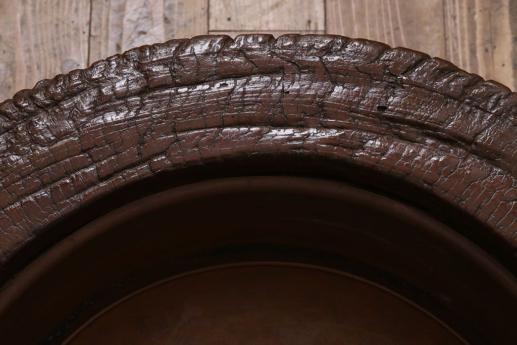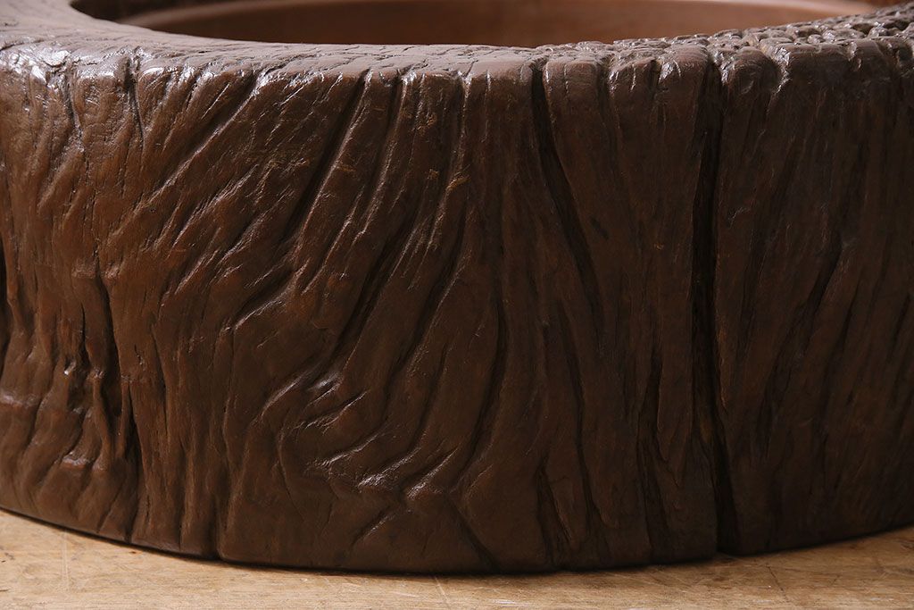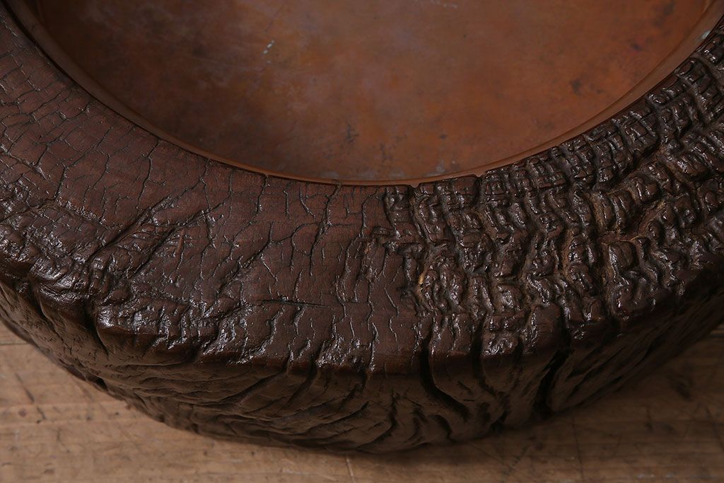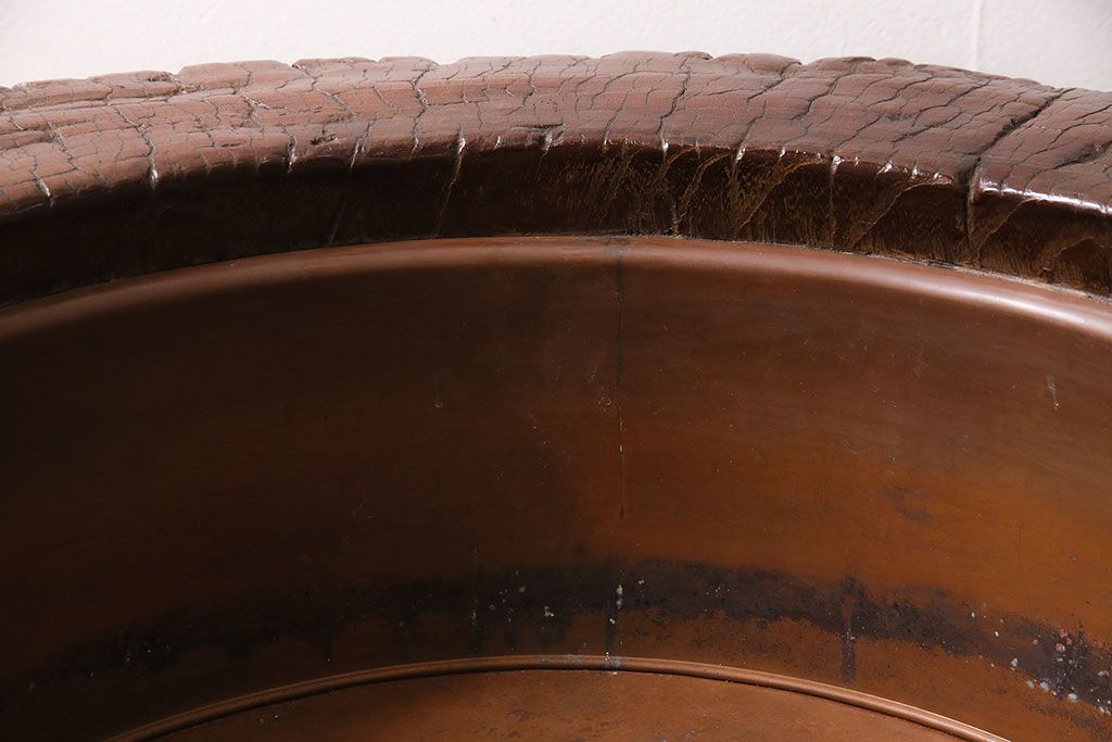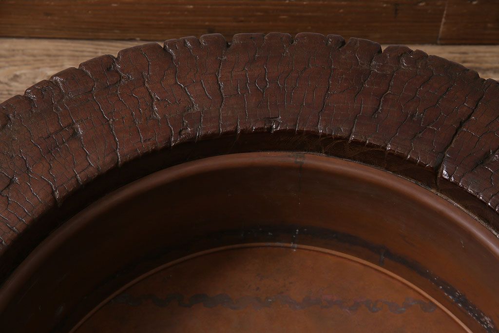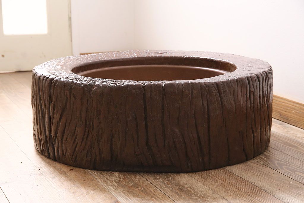 火鉢> 木製火鉢 > アンティーク雑貨 総ケヤキ材 経年による独特の風合いがお楽しみいただけるくり貫き火鉢(くりぬき火鉢、鉢カバー)(R-047270)