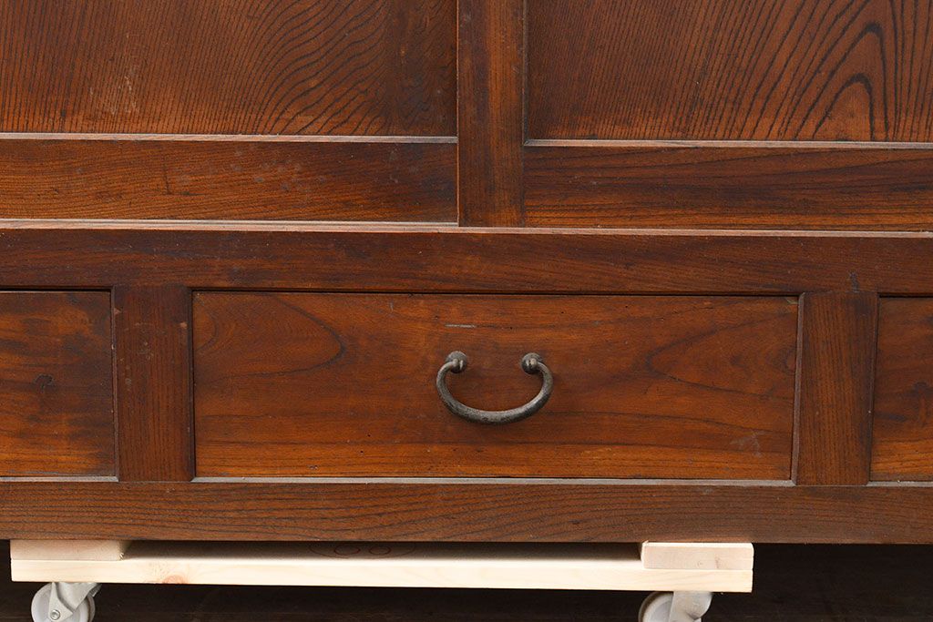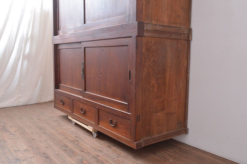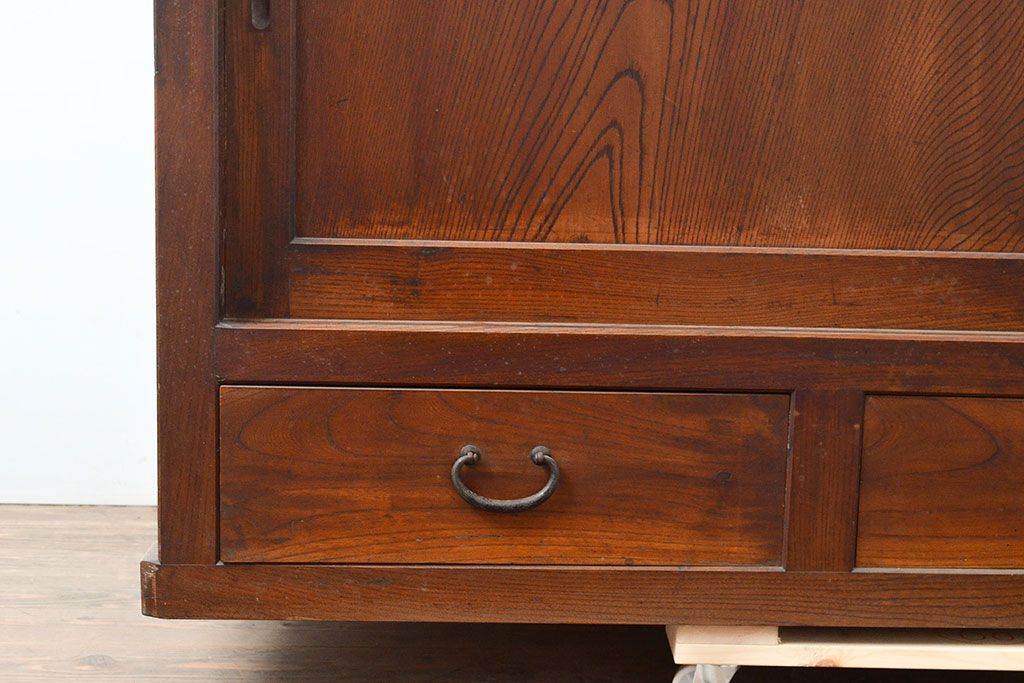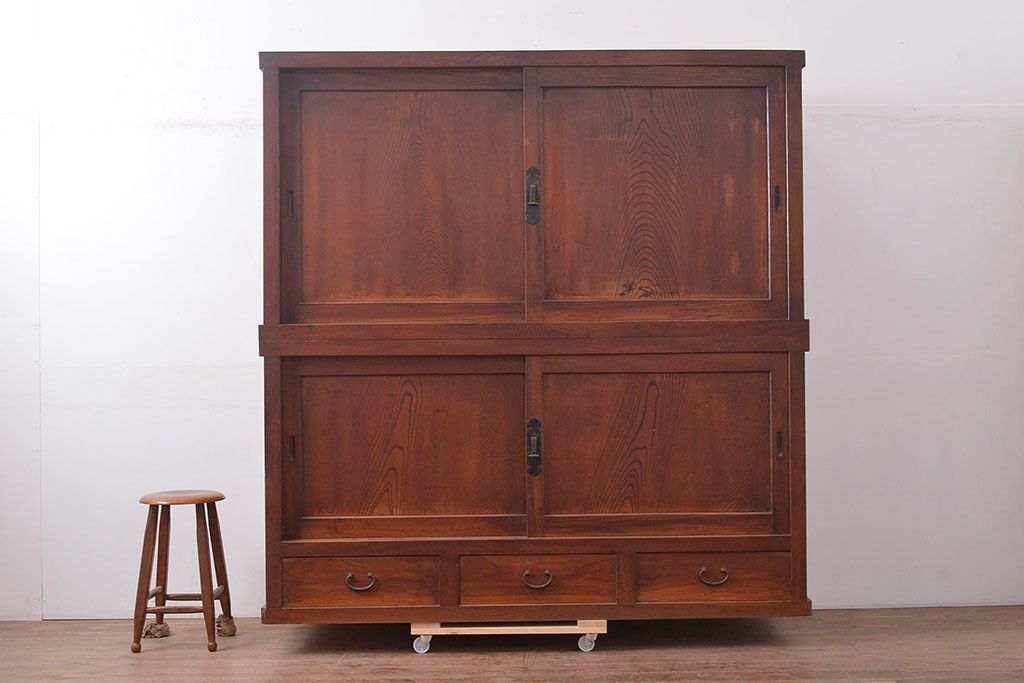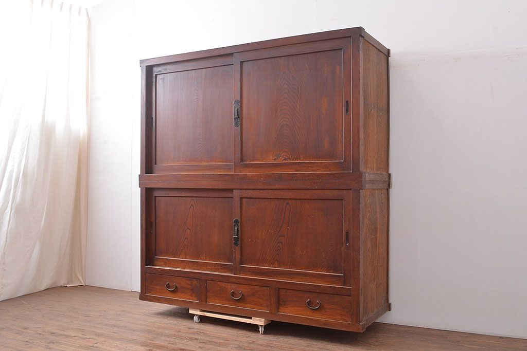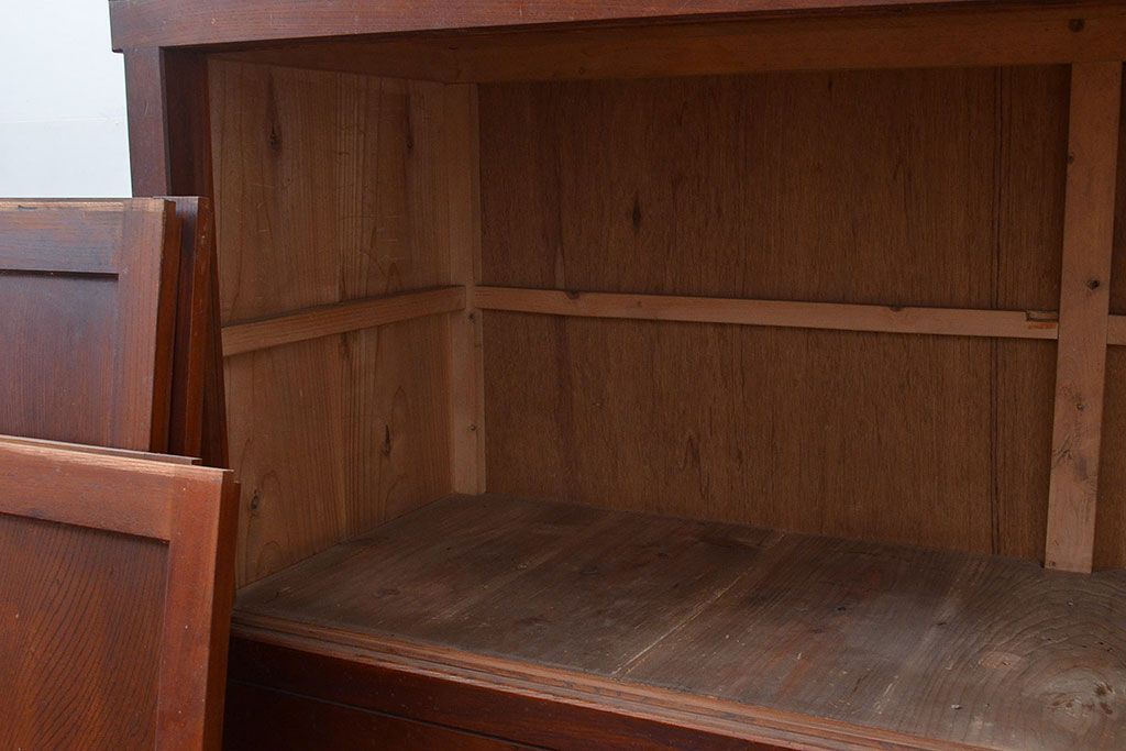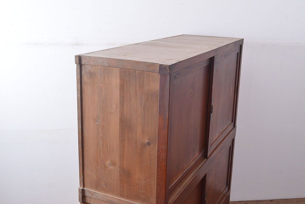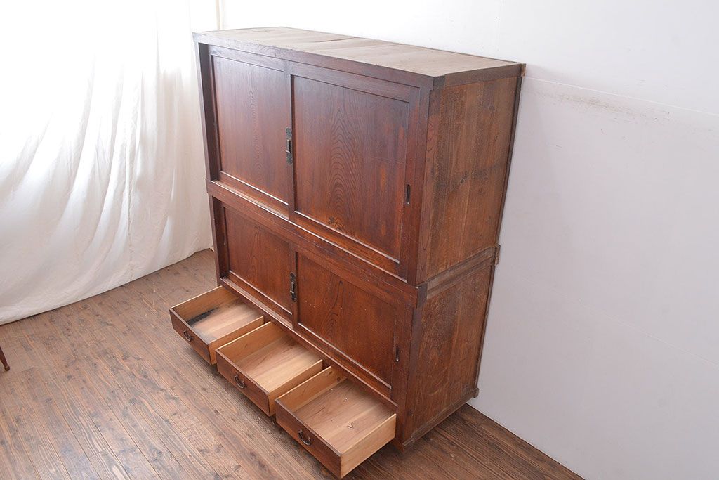和箪笥 > 和製アンティーク 前面ケヤキ材 重厚感のある佇まいが魅力的な重ね収納棚(水屋箪笥、収納箪笥、キャビネット)(R-040762)