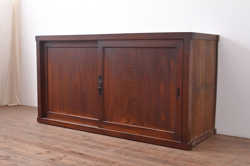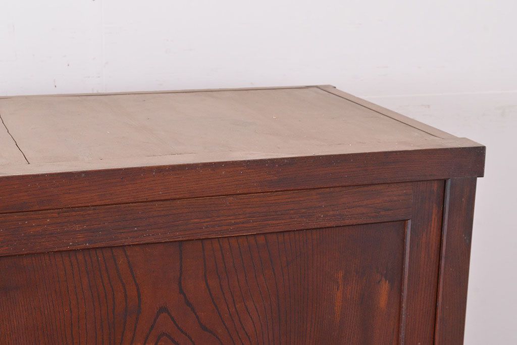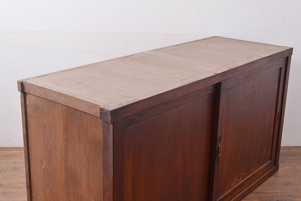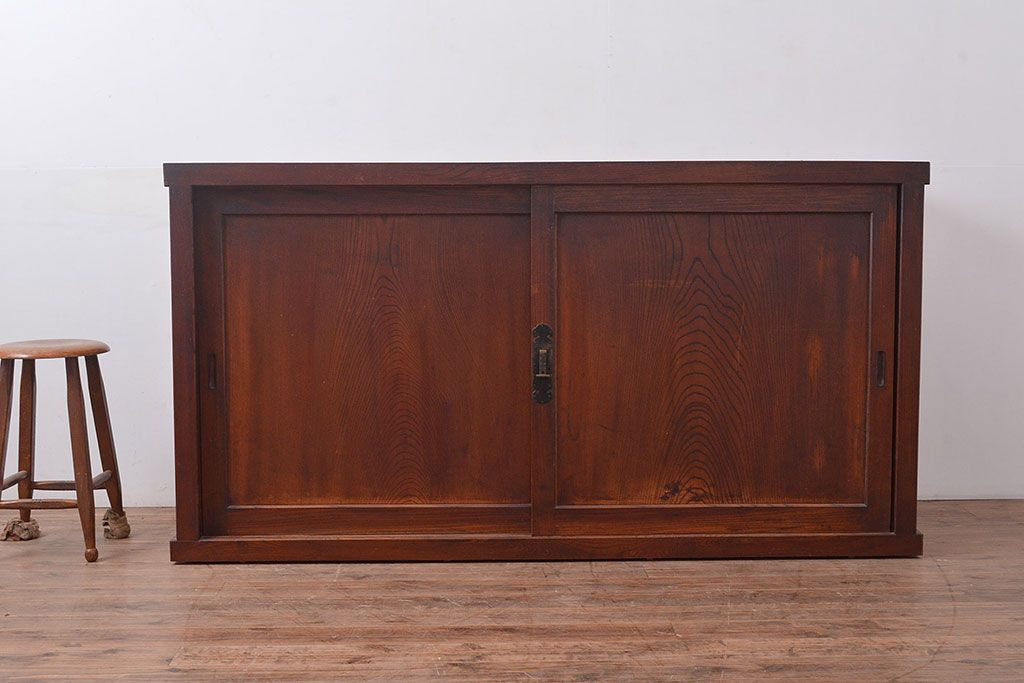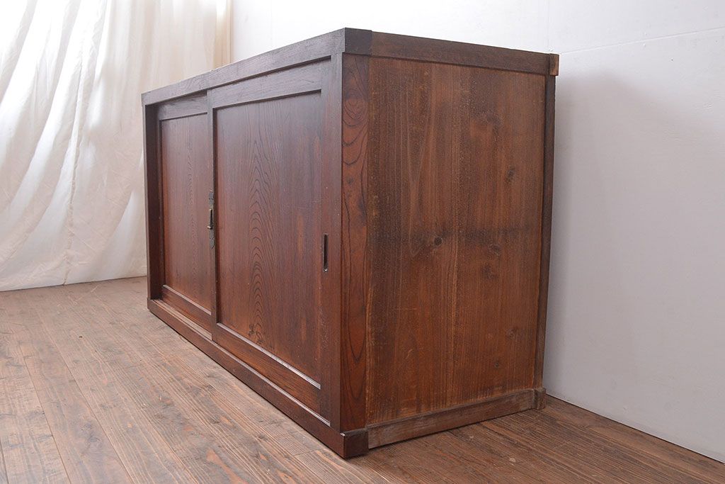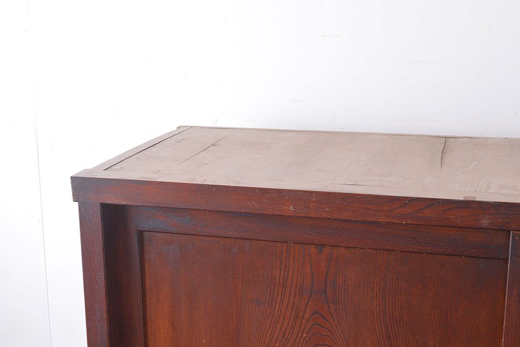 和箪笥 > 和製アンティーク 前面ケヤキ材 重厚感のある佇まいが魅力的なシンプルなつくりの収納棚(水屋箪笥、収納箪笥、サイドボード)(R-040763)